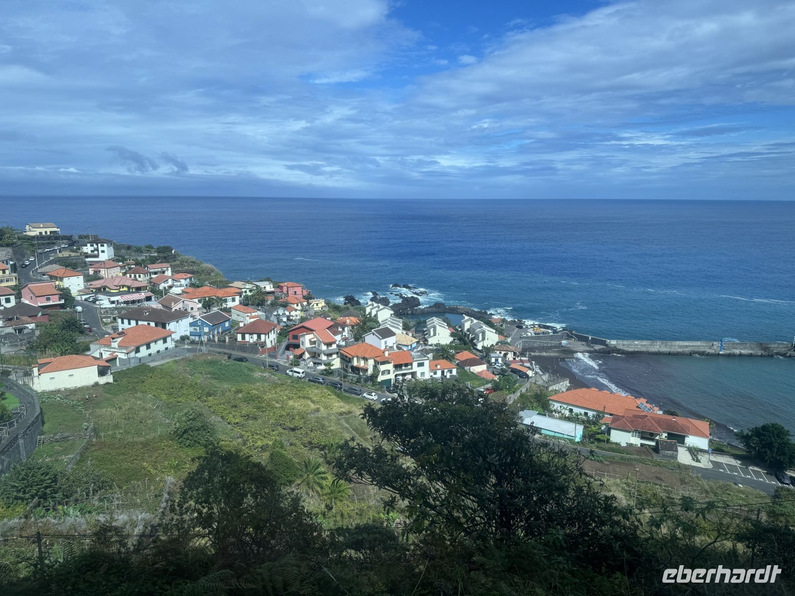 Der Ort hat einen Hafen, einen Hubschrauberlandeplatz, eine moderne Uferpromenade und ist bekannt für die natürlich entstandenen Badebassins im Vulkangestein. Schutz vor der Brandung bietet die vorgelagerte kleine Felsinsel Ilhéu Mole, auf der sich der Leuchtturm Farol do Porto Moniz befindet. In der aus dem 18. Jahrhundert stammenden, direkt an der Küste gelegenen und teilweise wieder aufgebauten kleinen Festung Forte São João Baptista befindet sich das 2005 eingeweihte Aquário da Madeira. Es ist der Meereswelt rund um Madeira gewidmet. Aus dem 17. Jahrhundert stammt die Kirche Igreja Matriz, die durch ihren hochbarocken Baustil beeindruckt. Wir besuchen die im Jahr 1471 erbaute Kirche Santa Maria Madalena do Mar, die zu den ältesten Kirchen Madeiras zählt. Im Ortszentrum nutzen wir die Zeit um in einem der netten Straßenrestaurants einen Mittagssnack einzunehmen.