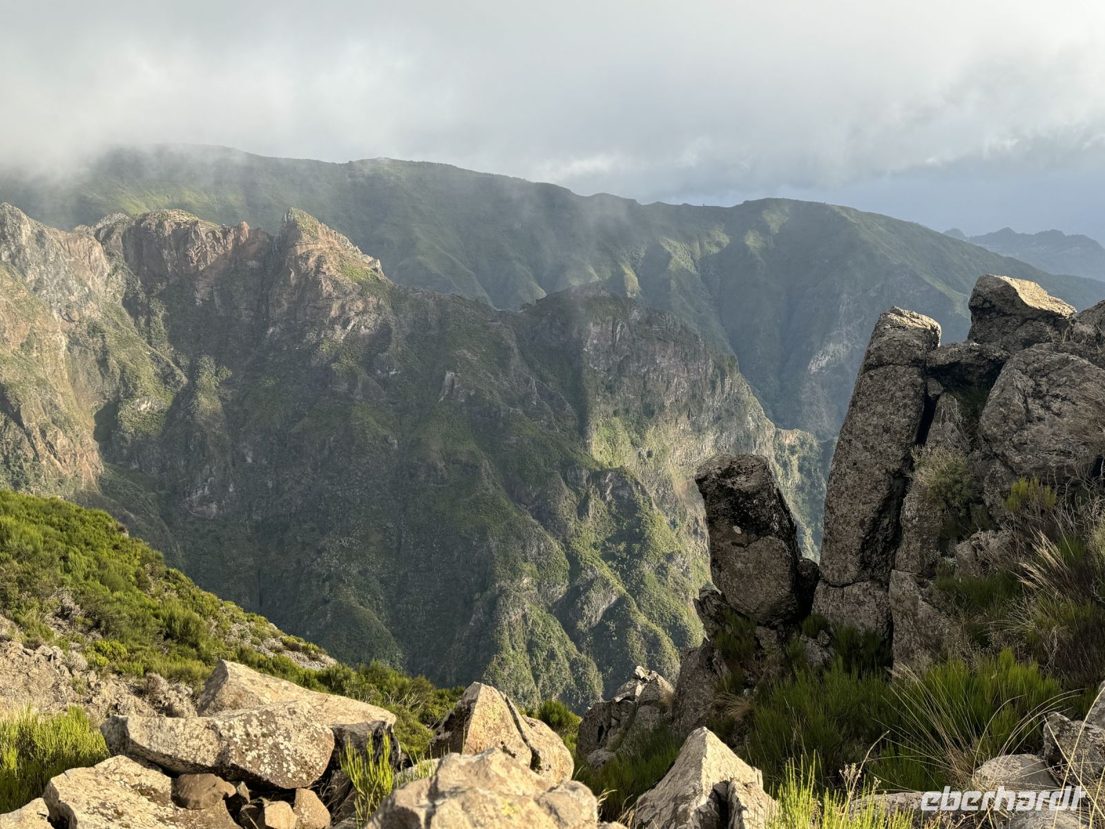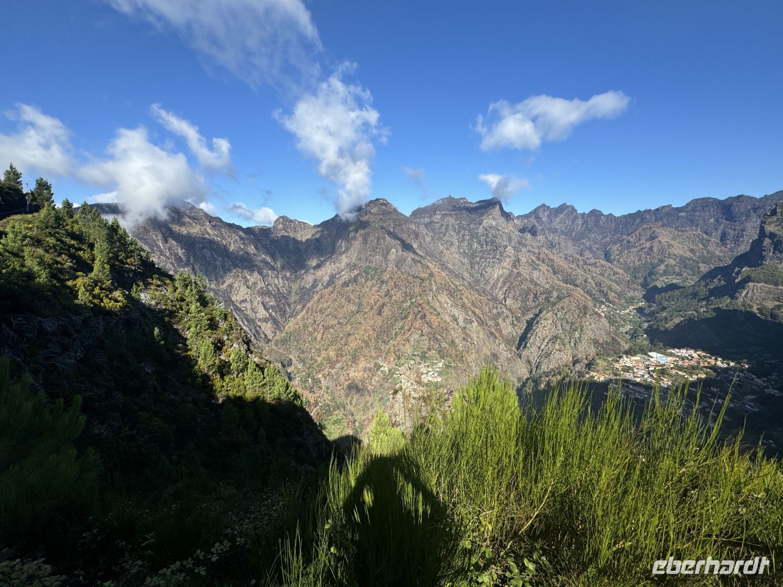 Wir befinden uns im bergigen Landesinneren, im Kreis Câmara de Lobos, und damit in der Mitte der Insel. Der Zugang zu diesem Aussichtspunkt erfolgt über einen Fußweg, der am Gasthaus Estalagem da Eira do Serrado beginnt. Nach dem Aufstieg werden wir mit einer atemberaubenden Landschaft belohnt, in der das prächtige Zentralmassiv Madeiras die Hauptrolle übernimmt.