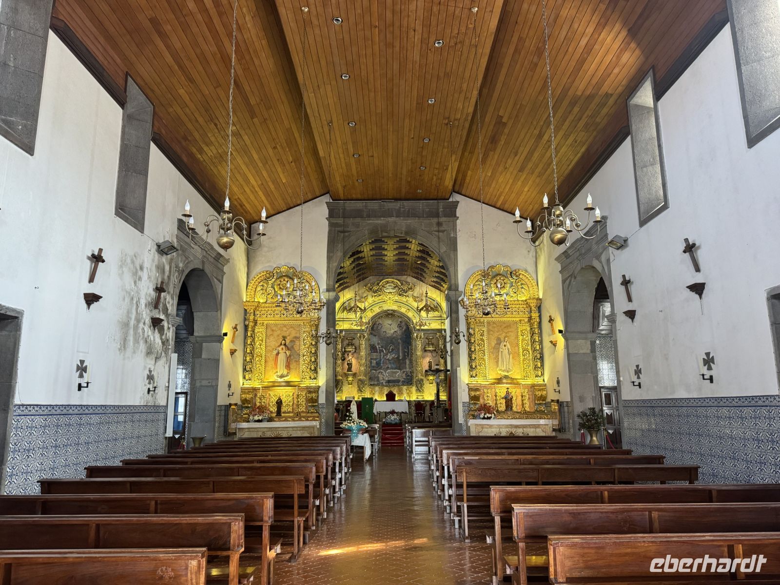 Jetzt besuchen wir das kleine Örtchen Sao Vicente. Nach der Neu-Entdeckung der Insel Madeira durch João Gonçalves Zarco begann 1419 die erstmalige Besiedlung der Insel Madeira durch die Portugiesen. Mitte des 15. Jahrhunderts wurde São Vicente als eigenständige Gemeinde gegründet. 1744 wurde der Ort zur Vila erhoben. Der Kreis São Vicente erfuhr 1835 eine Verkleinerung, im Zuge der Einrichtung der neuen Kreise Santana und Porto Moniz. Nach vorübergehender Wiederauflösung der neuen Kreise 1895 und der Rücknahme der Gebietsabgaben wurden die Kreisgrenzen von 1835 im Jahr 1898 wiederhergestellt und haben bis heute ihre Gültigkeit behalten. Der Bezirk von São Vicente besteht aus den Gemeinden São Vicente, Ponta Delgada und Boaventura. Wir erkunden den Ort zu Fuß und besuchen unter anderem die Pfarrkirche aus dem 18. Jahrhundert. mit barock vergoldeten Schnitzereien und einem Deckengemälde des Hl. Vinzenz.