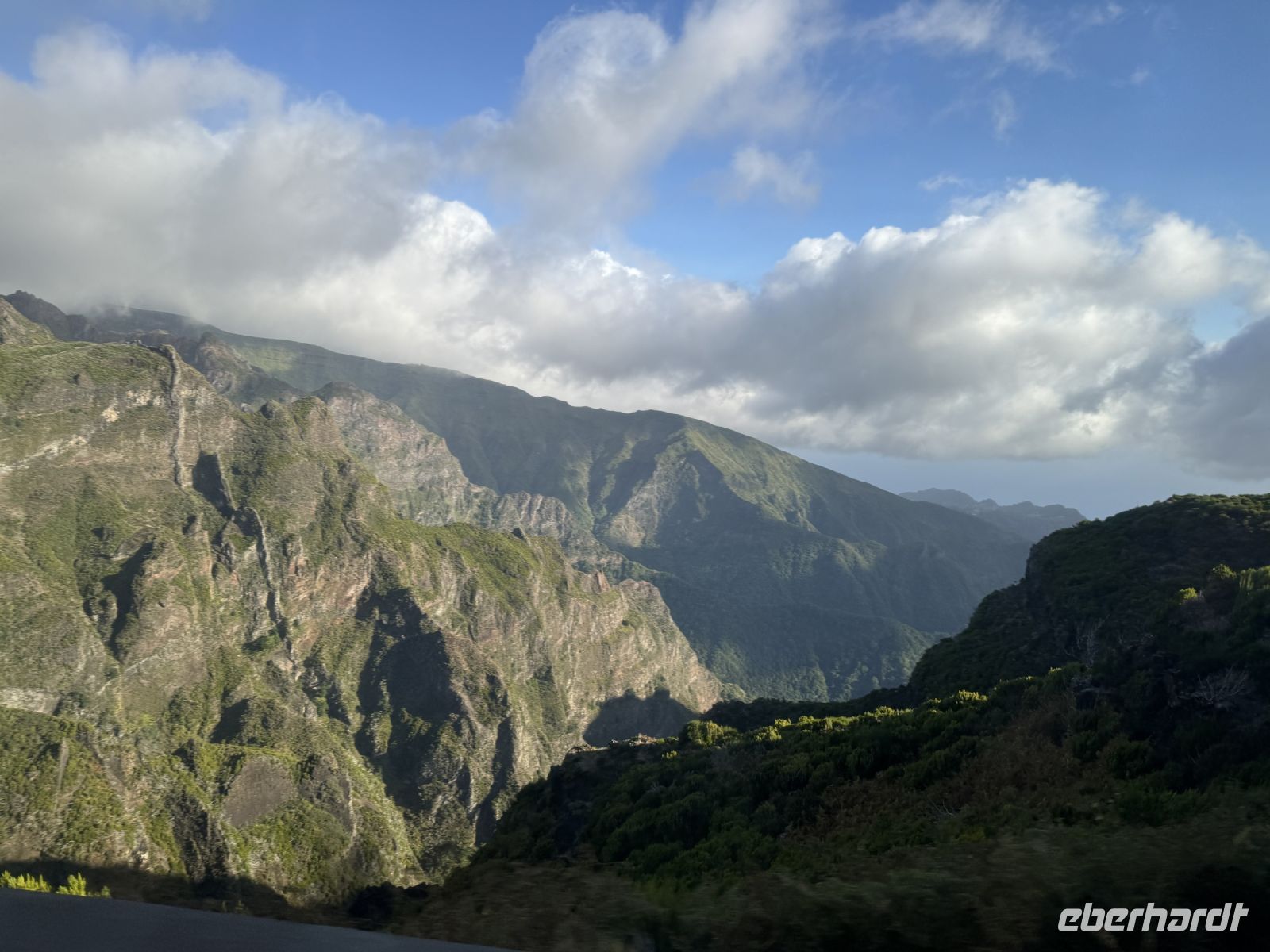Weiter geht es zum Encuameda Pass, dem 1007 Meter hohen Passübergang zwischen Ribeira Brava im Süden und São Vicente im Norden der Insel Madeira. Neben dem Poiso-Pass (Paso do Poiso) war er bis zur Eröffnung des Straßentunnel Túnel da Encumeada einer der wichtigsten Übergänge vom Südteil der Insel in den Nordteil. Die Passhöhe ist eines der meistbesuchtesten Ziele der Insel. Der Pass bietet uns eine hervorragende Aussicht sowohl zur Südküste als auch zur Nordküste. Die Passhöhe ist Ausgangspunkt mehrerer Levada- und Bergwanderungen. Über den Pass führt der Caminho Real da Encumeada (dt. Königsweg), der früher eine der wichtigsten Verbindungen über den zentralen Gebirgskamm war. Auch der Pico Ruivo, die höchste Erhebung der Insel, ist auf einer längeren Wanderung zu erreichen. Entlang der Levado do Norte kann durch einen Tunnel in das Gebiet Folhadal gewandert werden, es ist wegen der endemischen Maiblumenbäume (Clethra arborea) bekannt. Hier werden wieder viele schöne Fotos festgehalten.