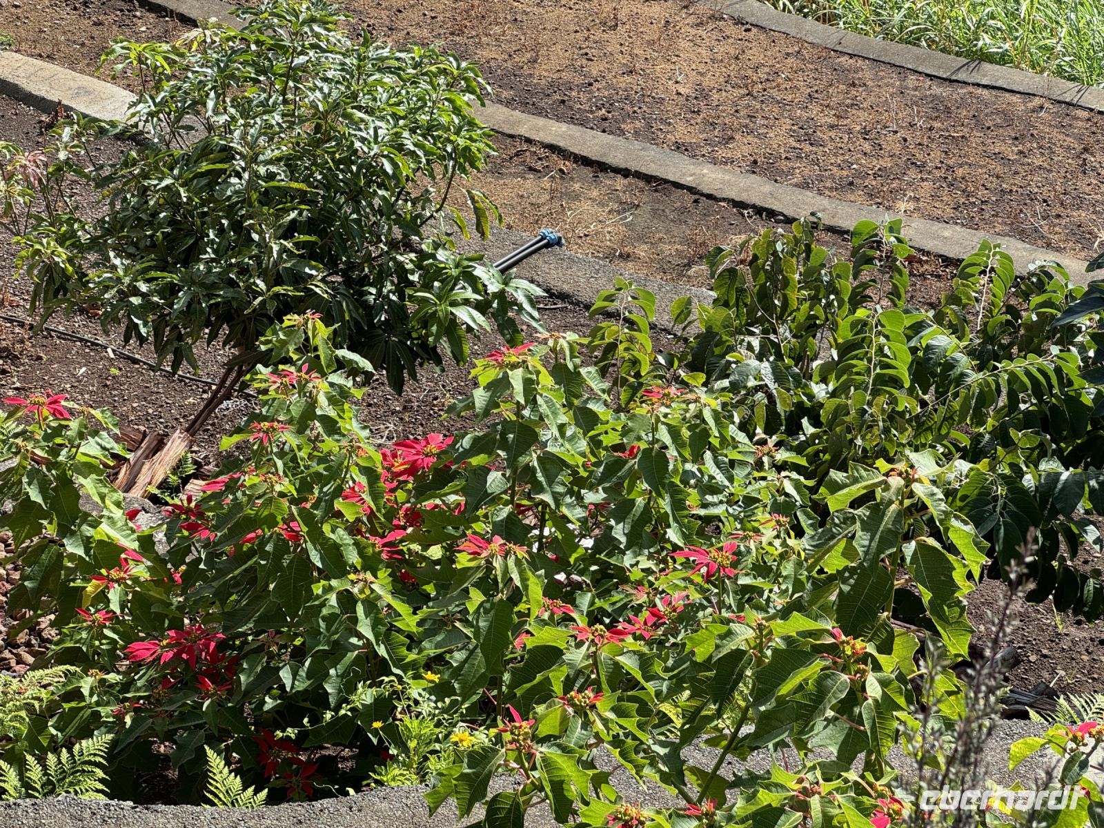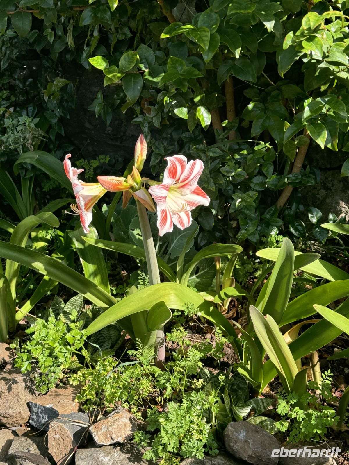 In die weitläufige Parklandschaft sind symmetrisch angelegte Gärten mit opulent angelegten Rabatten eingestreut, auf denen das ganze Jahr über Ziergewächse blühen, darunter viele aus der Kapflora bekannte Arten wie Mittagsblumen, Gazanien, Fackellilien und Schmucklilien. Vor einer viktorianischen Villa, dem Wohnsitz der Eigentümerfamilie, gibt es eine Sammlung von Zuckerbüschen mit Königs-Protea und Nadelkissen-Protea. Vor dem Teehaus mit der Einkehrmöglichkeit in einem kleinen Restaurant schaut man auf zwei kleine Seerosenbecken, des Weiteren gibt es einen Rosengarten. Wir genießen die wunderschöne Atmosphäre bei einem Espresso im Restaurant des Gartens.