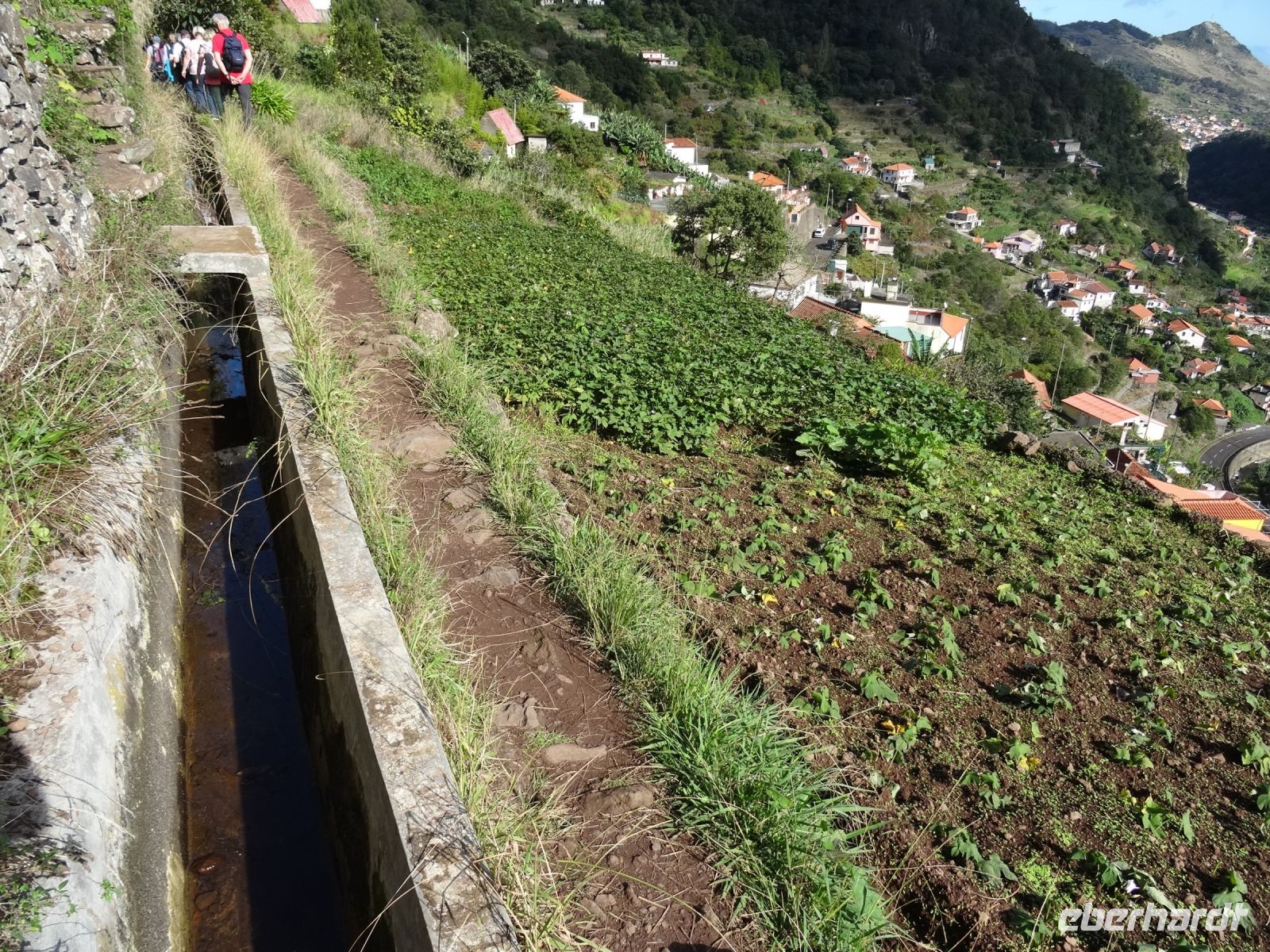 Levadas sind künstlich angelegte und für die Insel charakteristische Bewässerungskanäle. Die ersten wurden im 15.Jahrhundert gebaut. Sie dienen dazu, die niedergelegenen Terrassenfelder mit Wasser zu versorgen. Entlang dieser Levadas schlängeln sich kleine Wanderwege, welche zu einem Spaziergang einladen. Für uns natürlich ein "Muss"...Der Weg war zwar schmal, doch relativ eben. Entlang des Pfades sahen wir allerlei interessante Pflanzen.