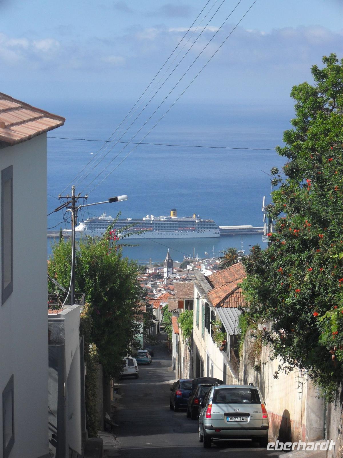 Heute stand das pulsierende Inselzentrum Funchal auf unserem Programm. Die Inselhauptstadt und erste Kolonie Madeiras beeindruckt noch heute mit seinen weißen Häusern die sich an Hängen des Tals in die Höhe winden. Wir begannen unseren Stadtrundgang auf der „Avenida Arriaga“, die mit ihren Jucaranda-Bäumen die Handelszone im Westen der Stadt mit der Innenstadt verbindet. Vorbei an den