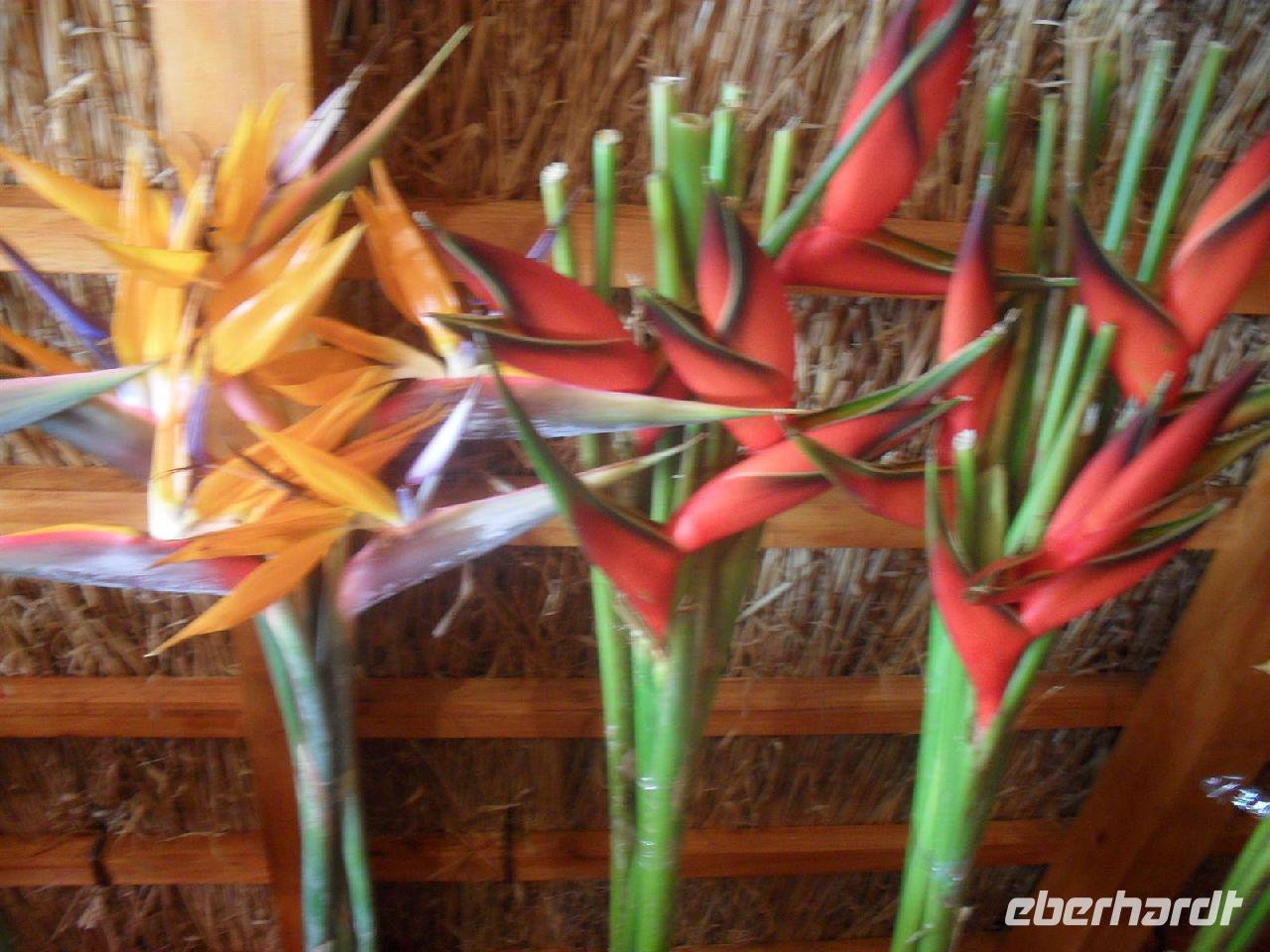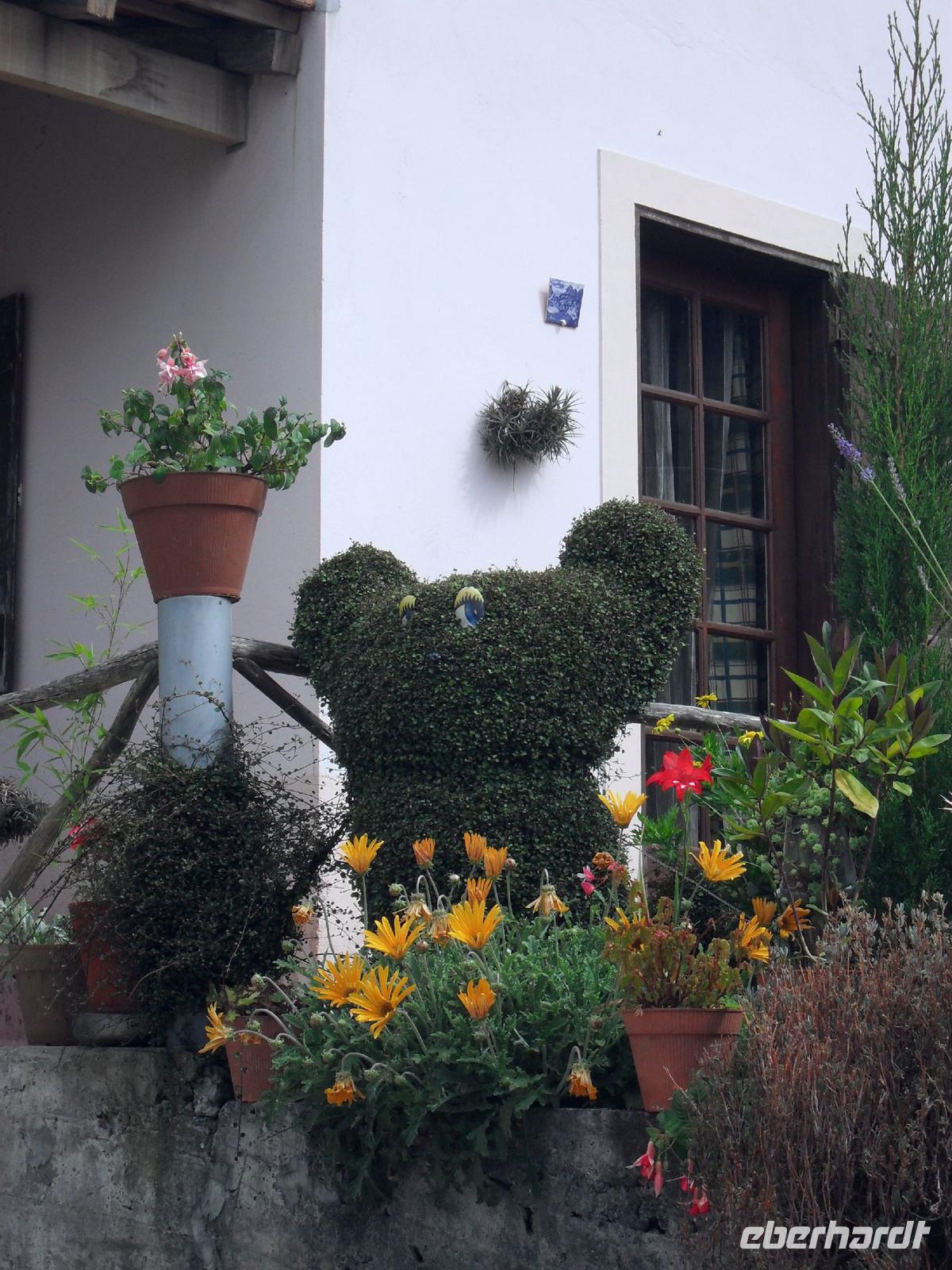 Städtchen ist bekannt für seine urigen Strohhäuschen in einer fruchtbaren Landschaft. Nach einem Mittagessen mit einer weiteren Köstlichkeit von Madeira, dem Thunfischfilet, machte meine Reisgruppe Bekanntschaft mit dem Hauspapagei. Er begrüßte uns bei Eintritt in das Souvenirgeschäft und verstand sogar einen kleinen Spaß und lachte gemeinsam mit uns. Die Besichtigung der Strohhäuschen stand jedoch auch noch an und so mussten wir uns verabschieden. Der kleine Spaziergang nach dem Essen zum Ortszentrum war noch durch Girlanden von Kirschfest am vergangen Wochenende gesäumt. Auch die Häuschen mit ihren Strohdächern luden ein, einmal ins Innere zu schauen. Es war schon sehr beeindruckend, wie die Menschen in dieser Region einmal auf engsten Raum lebten. Heute jedoch pflegte eine Blumenverkäuferin das kleine Haus und wir konnten uns noch ein paar letzte Samen oder Zwiebel der madeirensischen Flora mitnehmen.
