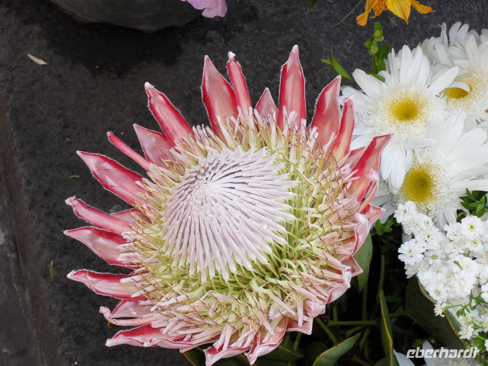 Bei unserem Spaziergang durch die Innenstadt kamen wir vorbei an einzelnen Blumenverkäuferinnen, die die Einkaufsstraße mit ihrer tollen Blütenbracht verschönerten. An jeder Ecke konnte man die wunderschönen Blumen der Insel kaufen und sich an der Blütenpracht erfreuen. Kaum angekommen an der Markthalle, gab es auch hier viel Neues zu sehen. Die verschieden Früchte frisch von den Feldern standen uns zum kosten bereit und auch die Fischhalle mit den fangfrischen Fischen…..Seit 1940 steht diese Markthalle täglich den Besuchern und Bewohnern zum Einkaufen offen. Mit seinem arkadengesäumten Innenhof mit Obst- und Blumenhändeln ist er mit keinem typischen Markt vergleichbar.