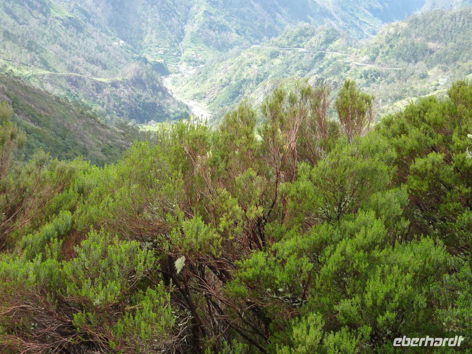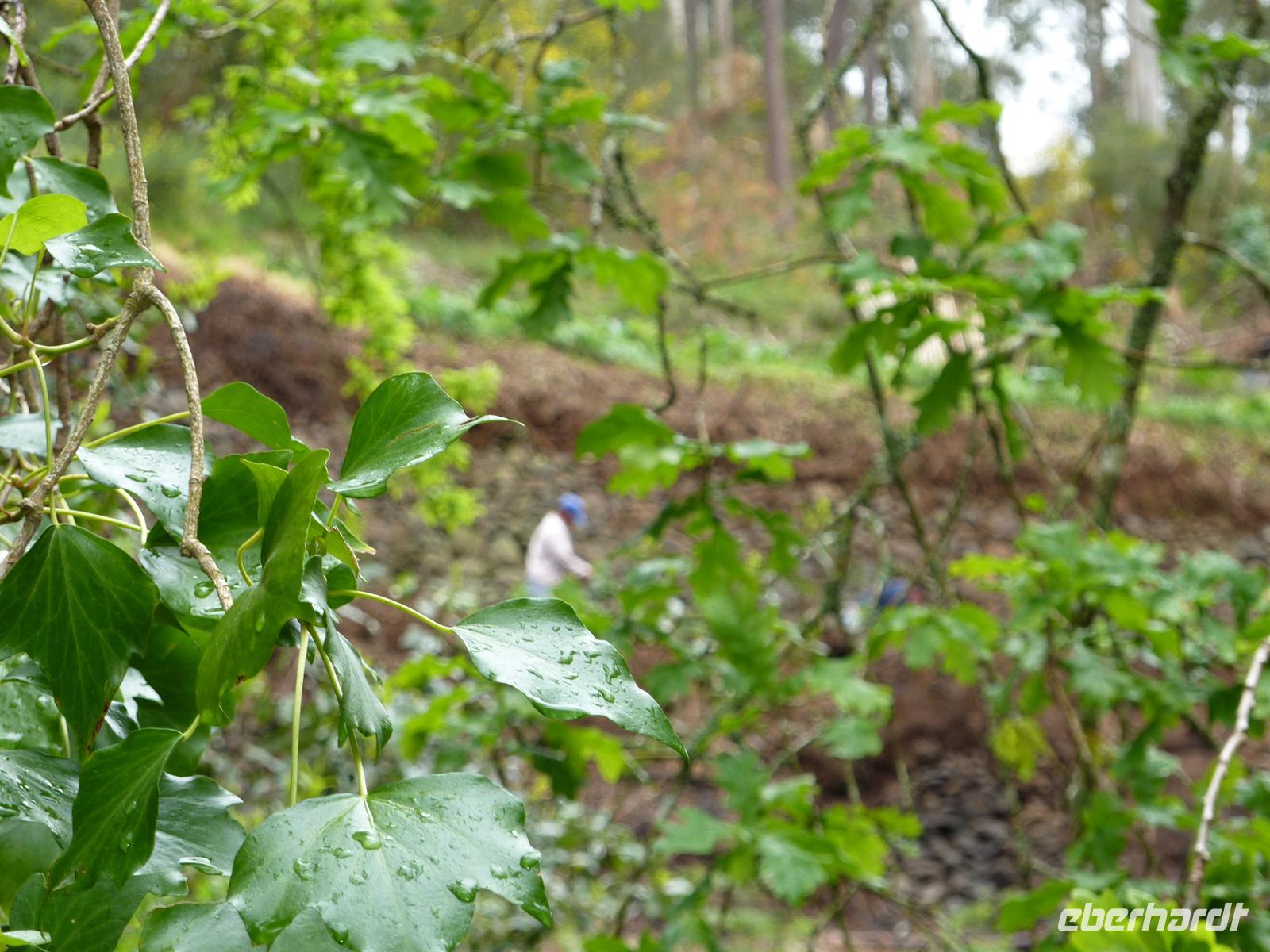 Und schon war es soweit. Der letzte Tag auf der Blumeninsel hat begonnen. Für unsere anstehende Wanderung haben wir uns bei einem guten Frühstück gestärkt. Gegen 09:00 Uhr wurden wir von Helena und unserer Wanderbegleitung Vernanda in Empfang genommen. Wir fuhren Richtung Camacha, wo unsere Wanderung durch das Paradiestal begann. Bei wolkigem Wetter spazierten wir durch den Urwald und sahen ab und zu Einheimische und Bauern. Von Helena haben wir wieder wissenswertes zu den Pflanzen und Bäumen am Wegesrand erfahren.