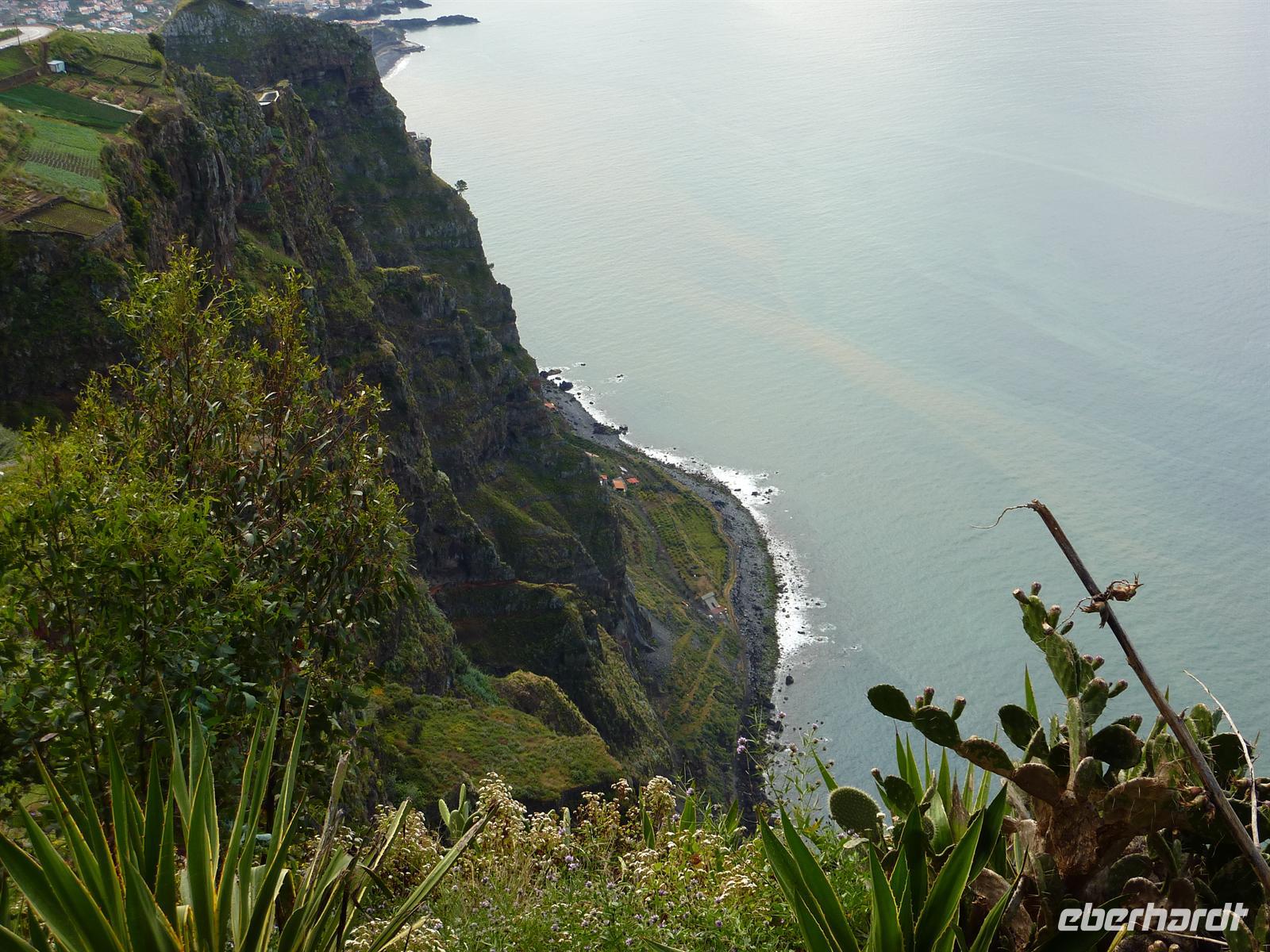 Mit unserem „Gummibus“ fahren wir zur höchsten Steilklippe Europas. Von der Cabo Girao haben wir bei strahlendem Sonnenschein einen schönen Blick hinab auf die Küste, welche sich in 580 m Tiefe befindet. Wir genießen die Sonnenstrahlen und fahren weiter nach Ribeira Brava. Das Zentrum am „Wilden Fluss“ lädt zum verweilen und bummeln ein. Auf dem Marktplatz besuchten wir die Kirche , welche durch Ihre Helldunkelkontraste beeindruckt. Es warten noch weitere Höhepunkte auf uns. Daher machten wir uns auf den Weg über den Encumeada Pass nach Sao Vicente.