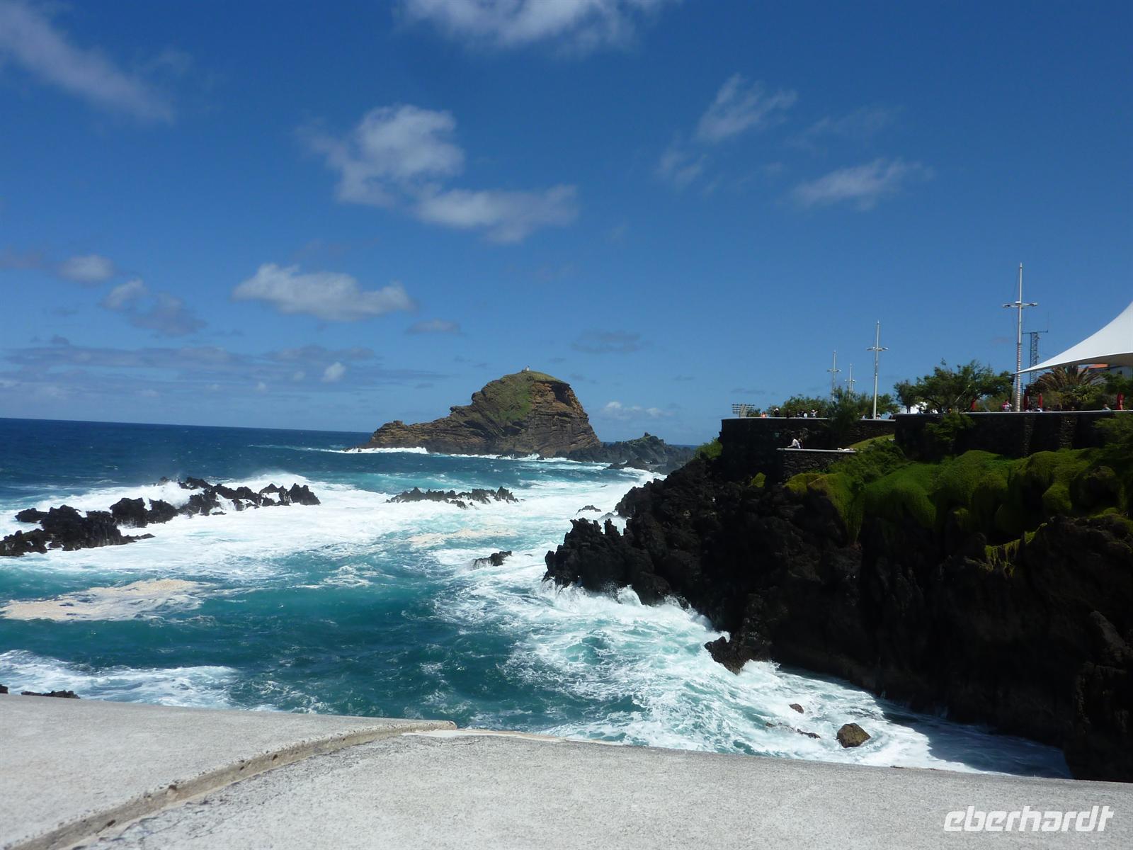 Beeindruckt von den Vegetationsschichten bestaunten wir die Brandung des Atlantiks und den Wasserfall, den . Bei sonnigem und mildem Wetter fuhren wir durch zahlreiche Tunnel nach Porto Moniz.