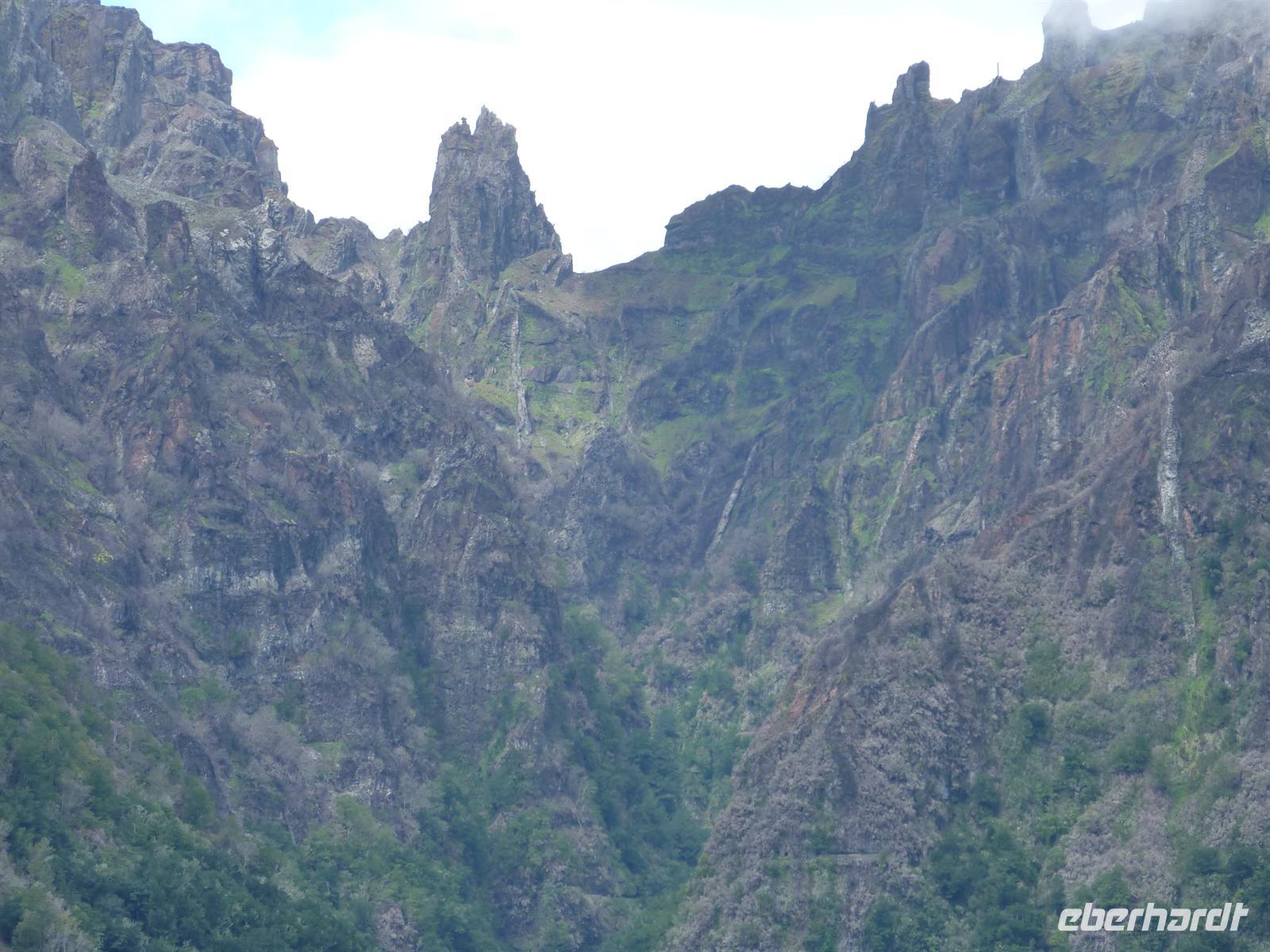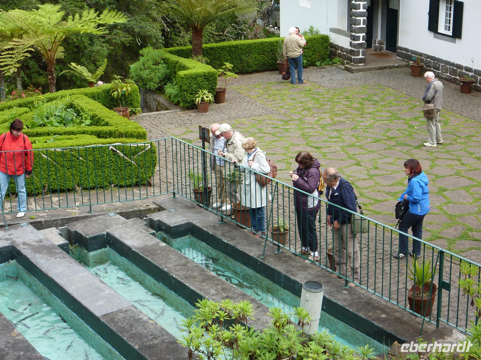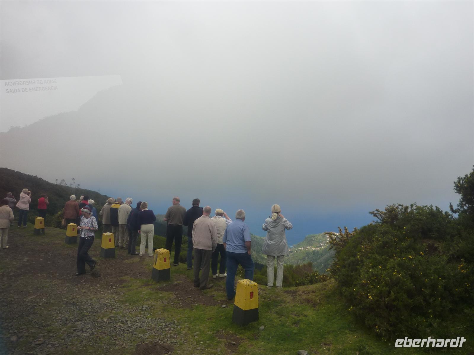 Hier erfuhren wir viel über die Herstellung der Korbwaren und schauten dem Korbflechter über die Schulter. Im Anschluss kauften wir einige Souvenirs für zu Hause. Weiter ging es zu der 1818 Meter hohen Erhebung, der Pico do Areeiro. Hier hat uns Petrus leider im Stich gelassen. Leider zeigte sich der Gipfel umhüllt von Nebel und somit fuhren wir weiter zu dem wunderschönen Naturschutzgebiet Ribeiro Frio. Nach einem kleinen Spaziergang um die Zuchtbecken der Forellen stärkten wir uns bei einer Tasse Kaffee für unseren Spaziergang zum Balcoes - „der Balkon“.