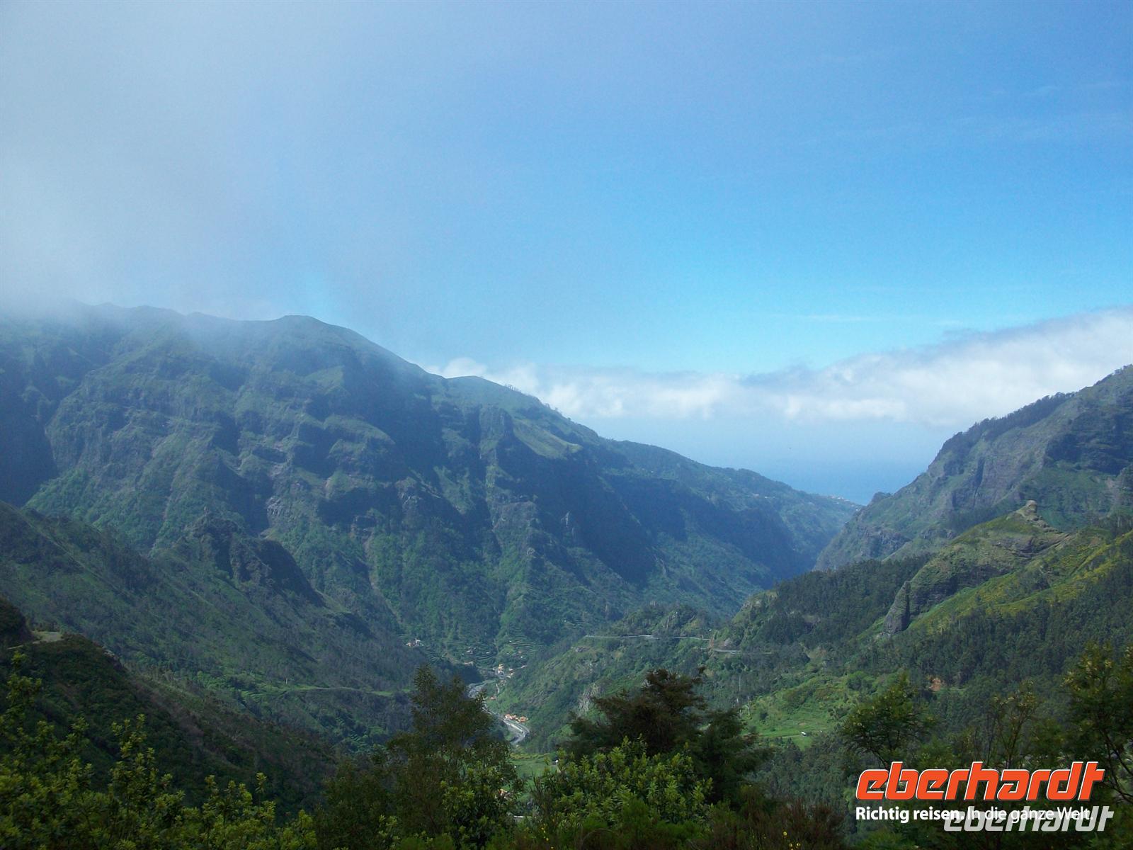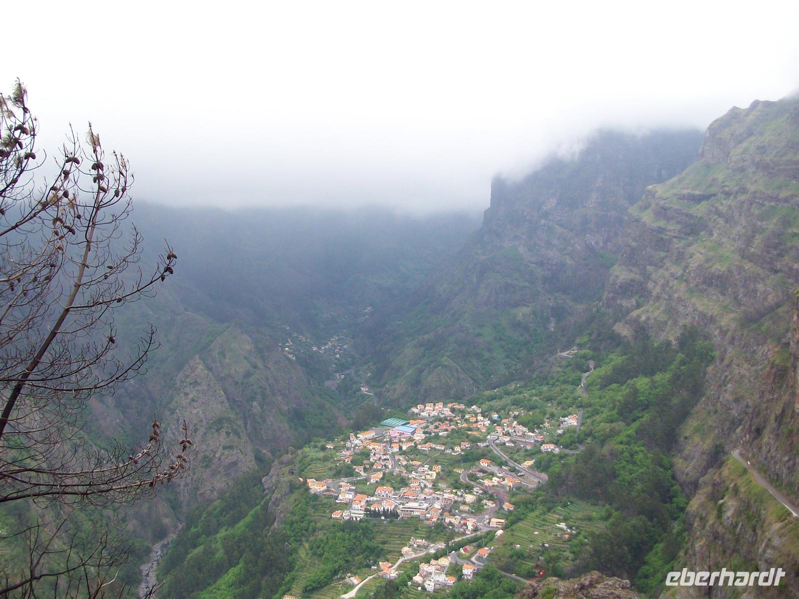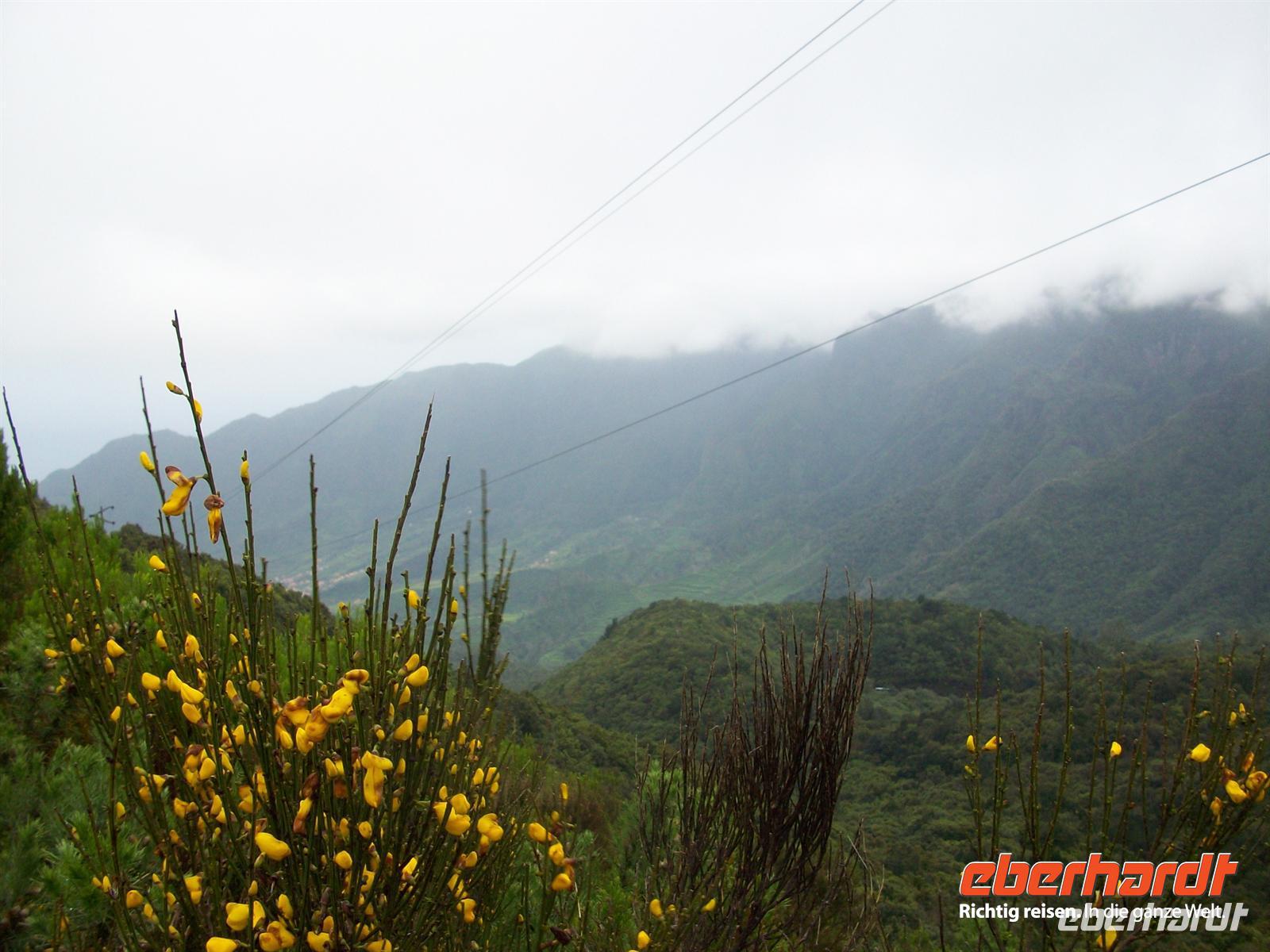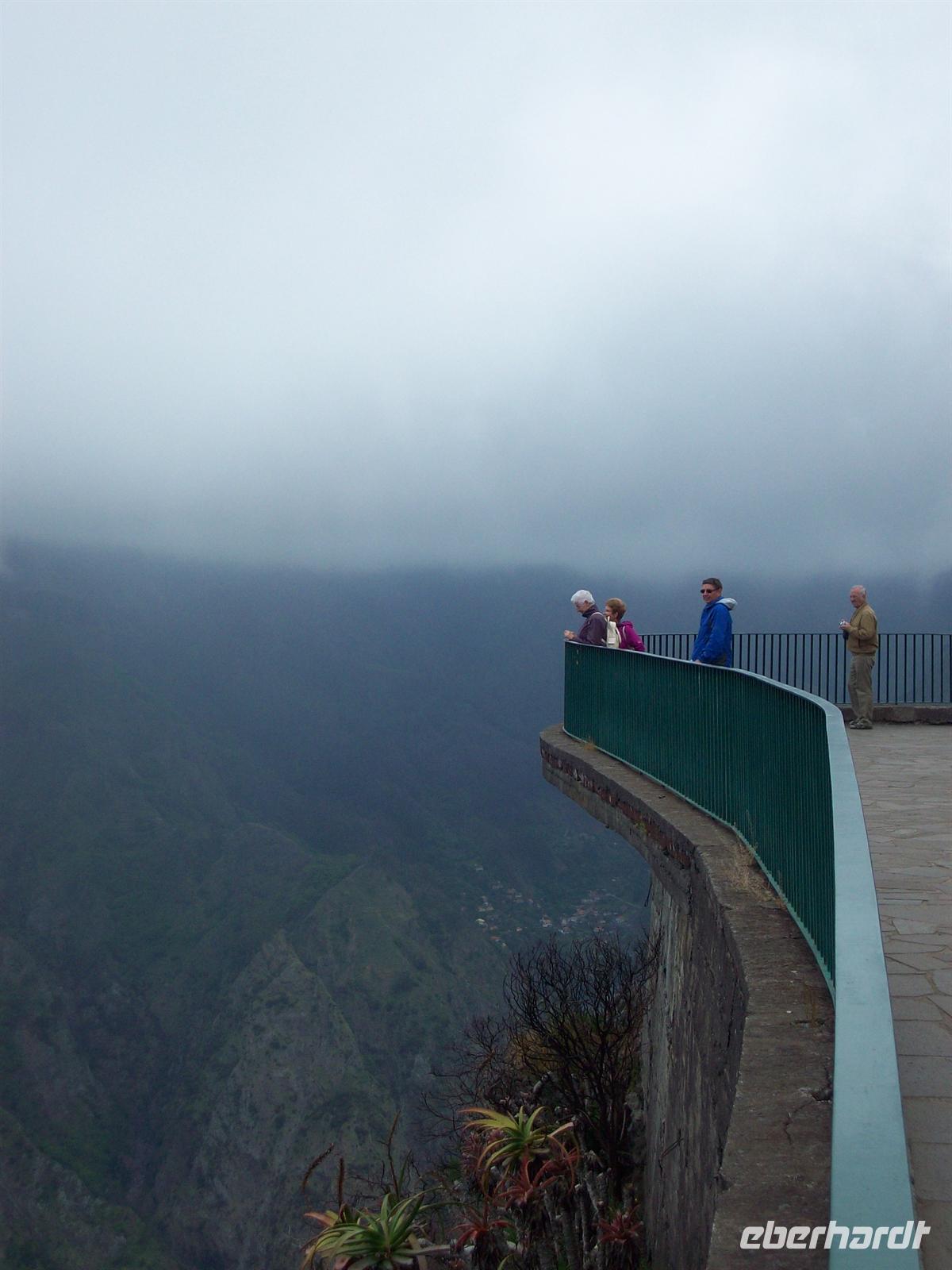 Der erste Ausflug beginnt und wir sollten die ganze Woche recht behalten, denn wir hatten Sonnenschein. Unser heutiges Ziel war der Nordwesten der Insel. Den ersten Stopp machten wir am Cabo Girao, eine 580 m herabfallende Klippe. Mit einem wunderbaren Blick auf die am Meer liegenden Terrassenfelder und natürlich auf die Hauptstadt Madeiras, Funchal. Weiter ging unsere Tour nach Ribeira Brava mit Ihrer wundervollen in grau und weiß erscheinenden Kirche Igreja de São Bento. Und dann ging es los, hoch in die Berge auf den Encumeada Pass auf 1004 Meter. Hier oben erhielten wir einen unglaublichen Blick sowohl in den Süden, als auch in den Norden der Insel. Leider befand sich der Pass in einer dicken Wolke so dass wir nicht die schönen Sonnenstrahlen genießen konnten. Jedoch nur ca. 500 Meter weiter machen wir einen erneuten Stopp bei strahlendem Sonnenschein und genossen den Blick auf den Encumeada Pass in eine