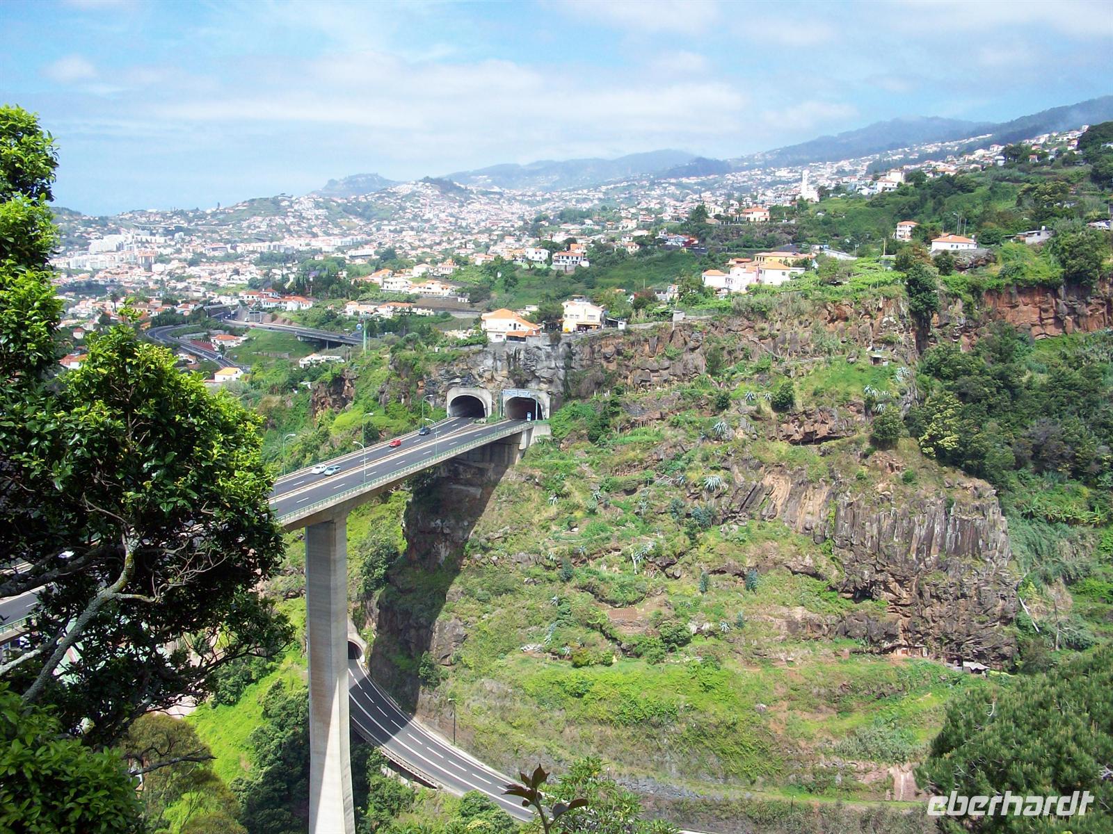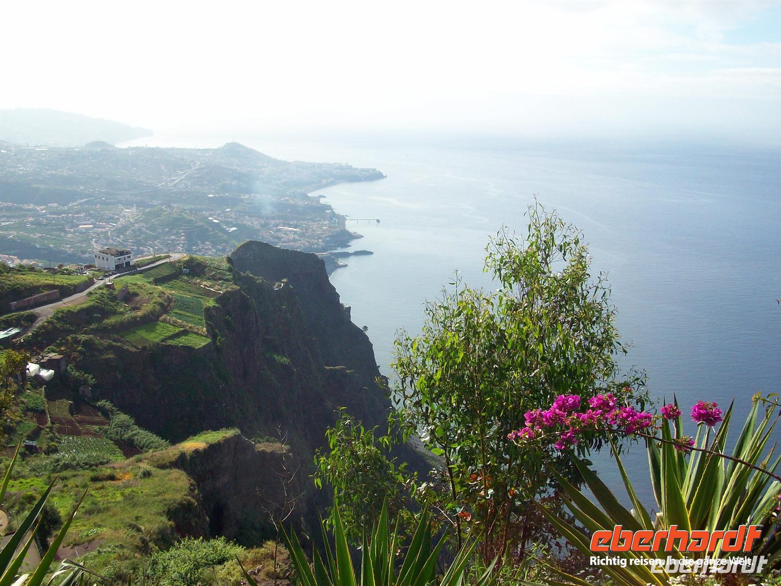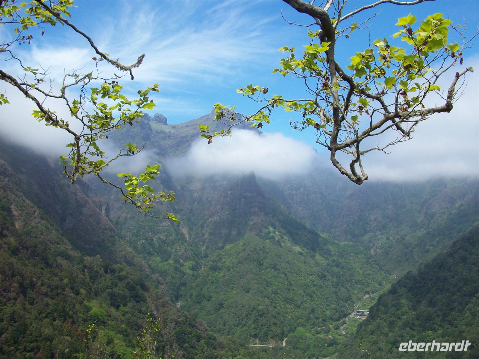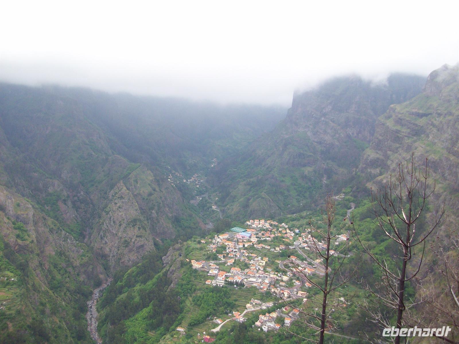 Der erste Ausflug beginnt und wir sollten die ganze Woche recht behalten, denn wir hatten Sonnenschein. Unser heutiges Ziel war der Nordwesten der Insel. Den ersten Stopp machten wir am Cabo Girao, eine 580 m herabfallende Klippe. Mit einem wunderbaren Blick auf die am Meer liegenden Terrassenfelder und natürlich auf die Hauptstadt Madeiras, Funchal. Weiter ging unsere Tour nach Ribeira Brava mit Ihrer wundervollen in grau und weiß erscheinenden Kirche Igreja de São Bento. Und dann ging es los, hoch in die Berge auf den Encumeada Pass auf 1004 Meter. Hier oben erhielten wir einen unglaublichen Blick sowohl in den Süden, als auch in den Norden der Insel. Leider befand sich der Pass in einer dicken Wolke so dass wir nicht die schönen Sonnenstrahlen genießen konnten. Jedoch nur ca. 500 Meter weiter machen wir einen erneuten Stopp bei strahlendem Sonnenschein und genossen den Blick auf den Encumeada Pass in eine