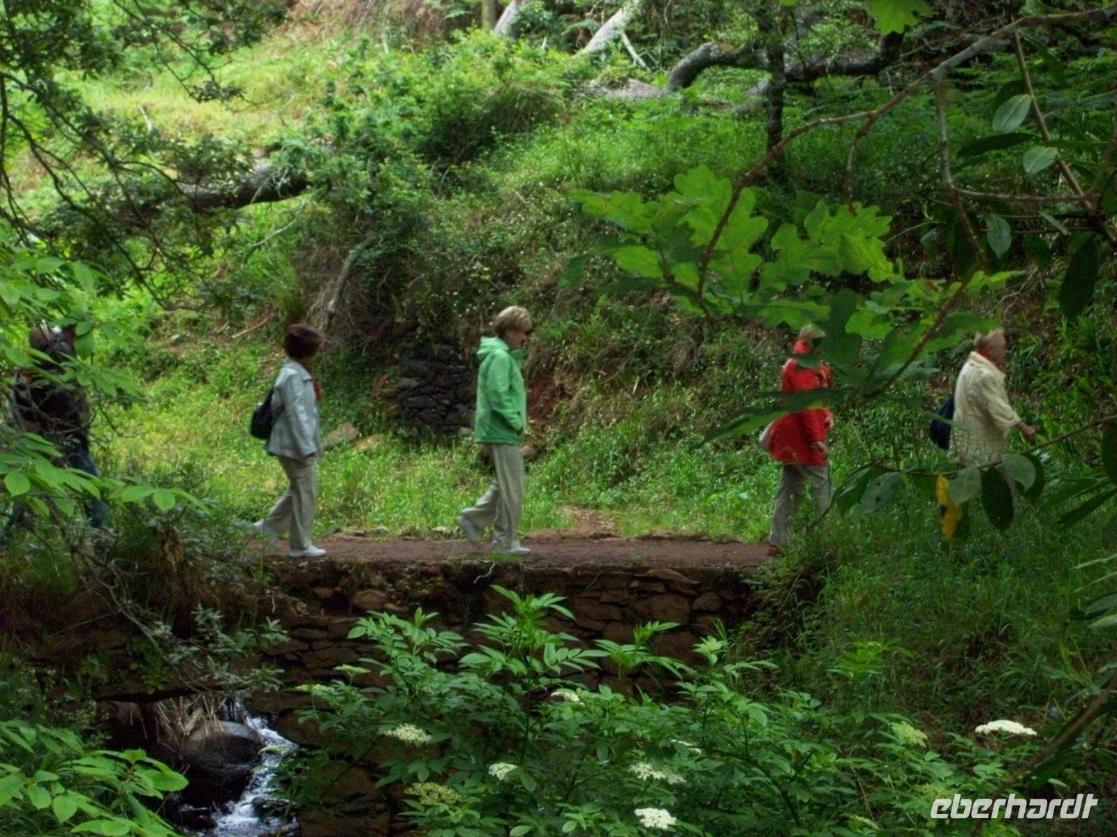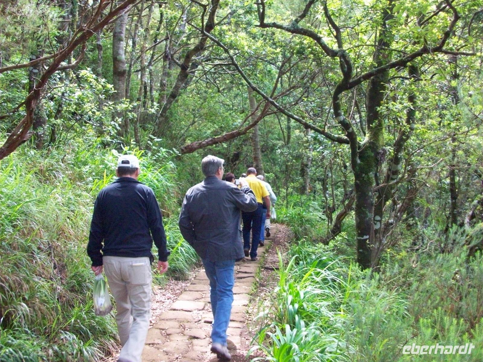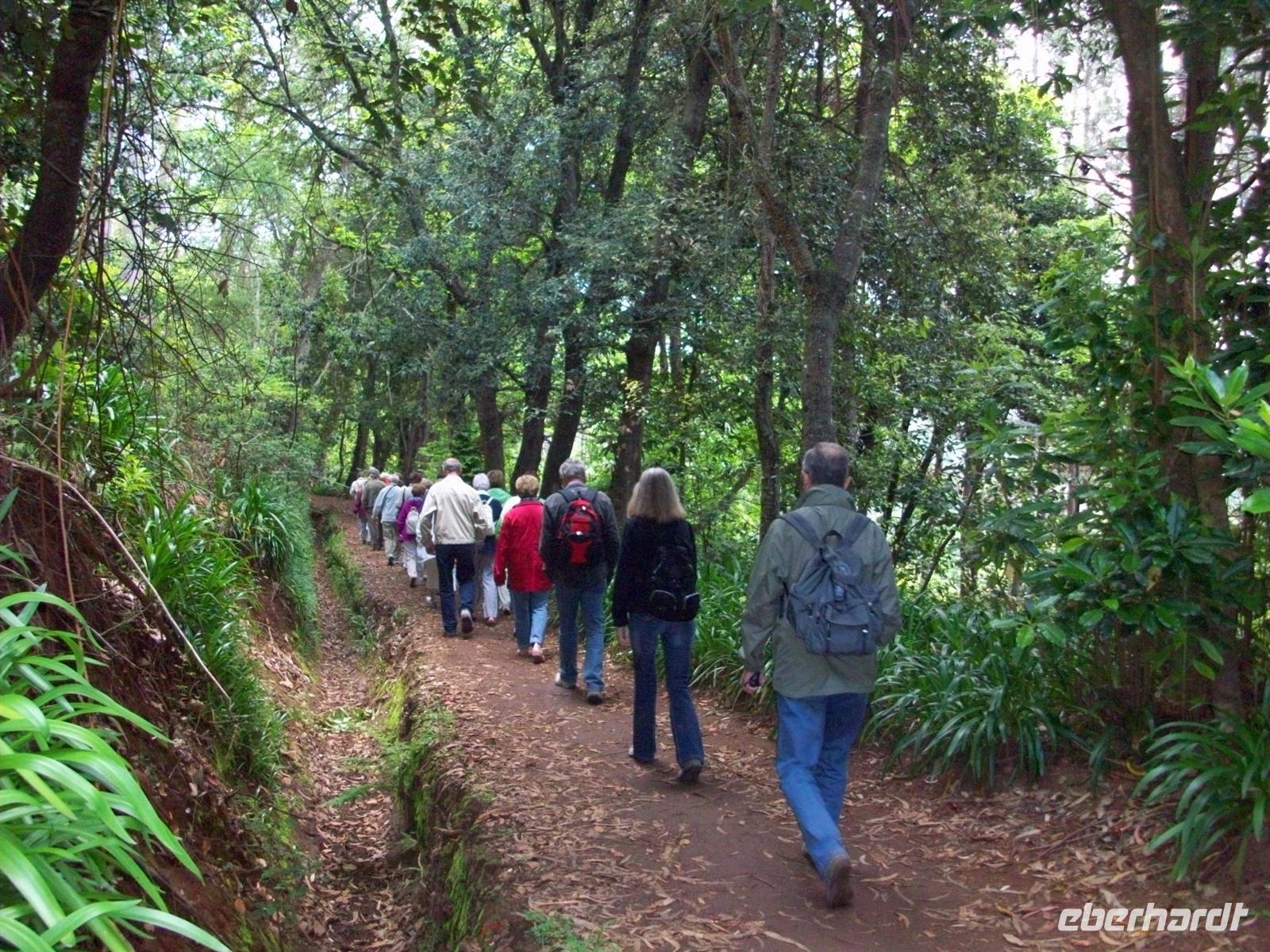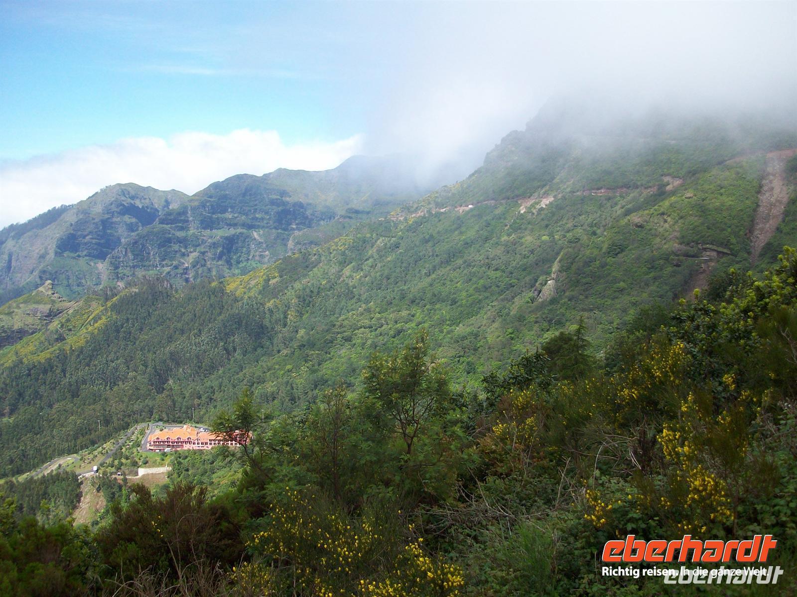 guten Blick ins Tal jedoch auf die unglaubliche Wolkendecke, die vor uns lag bzw. unter uns. Als nächstes sollten wir die Forellenzucht auf Madeira kennenlernen. Hierzu fuhren wir nach Ribeiro Frio inmitten einer Gebirgslandschaft und der letzten zusammenhängenden Laurazeenwälder der Insel. Weiter ging es diesmal nicht mit dem Bus sondern zu Fuß. Unser Ziel war der Aussichtspunkt Balcoes. Entlang der Levada do Furado gelangten wir zu einem wunderschönen Plätzchen der Insel. Der Blick auf die höchsten Gipfel der Insel war beeindruckend! Pünktlich zur Mittagszeit kamen wir in Santana an. Bei einem