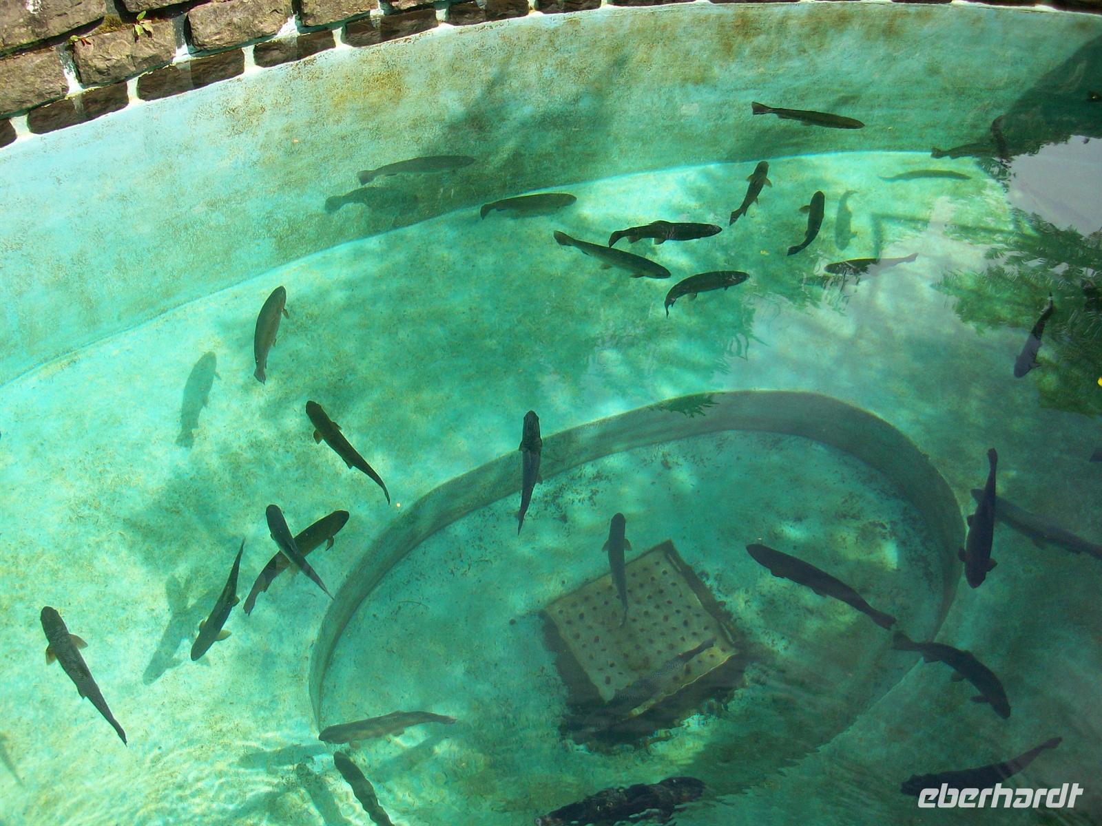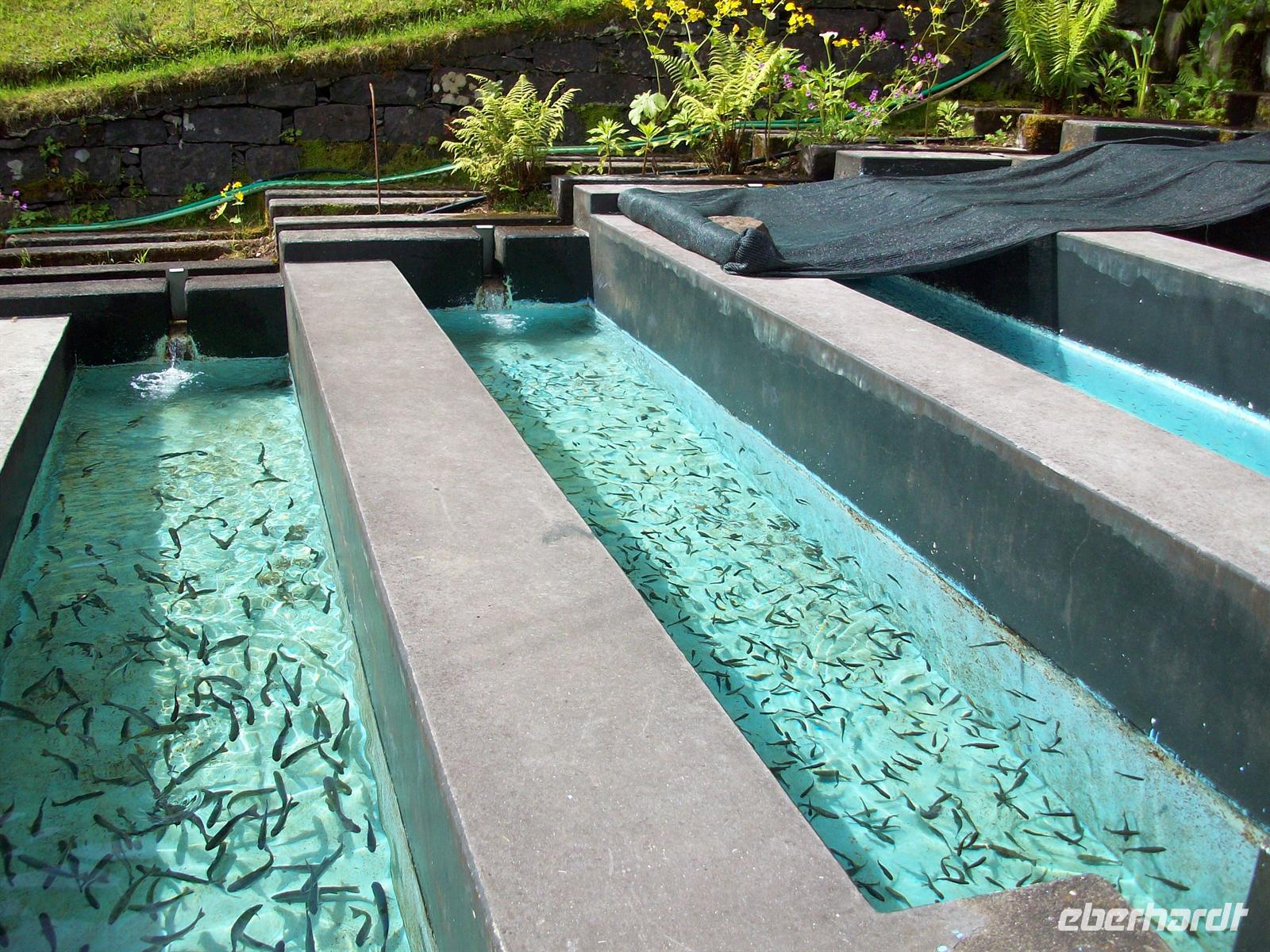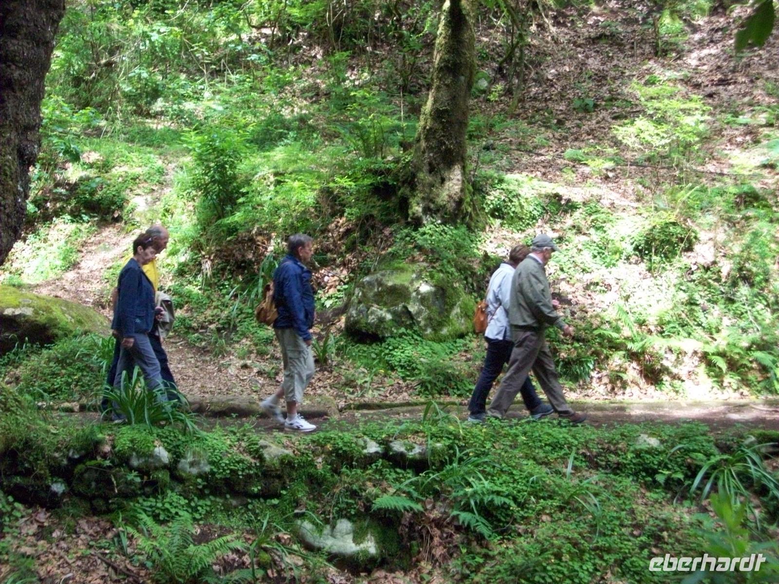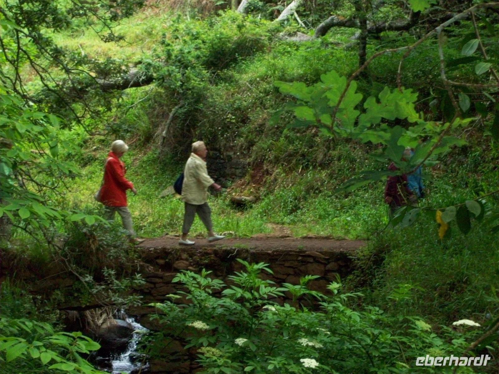 guten Blick ins Tal jedoch auf die unglaubliche Wolkendecke, die vor uns lag bzw. unter uns. Als nächstes sollten wir die Forellenzucht auf Madeira kennenlernen. Hierzu fuhren wir nach Ribeiro Frio inmitten einer Gebirgslandschaft und der letzten zusammenhängenden Laurazeenwälder der Insel. Weiter ging es diesmal nicht mit dem Bus sondern zu Fuß. Unser Ziel war der Aussichtspunkt Balcoes. Entlang der Levada do Furado gelangten wir zu einem wunderschönen Plätzchen der Insel. Der Blick auf die höchsten Gipfel der Insel war beeindruckend! Pünktlich zur Mittagszeit kamen wir in Santana an. Bei einem