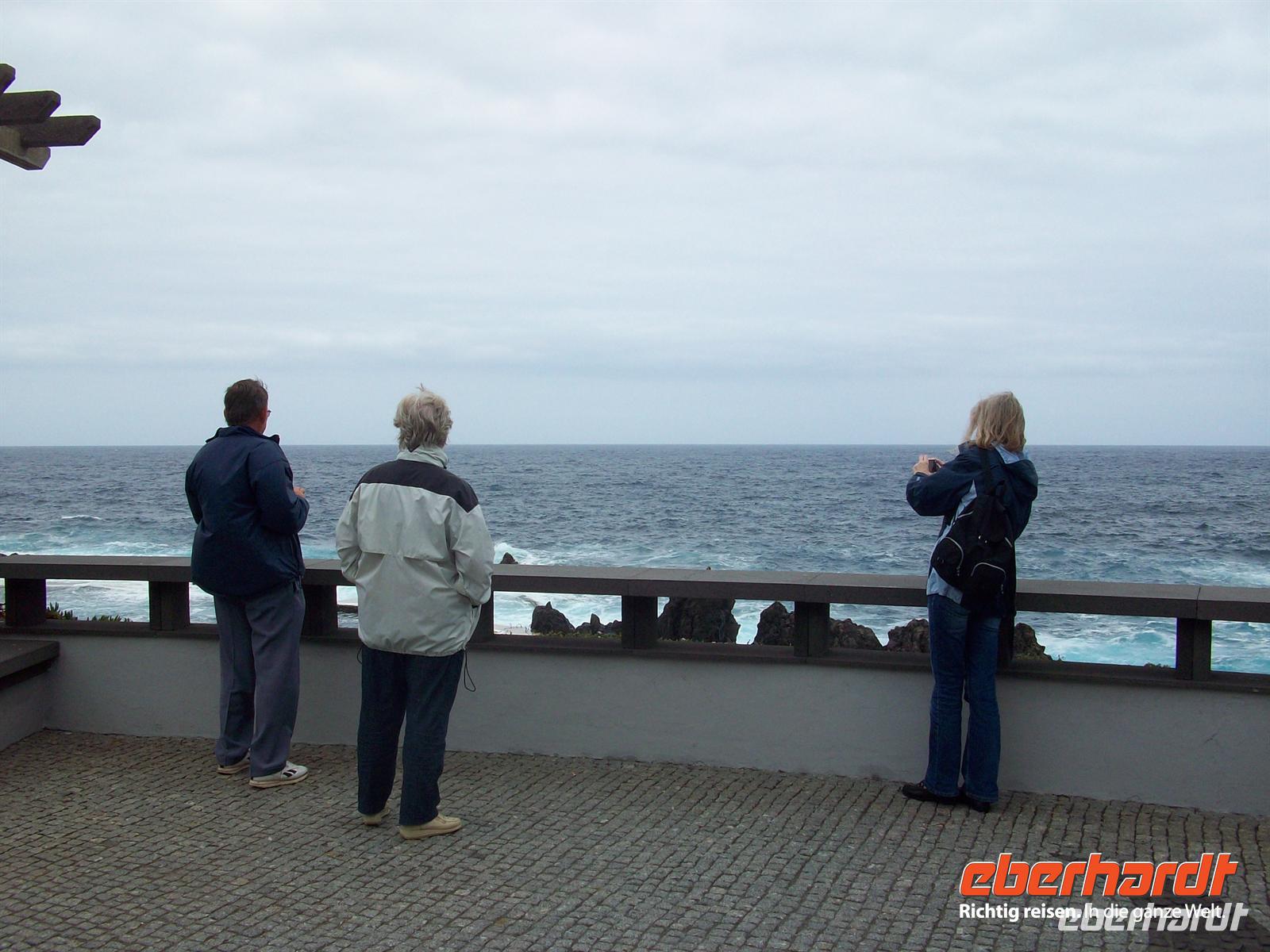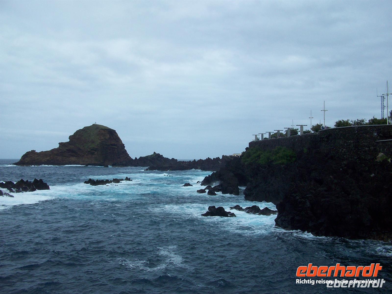 „fließende“ Wolke gehüllt. Über die Hochebene Paúl de Serra, welches an das schottische Hochland erinnert ging die Fahrt nach Porto Moniz. Hier erhielten wir die Gelegenheit den leckeren Degenfisch mit Blick auf das Meer zu genießen. Natürlich bestaunten wir auch die wunderbaren Naturschwimmbecken, nur leider war es etwas zu kalt zum baden. L Aber wir wollten ja auch noch mehr von der Region kennenlernen und so ging unsere Fahrt weiter zu einem Aussichtpunkt auf den Brautschleier. Dies ist ein Wasserfall welcher sich über einer ehemaligen Straße an einer steilen Küste ergießt. Unseren letzten Stopp am ersten Ausflugstag machten wir in Câmera de Lobos. Hier genoss schon Winston Churchill den wunderbaren Blick auf die Bucht und beobachtete das bunte Treiben der Fischer. Bei einem Glas „Nikita“ ließen wir den aufregenden Ausflugstag Revue passieren.