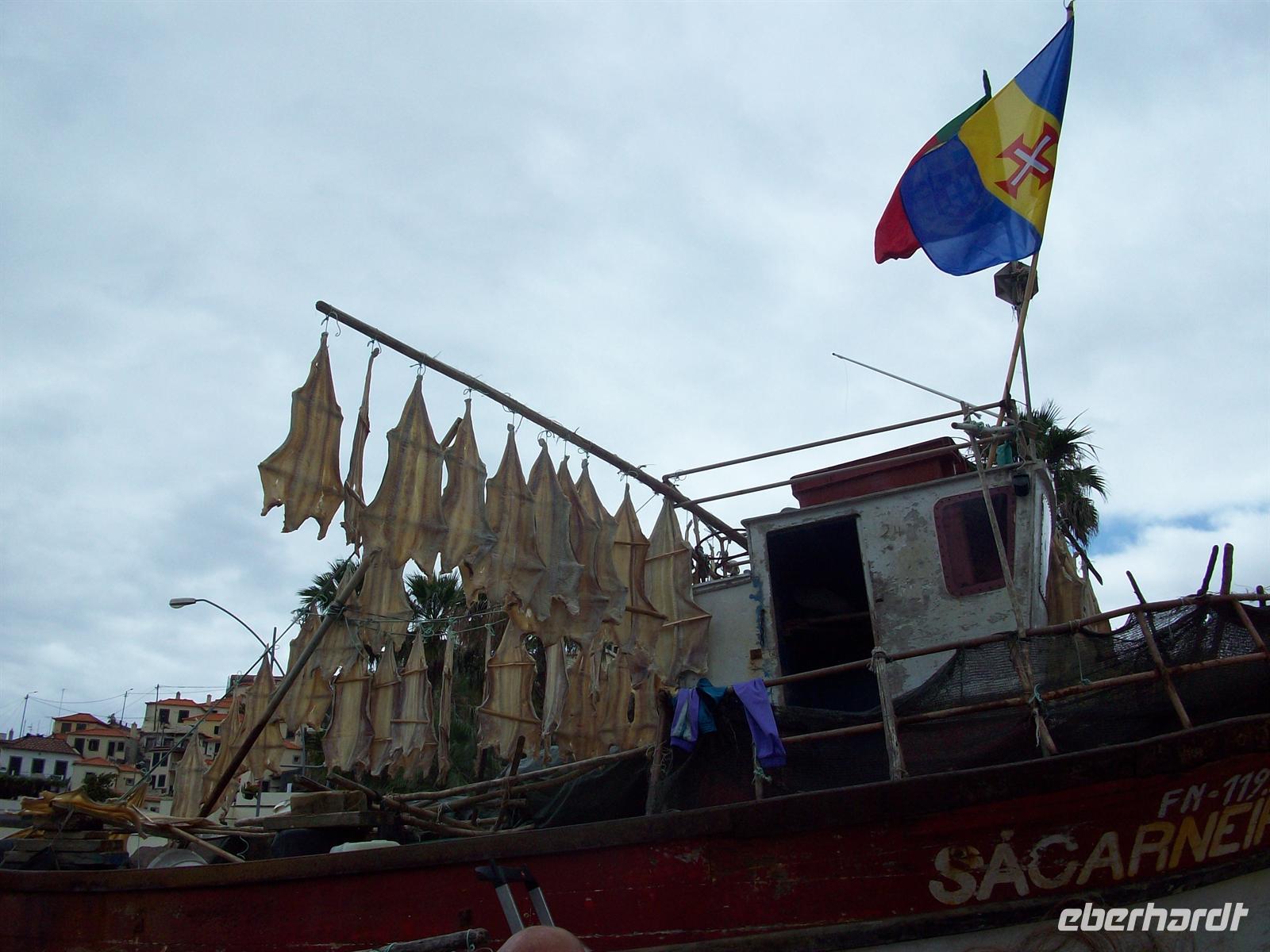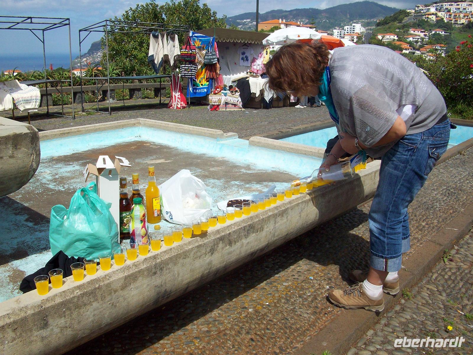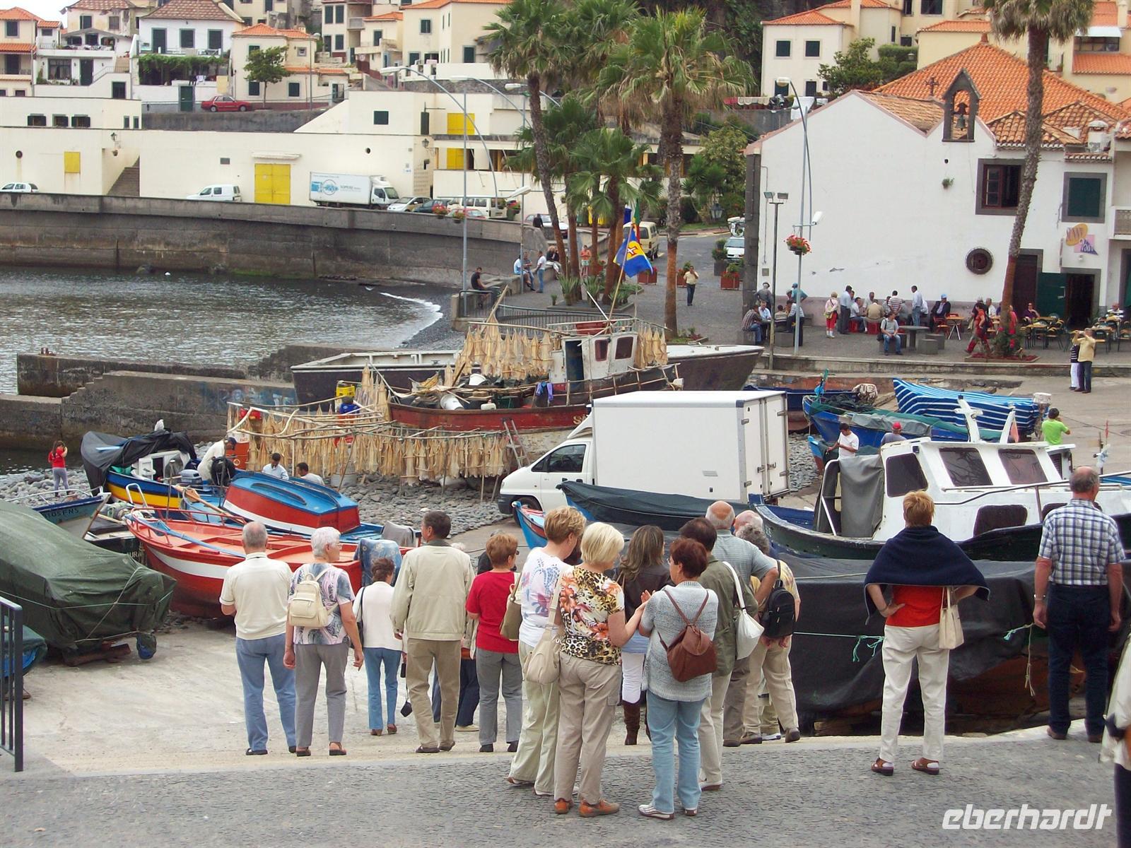Heute stand die Hauptstadt der Blumeninsel im Mittelpunkt, Funchal. Zu erst besuchten wir das Highlight der Stadt, die Markthalle „Mercado dos Lavradores". Man könnte meinen, man würde ganz betrunken von den vielen Farben und Gerüchen. Im Inneren gruppieren sich die Marktstände mit einer unglaublichen Fülle herrlicher Früchte und Blumen auf zwei Ebenen um einen weiten Hof, dessen Wände von wundervollen Kachelbildern verziert sind. Jedoch ist das absolute Muss, der Fischmarkt im hinteren Teil der Halle. Hier können wir den unheimlichen Degenfisch näher kennen lernen. Nach diesem Erlebnis geht unsere Reise weiter zu Esmeralda - die Kräuterfee. Bei Kräutertee, selbst gebackenem Kuchen und leckerem Gelee genießen wir die Ruhe der Großstadt. Im Anschluss lernen wir den Garten von Esmeralda kennen mit seinen vielen Kräutern und deren