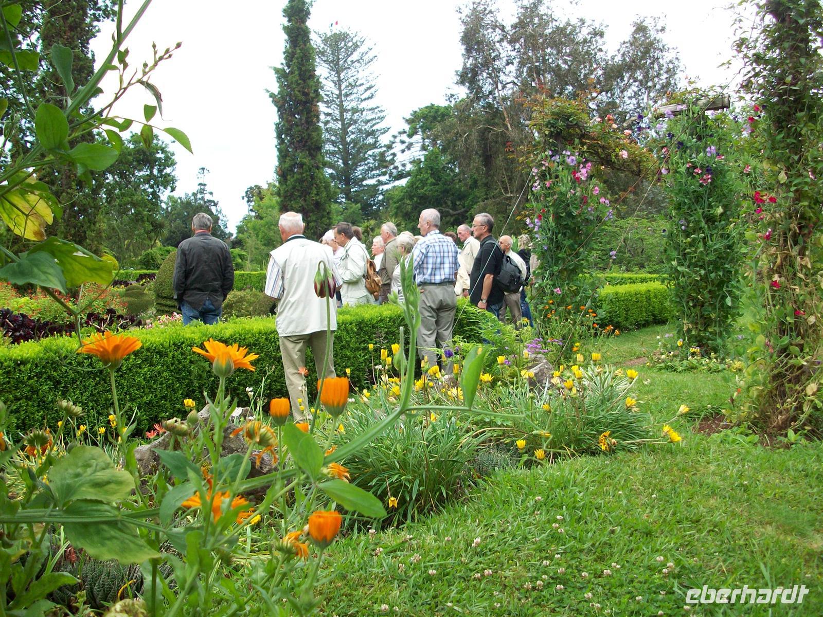 Der zweite sollte uns die wunderbare Blumenvielfalt Näher bringen. Hierzu standen gleich 3 Gärten bzw. Parks auf dem Plan. Zu erst besuchten wir die Quinta do Palheira, Blandys Garten. Diese Anwesen im Besitz der Familie Blandy hat einige der wertvollsten und seltensten exotischen Pflanzen der Insel. Vor allem die Vielfalt der Kamelien, Agapathus, Magnolien und Proteen ist einmalig. Letztere wurden von Mildred Blandy selbst aus ihrer Heimat Südafrika eingeführt. Nach einem wohltuenden Kaffee in wundervoller Umgebung ging es weiter zum Jardim Orquida. Hier trifft man auf eine atemberaubende Artenvielfalt der Orchideen. Während der Führung erhielten wir Einblicke in die Vermehrung dieser und bekamen wertvolle Tipps für die Pflege der liebebedürftigen Pflanzen. Der letzte