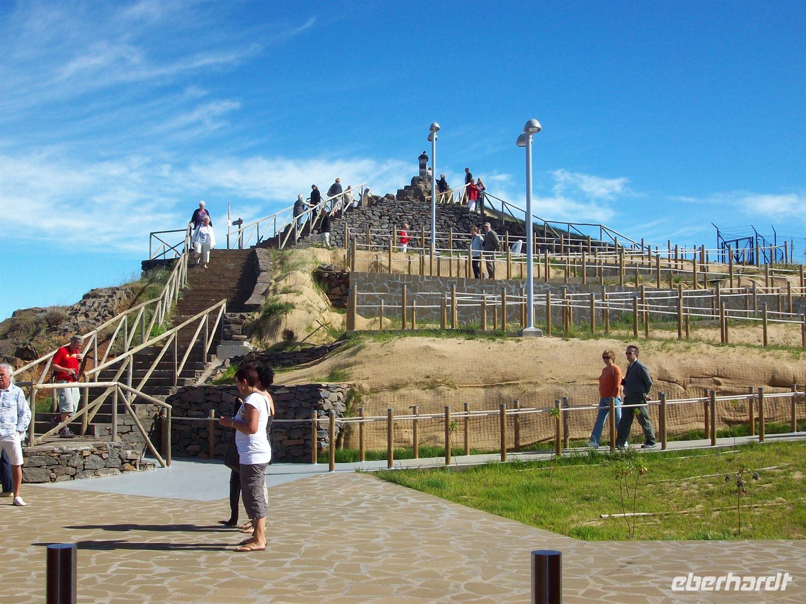 Heute hieß es, die Wanderschuhe an und sportlich geht es los. Aber ganz so sehr sportlich wollten wir es dann doch nicht sofort angehen, so dass wir erstmal ein kleines Stückchen mit dem Bus bis zu einer wunderbar gelegenen Levada gefahren sind. Eine Levada ist ein kunstvoll angelegtes Bewässerungssystem, dessen Kanäle sich auf insgesamt ca. 2.150 km Länge erstrecken. Diese Levadas werden sogar von Levadeiros in Ordnung gehalten und bewacht. Nach der gemütlichen Wanderung gab es noch ein kleines Extra - wir machten Stopp am Aussichtspunkt Ponta do Garajau, an der Statue "Christo Rei". Da kam man sich glatt vor wie in Rio!