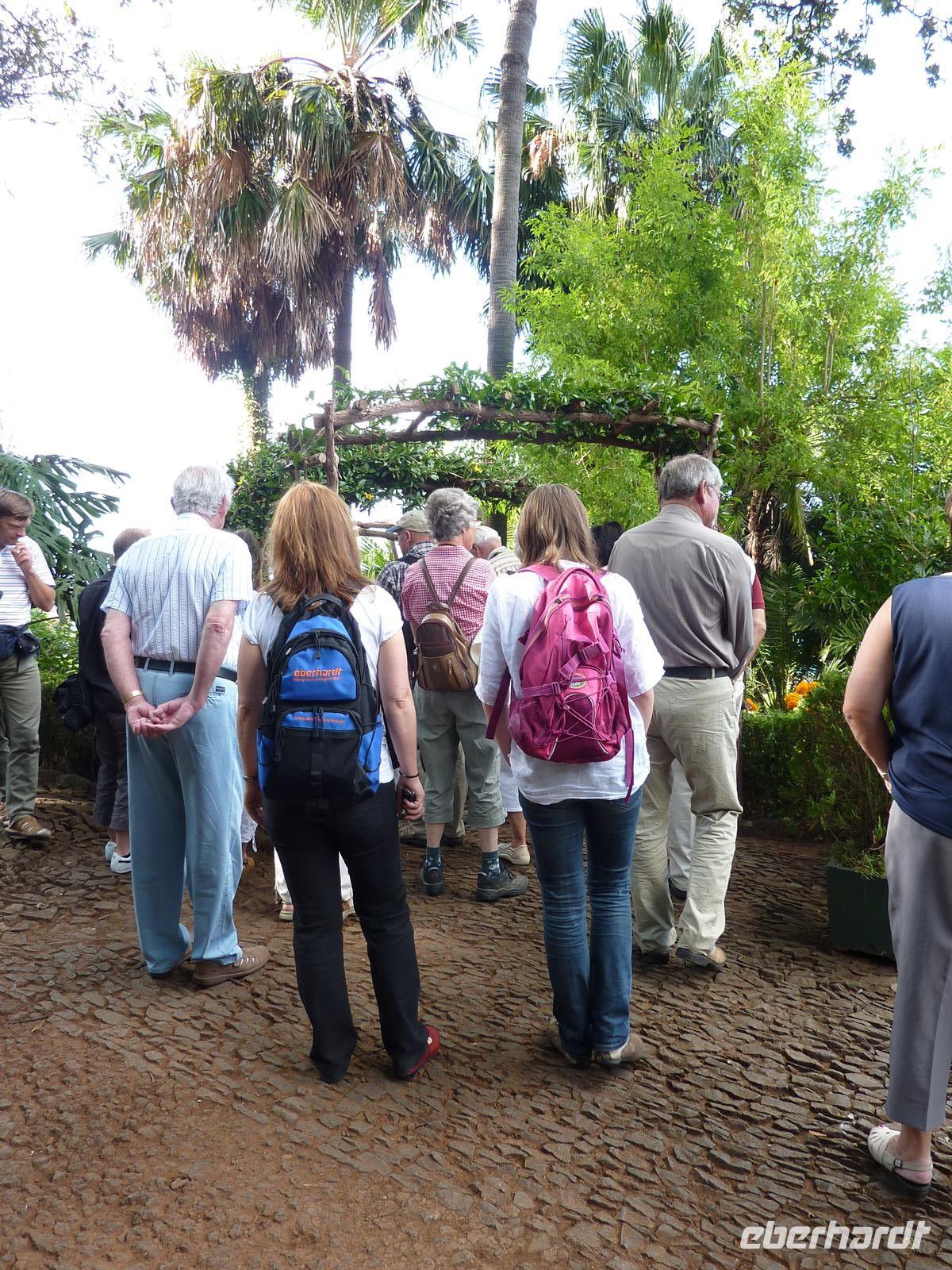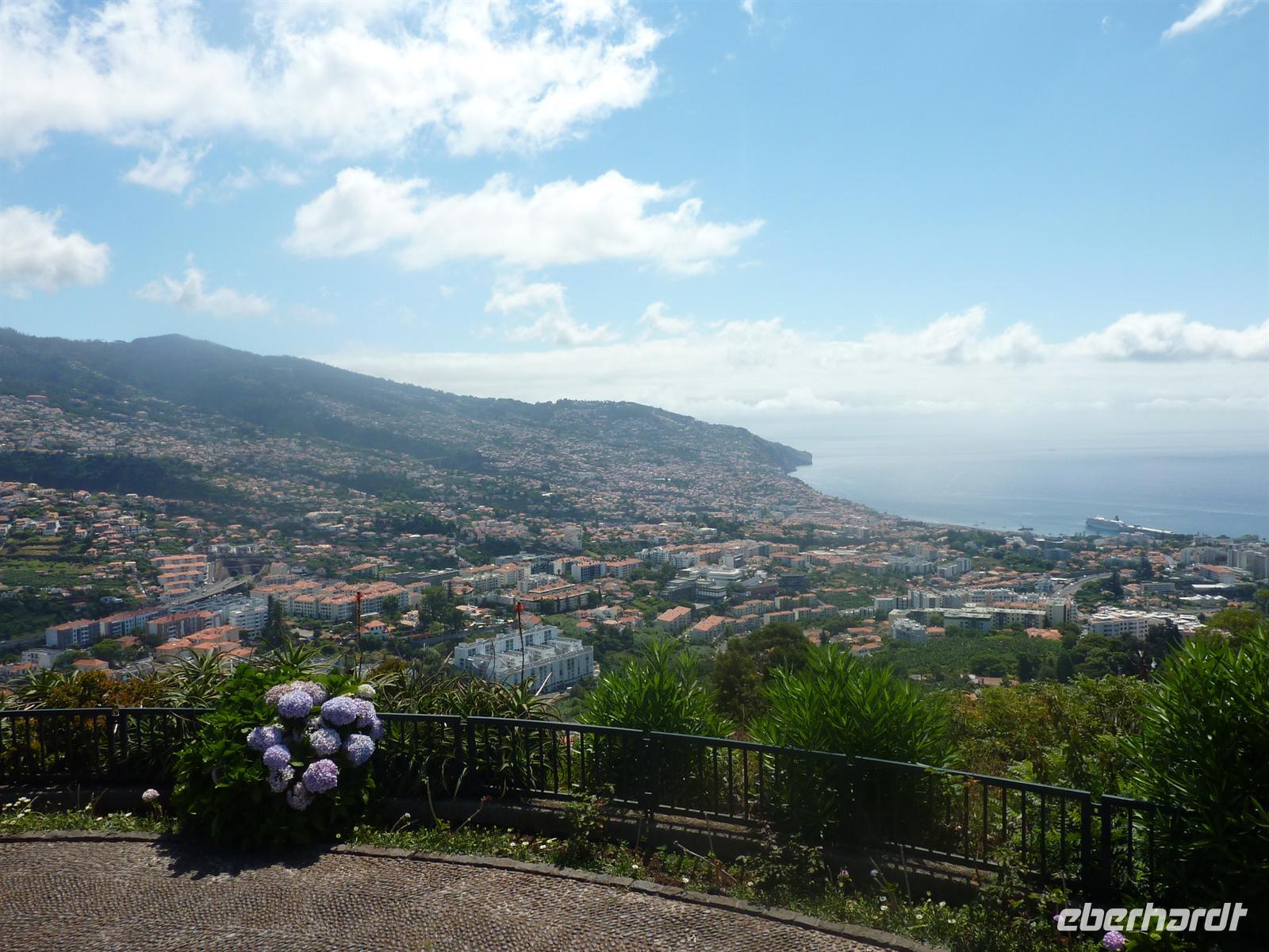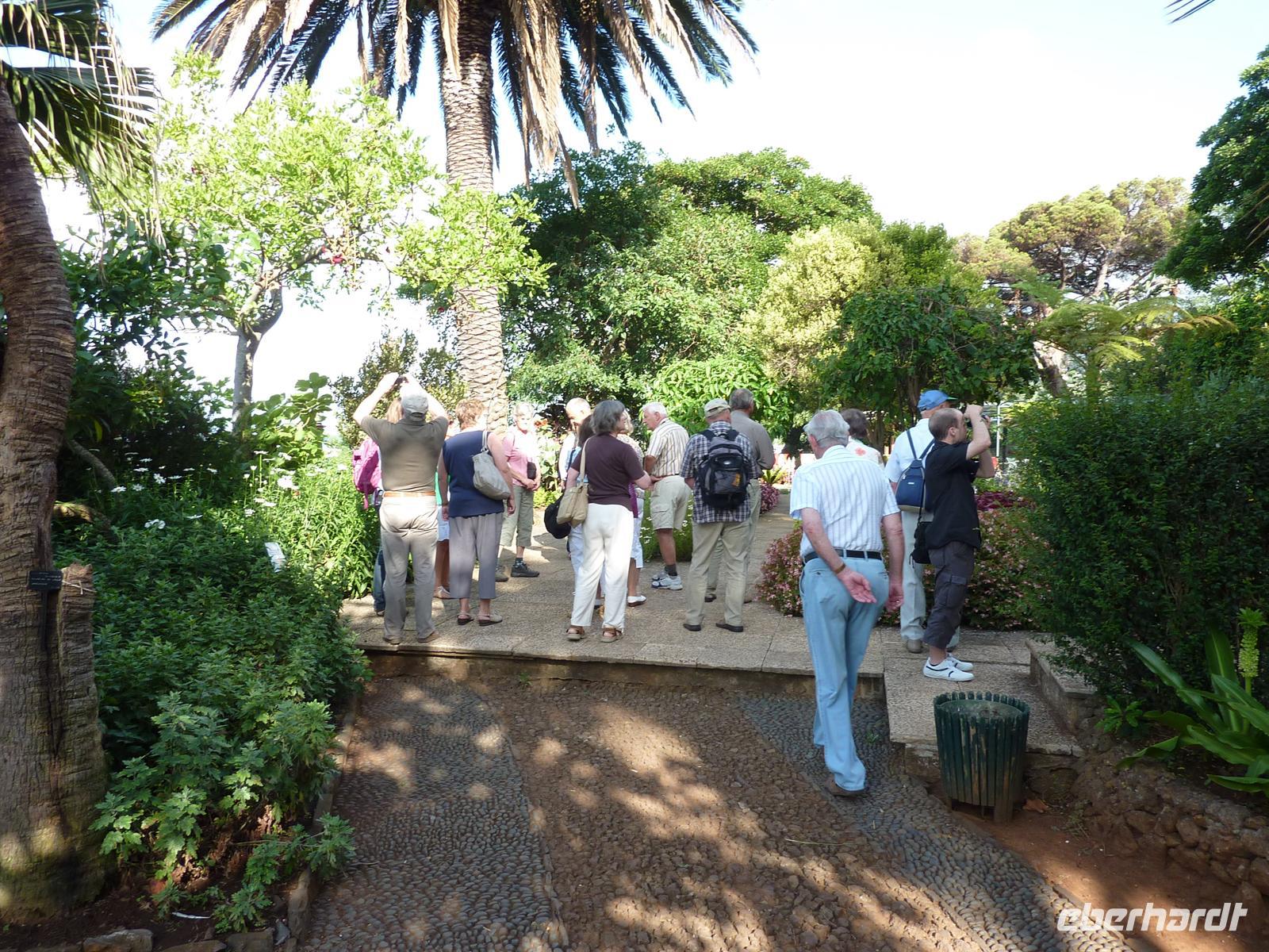 Unsere Stippvisite beginnen wir jedoch zunächst mit einem Besuch des Jardim Botanico da Madeira - dem Botanischen Garten von Madeira - in ca. 300 m Höhe an einem Hang über den „Dächern“ von Funchal gelegen. Gemeinsam mit unserer Reiseleiterin Paula durchstreifen wir die sorgfältig angelegten Gartenwege und lassen uns von der schier unendlichen Vielfalt exotischer und einheimischer Pflanzen verzaubern. Auf einer Terrasse inmitten all der floristischen Schönheiten gönnen wir uns eine kurze Pause und genießen den überwältigenden Blick auf die Inselhauptstadt und auf das vor uns liegende Meer.