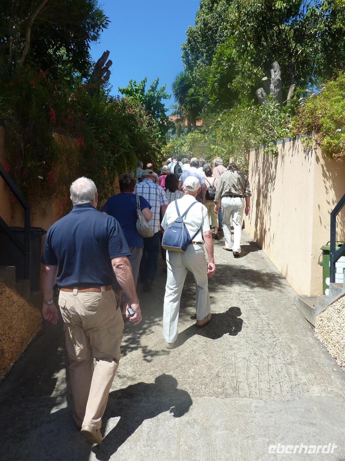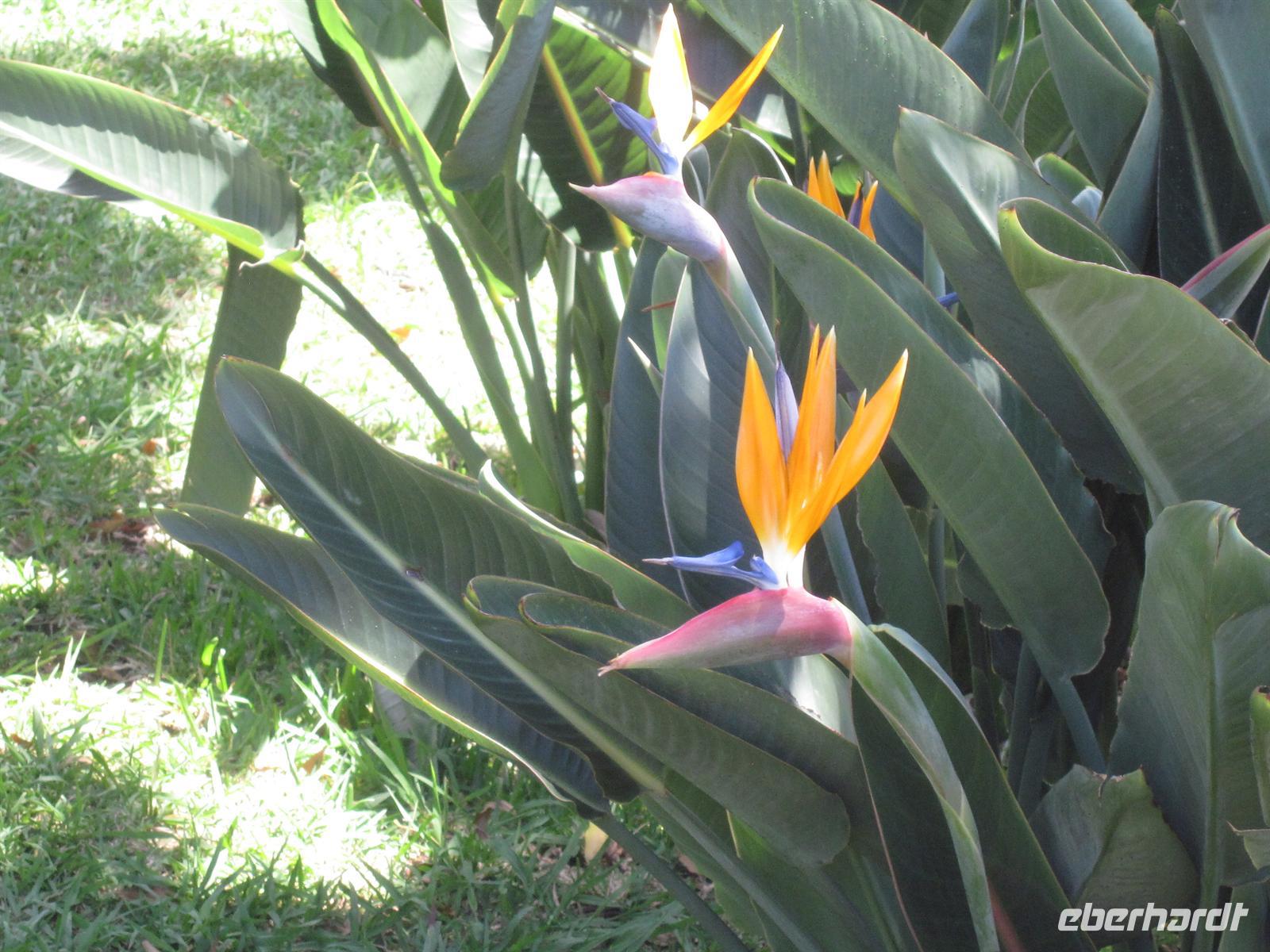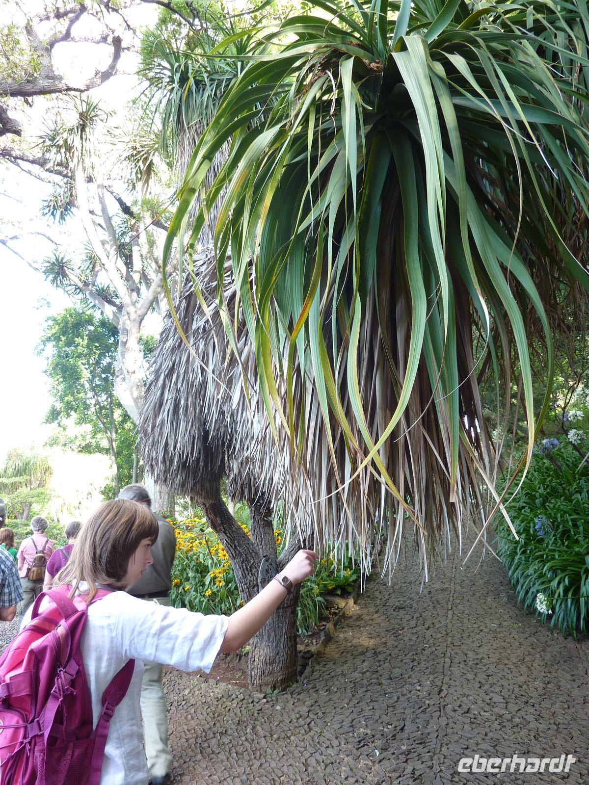 Unsere Stippvisite beginnen wir jedoch zunächst mit einem Besuch des Jardim Botanico da Madeira - dem Botanischen Garten von Madeira - in ca. 300 m Höhe an einem Hang über den „Dächern“ von Funchal gelegen. Gemeinsam mit unserer Reiseleiterin Paula durchstreifen wir die sorgfältig angelegten Gartenwege und lassen uns von der schier unendlichen Vielfalt exotischer und einheimischer Pflanzen verzaubern. Auf einer Terrasse inmitten all der floristischen Schönheiten gönnen wir uns eine kurze Pause und genießen den überwältigenden Blick auf die Inselhauptstadt und auf das vor uns liegende Meer.