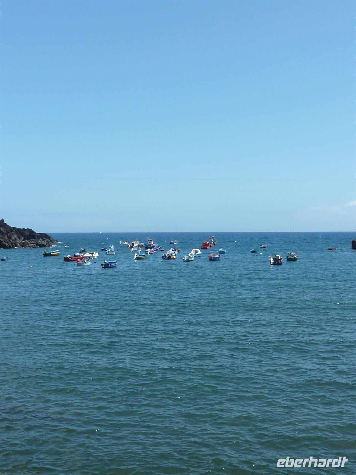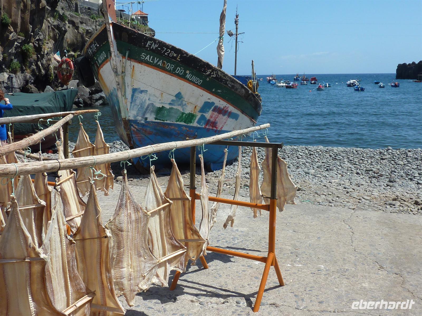 Bei immer noch bedecktem Himmel und einigen aufziehenden Regenwolken verlassen wir Porto Moniz und statten dem geschmackvoll restaurierten Ortskern von Sao Vicente sowie der dortigen Pfarrkirche noch einen kurzen Besuch ab. Den Abschluss unseres heutigen Ausflugstages bildet der Küstenort Camara de Lobos den wir am späten Nachmittag erreichen. Als Hauptattraktion des Ortes gilt der Hafen. Die hier ansässigen Fischer mit ihren bunten Holzbooten arbeiten fast alle nur nachts, denn nur dann steigt der Espada preta - der für Madeira typische Degenfisch - aus seinem Lebensraum in über 800 m Meerestiefe nach oben, um auf Nahrungssuche zu gehen. Bei einem Bummel durch das Hafenviertel können wir Fischern beim Kartenspielen über die Schulter schauen oder die zum Trocknen in die Sonne gehängten und auf Holzgestelle gespannten Katzenhaie bestaunen. Bevor es wieder in Richtung Canico geht, genießt der ein oder andere noch einen Kaffee oder einen „Nikita“ (ein Cocktail aus Wein, Bier, Vanilleeis und Ananas - benannt nach dem Elton-John-Song „Nikita“) in einem der Hafencafés von Camara de Lobos. Wieder im Hotel angekommen, lassen wir die zahlreichen Eindrücke des Tages Revue passieren und den Abend individuell oder bei einem gemeinsamen Abendessen im Restaurant „Le Buffet“ in Canico de Baixo ausklingen.