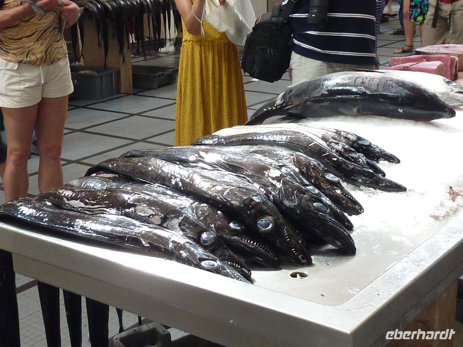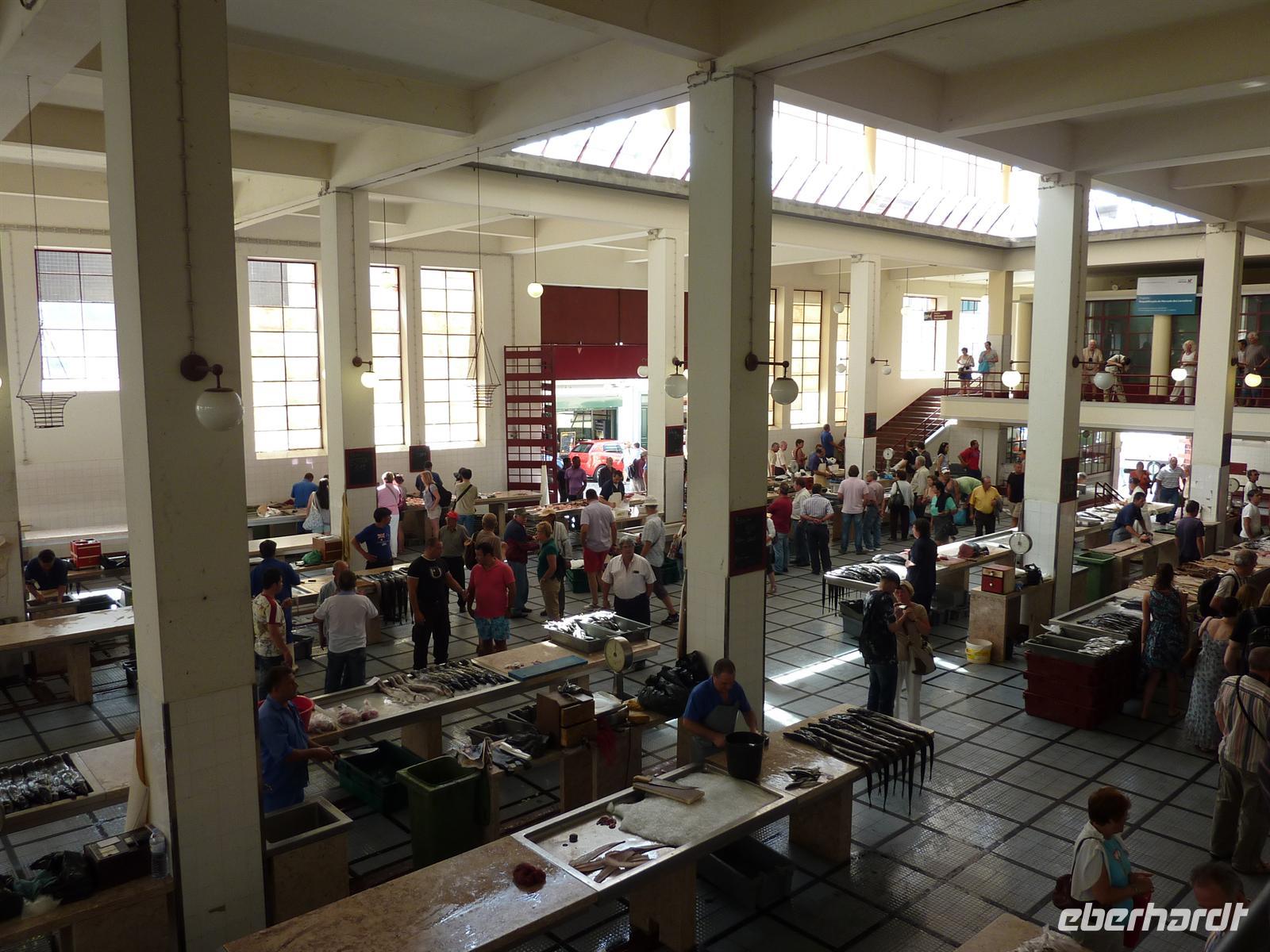 Unser erster Besuch gilt dem Mercado dos Lavradores - der Markthalle der Stadt. Das Herzstück dieses überaus lebhaften Marktes bildet der arkadengesäumte Innenhof mit unzähligen Obst-, Gemüse- und Blumenständen.Atmosphäre einfangen, schlendern neugierig durch die engen Marktgassen und lassen uns so manche Kostprobe der feilgebotenen Früchte schmecken. Auf dem Fischmarkt, der in einer eigenen großen Halle residiert, können wir riesige Thun- und Degenfische bestaunen und den Fischern bei ihrer Arbeit über die Schulter schauen.