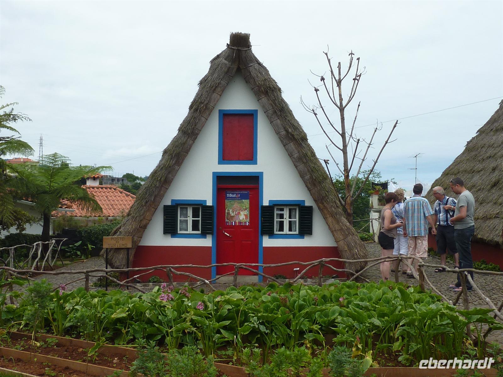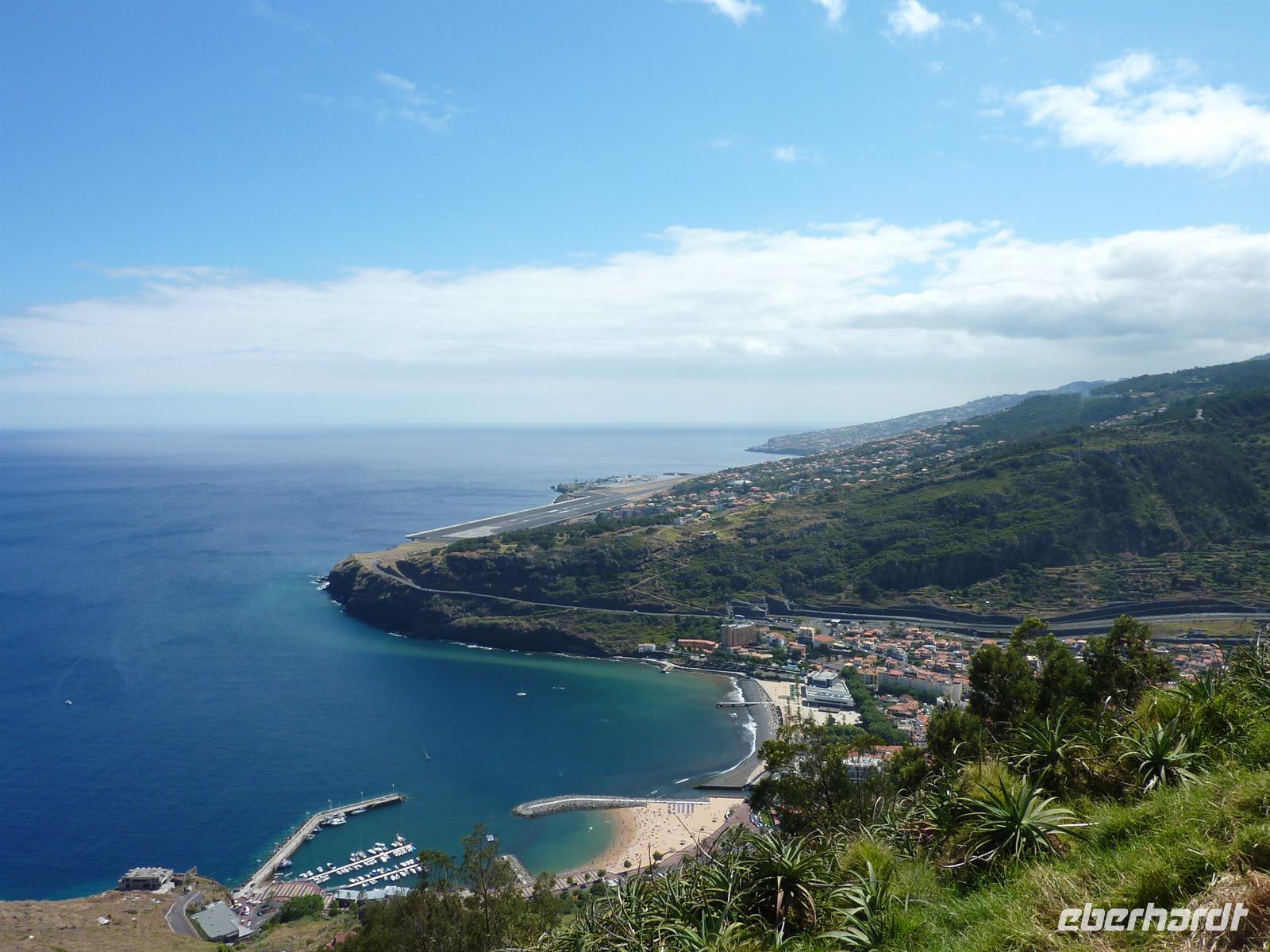 Nach gut 50 Minuten erreichen wir wieder unseren Bus und fahren in die Kleinstadt Santana, die für ihre farbenfrohen, strohgedeckten Häuschen bekannt ist. Nachdem wir uns bei einem sehr schmackhaften Mitttagessen im Restaurant „Colmo“ gestärkt haben, bummeln wir durch das Zentrum des Ortes, das uns mit regem Treiben empfängt. Wie wir von unserer Reiseleiterin Paula erfahren haben, findet in Santana am Wochenende ein 48 Stunden Tanzfestival statt. Blumengeschmückte Stände mit handwerklicher Kunst oder kulinarischen Köstlichkeiten säumen die Straßen und den Hauptplatz des Ortes und laden uns zum Verweilen ein. Wir setzen unsere Reise fort und erreichen nach einem kurzen Zwischenstopp auf dem Portela Pass den Pico do Facho. Ich nutze diesen grandiosen Aussichtspunkt mit Blick auf die Ostspitze Madeiras und die spektakuläre Landebahn des Flughafens, um meine Gäste mit einem Gläschen Madeirawein und einem Stück Honigkuchen zu überraschen. Ein erlebnisreicher Ausflugstag neigt sich dem Ende und wir erreichen gegen 17.00 Uhr wieder unser Hotel in Canico.