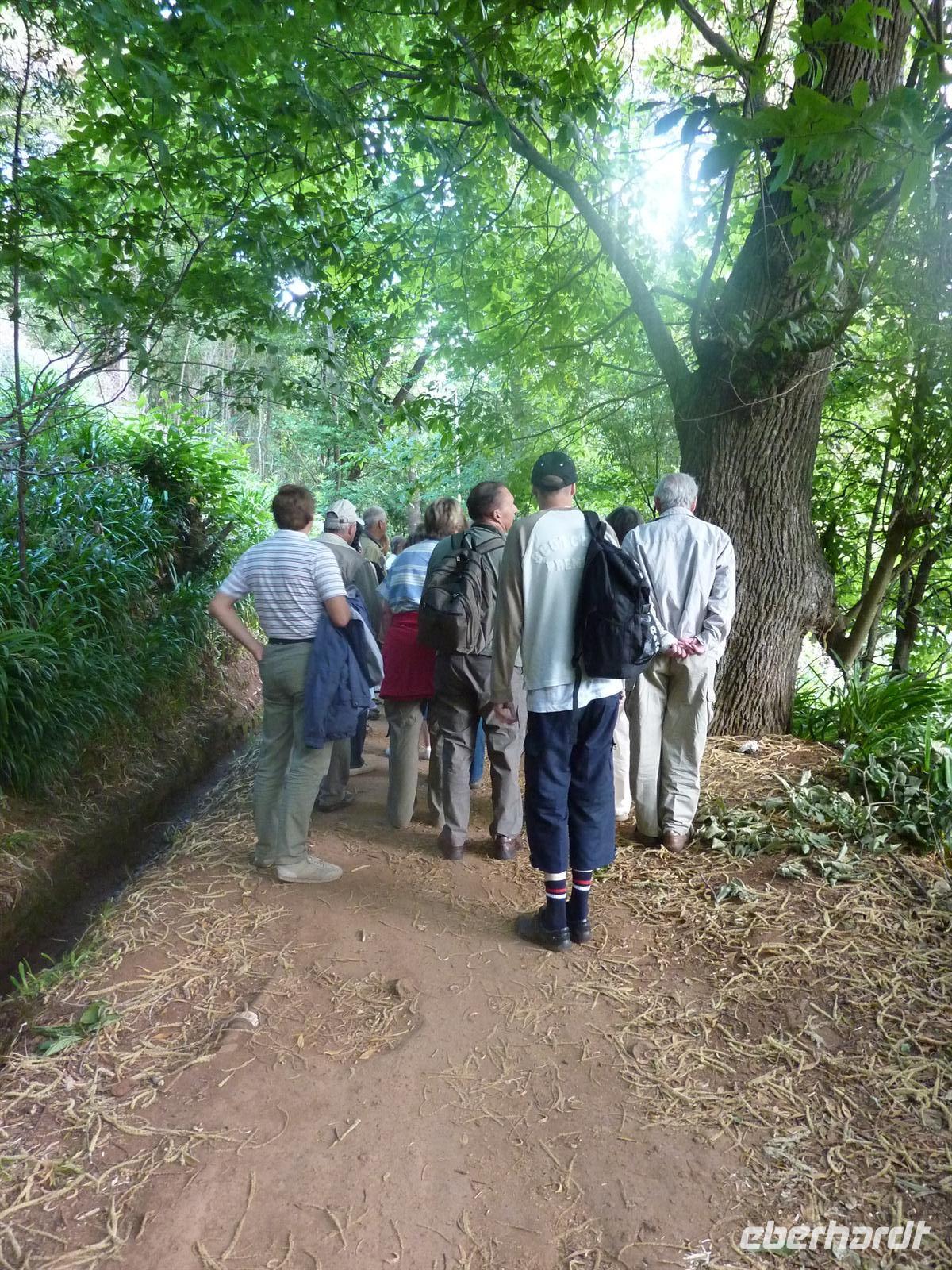 Unser Bus bringt uns zum Ausgangspunkt unserer Wanderung in die Umgebung von Camacha , an die Levada da Serra do Faial. Gemeinsam mit Paula geht es auf Schusters Rappen entlang des schmalen Wasserkanals. Unterwegs können wir die beeindruckende Pflanzenvielfalt, die links und rechts unseren Weg säumt bestaunen und wir erhalten hier und da Einblicke in das Leben der ländlichen Bewohner Madeiras. Nach gut einer Stunde legen wir in der Snack Bar „Moises“ eine Pause ein und sammeln bei einem Kaffee oder einem kleinen Imbiss Kräfte für unsere letzte Wanderetappe. Wir setzen unseren Weg fort. Der Regen wird leider stärker, so dass wir froh sind, als uns unser Chauffeur Samuel bereits am Ende der Levada mit seinem Bus erwartet. Bevor wir wieder zu unserem Hotel in Canico zurückkehren, hält Paula zum Abschluss des Ausflugstages noch eine kleine Überraschung für uns bereit.