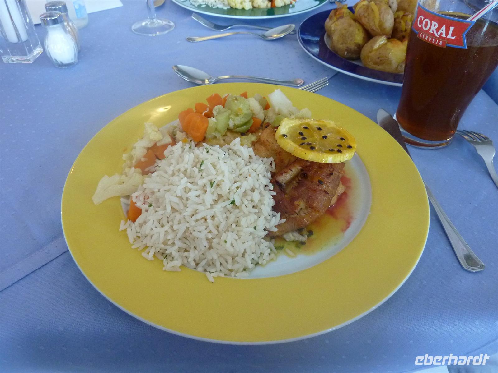 Nachdem sich alle ein wenig frisch gemacht haben, erwartet uns Hilario zu einem Begrüßungstreffen im Konferenzsaal des Hotels. Er gibt uns einen ausführlichen Einblick in das Programm der bevorstehenden Tage und beantwortet Fragen meiner Gäste. Mit einem Glas Madeira-Wein stoßen wir erwartungsfroh auf den Beginn unserer gemeinsamen Reise an. Der Rest des Tages steht allen Gästen zur freien Verfügung. Ein Teil der Gruppe schließt sich meinem Vorschlag für ein gemeinsames Abendessen an und begleitet mich in das Fischrestaurant „A Traineira“ an der Promenade von Canico de Baixo , wo wir erste Bekanntschaft mit der madeirensischen Küche machen. Mit einem schmackhaften Essen und einem anschließenden Spaziergang zurück zum Hotel endet unser erster Tag auf der Blumeninsel.