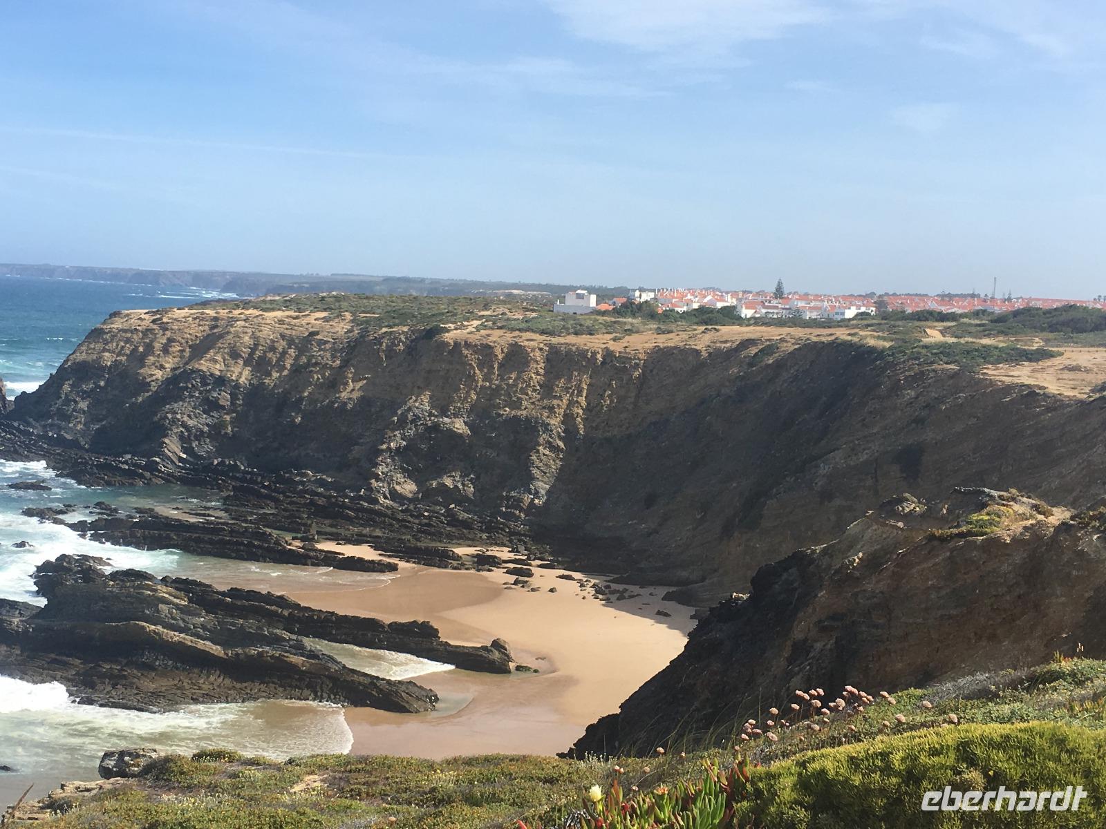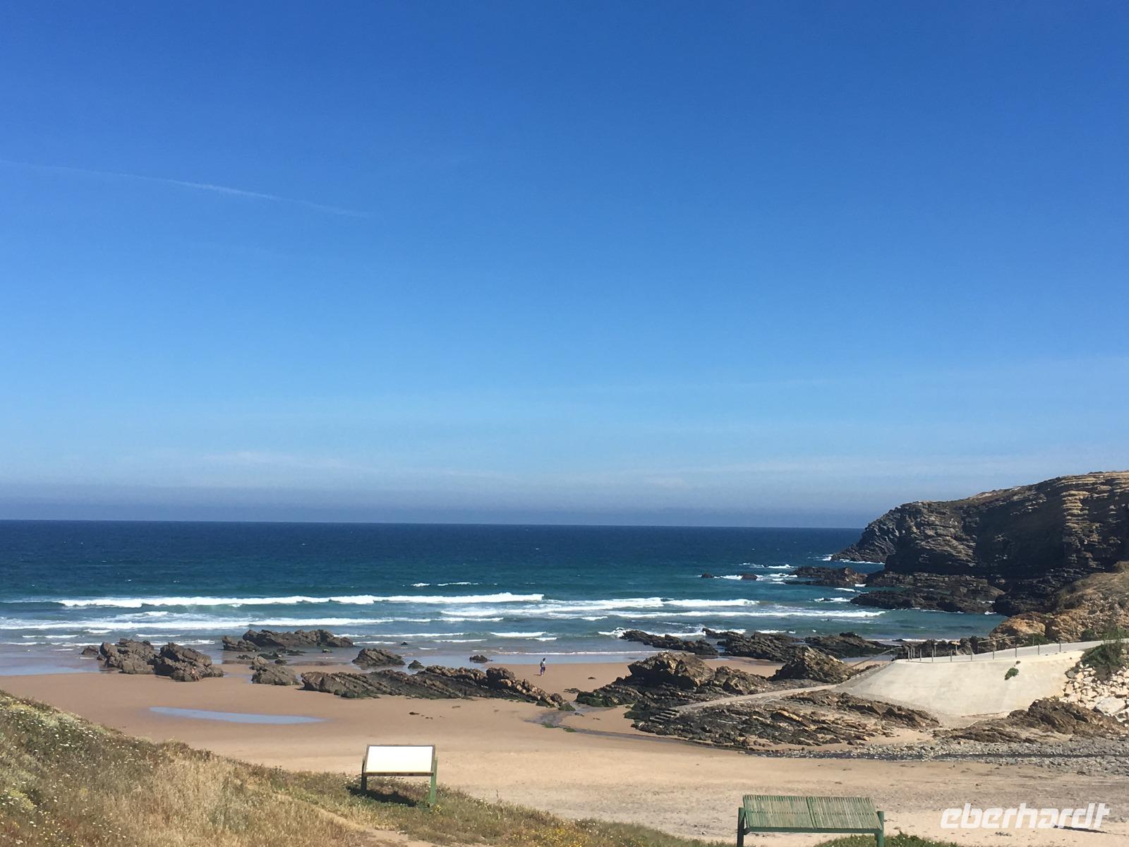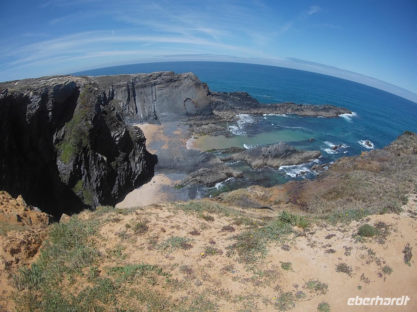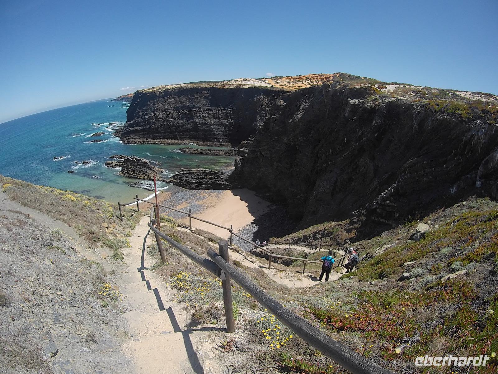 Die letzten zwölf Kilometer wollen heute von uns bezwungen werden. Wir starten von Almograve, hier waren wir bereits am Montag, jedoch geht es heute in die nördliche Richtung. Die sandigen Wege machten uns diese Wanderung gar nicht so einfach. Die Sonne vom wolkenlosen Himmel, tat auch ihr Bestes. Früher als gedacht, war unser Ziel in Sicht. Der Praia Furnas und der Rio Mira. Im kleinen Restaurant suchten wir schnell den Schatten und ließen uns kühle Getränke schmecken. Wer wollte, konnte auch die Erfrischung im Fluss suchen. Er ist einer der Flüsse mit der besten Wasserqualität in Europa. So finden hier auch viele Vögel und auch Fische ein neues Zuhause.