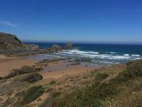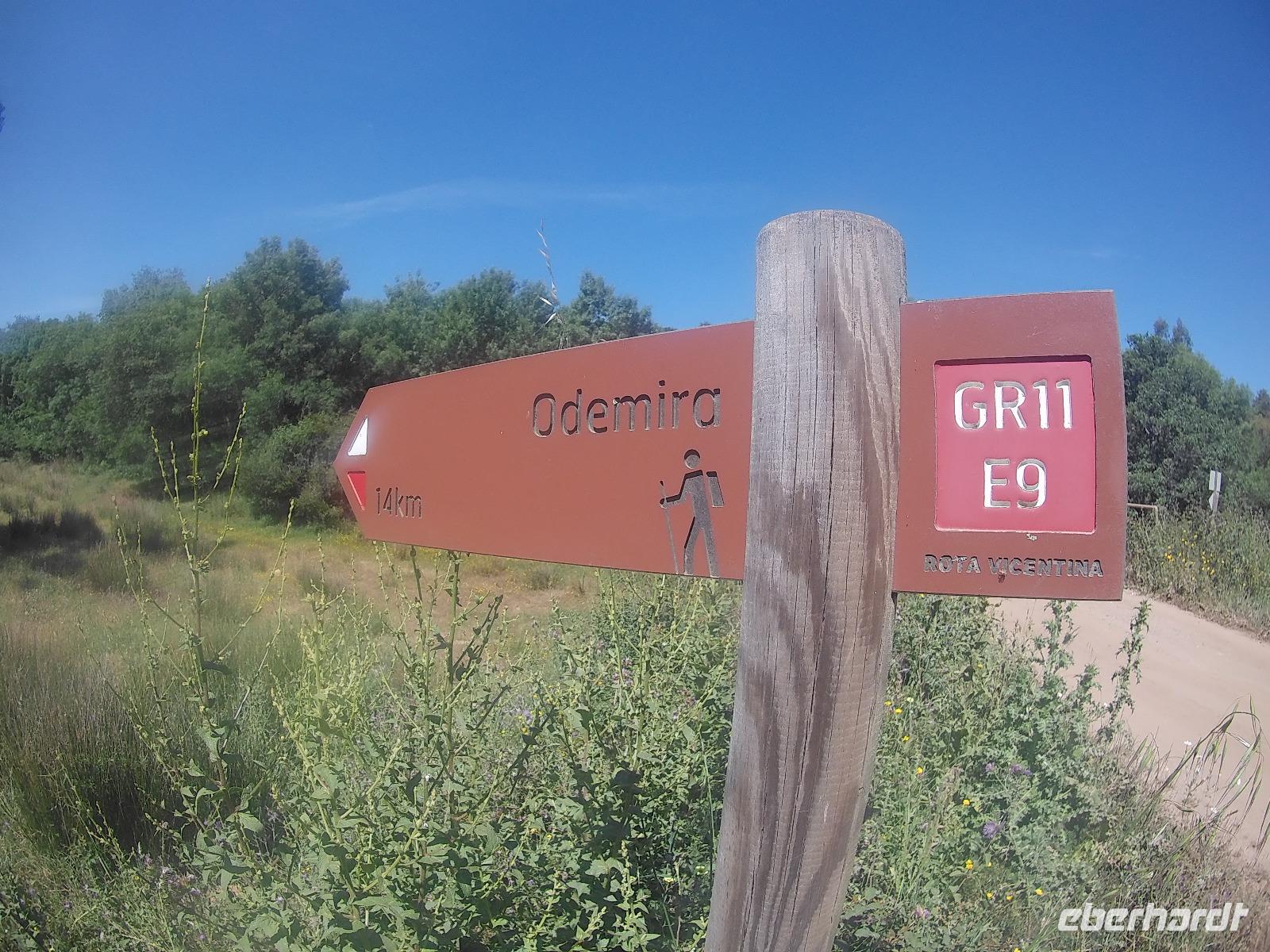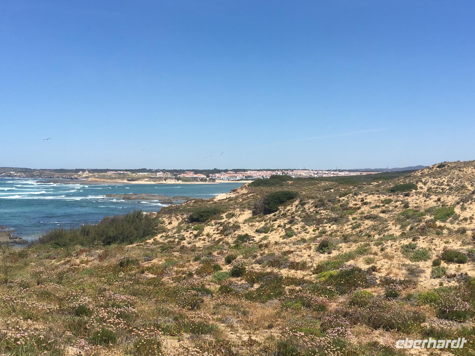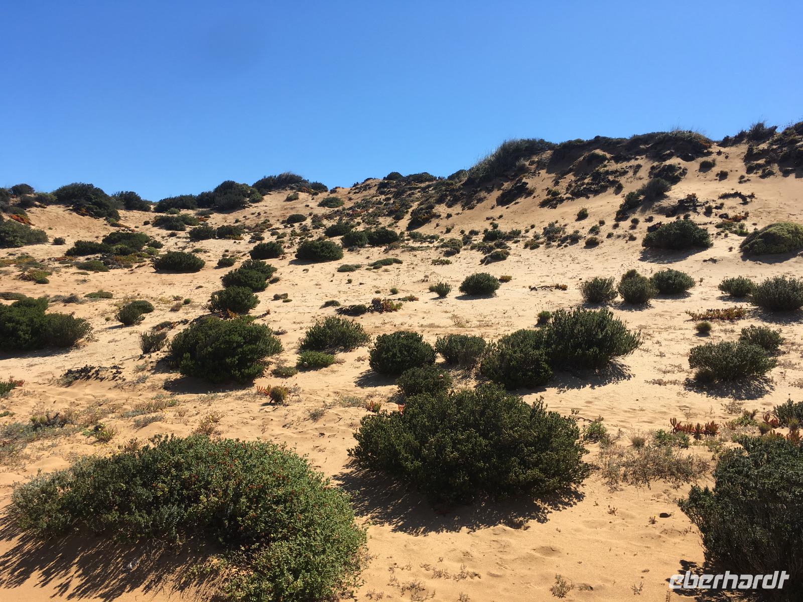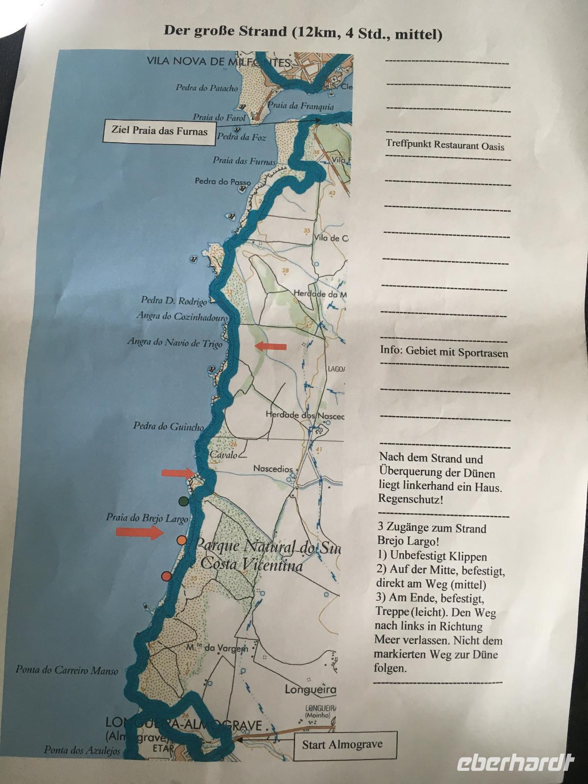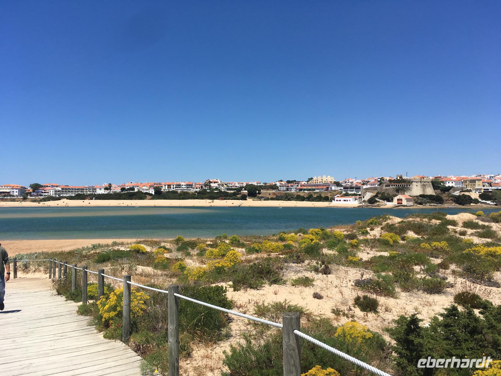 Die letzten zwölf Kilometer wollen heute von uns bezwungen werden. Wir starten von Almograve, hier waren wir bereits am Montag, jedoch geht es heute in die nördliche Richtung. Die sandigen Wege machten uns diese Wanderung gar nicht so einfach. Die Sonne vom wolkenlosen Himmel, tat auch ihr Bestes. Früher als gedacht, war unser Ziel in Sicht. Der Praia Furnas und der Rio Mira. Im kleinen Restaurant suchten wir schnell den Schatten und ließen uns kühle Getränke schmecken. Wer wollte, konnte auch die Erfrischung im Fluss suchen. Er ist einer der Flüsse mit der besten Wasserqualität in Europa. So finden hier auch viele Vögel und auch Fische ein neues Zuhause.