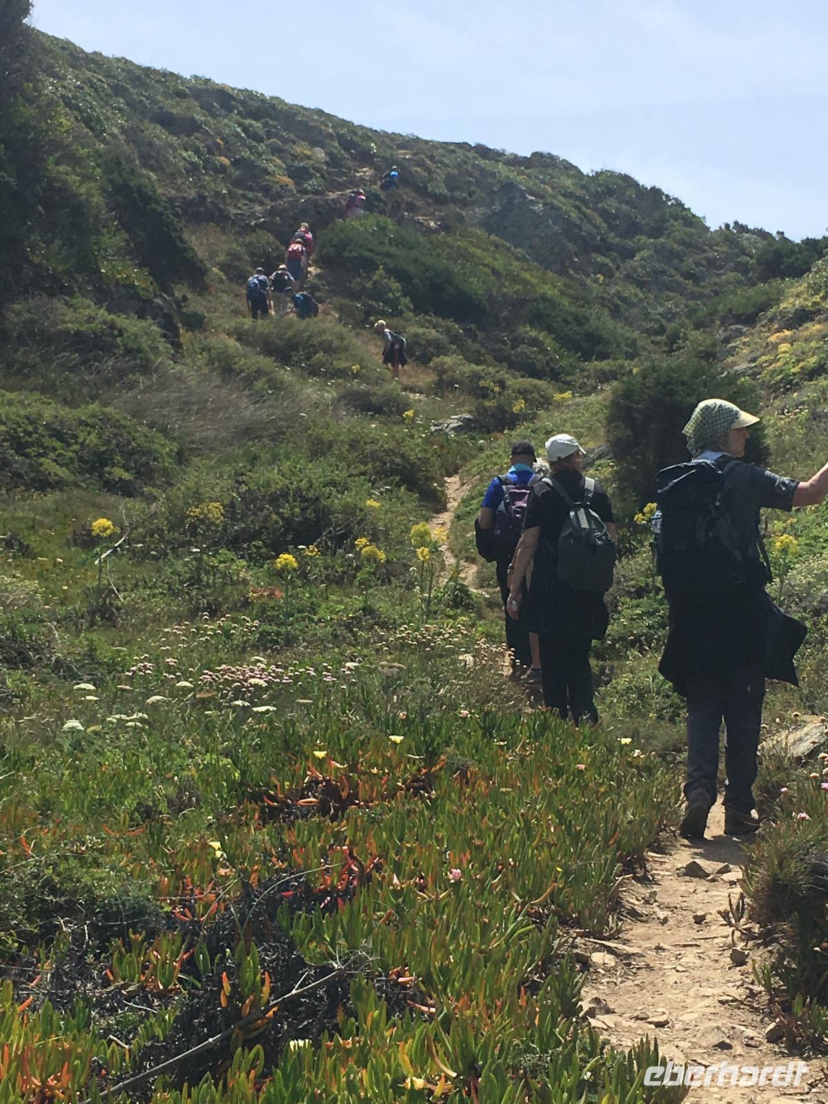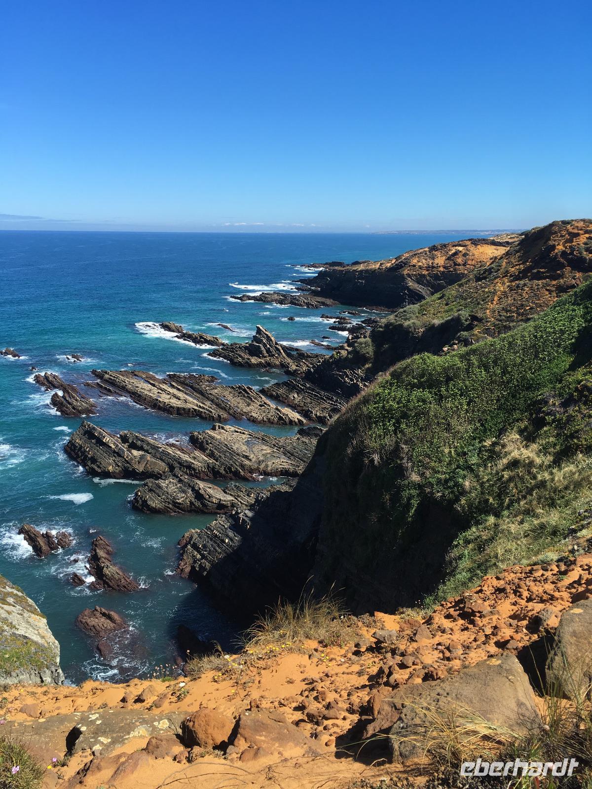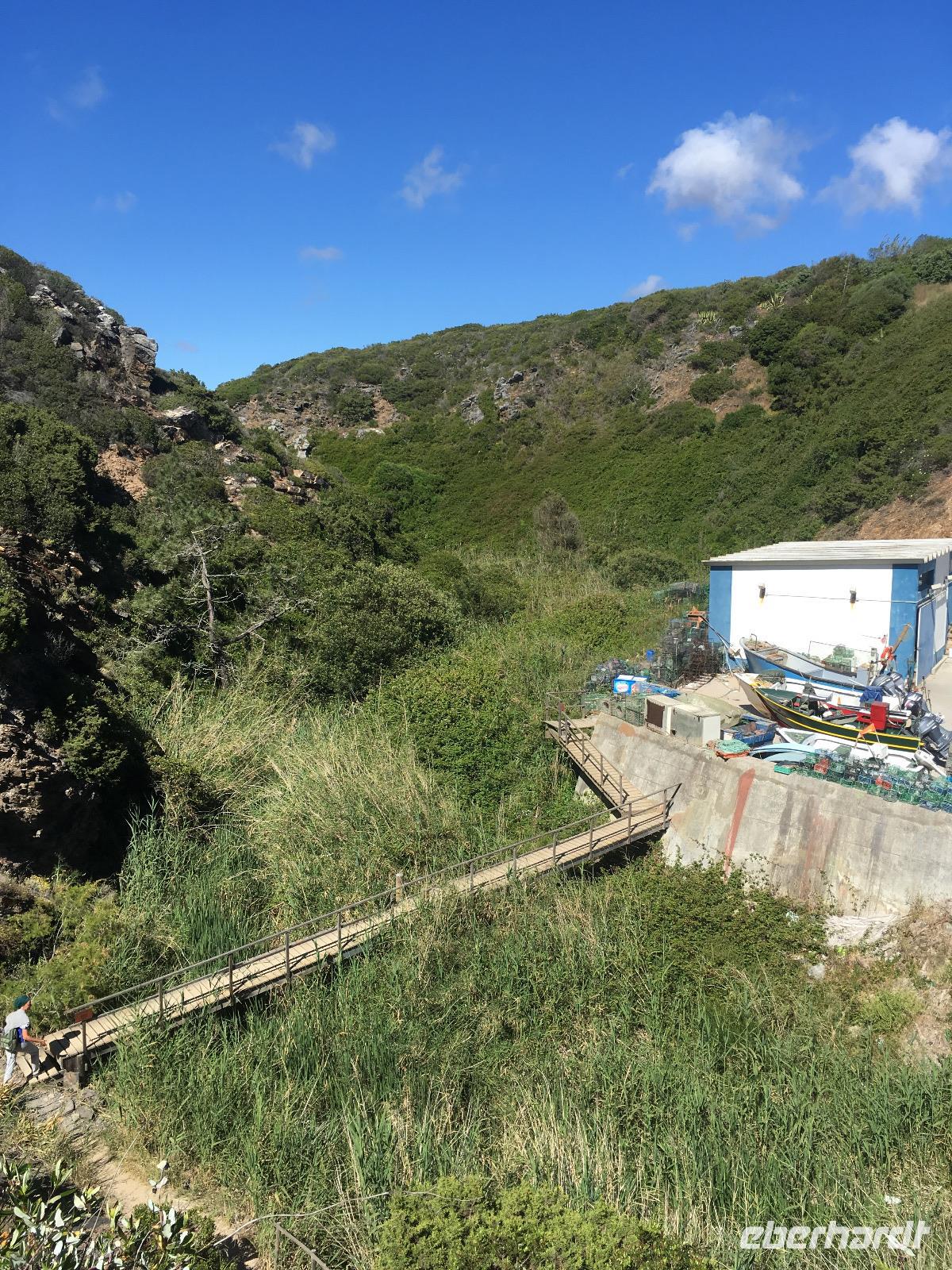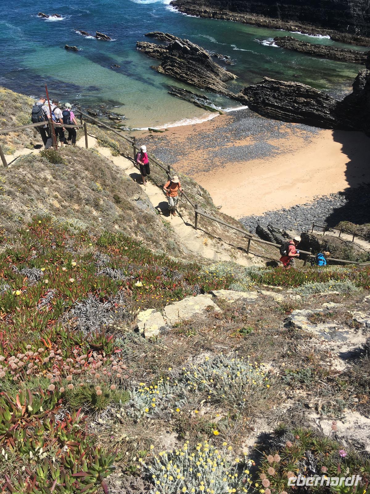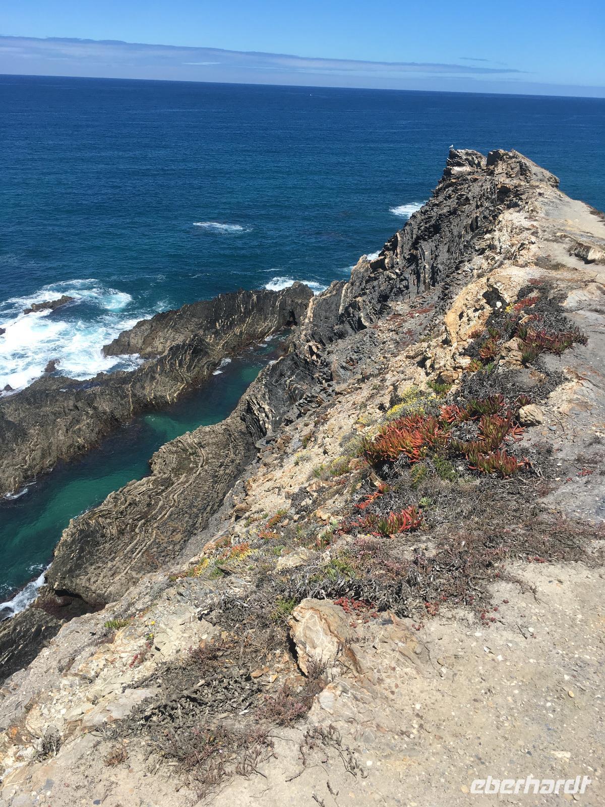 Es liegen noch zwei Wandertage vor uns. Heute startet Larissa direkt von der Unterkunft mit uns zur Klippenwanderung. Bisher hatte jede Wanderung ihren eigenen Charme und unterschiedliche Landschaftsbilder zu bieten. Unsere Erwartungen waren hoch und wir wurden nicht enttäuscht. Wilde Steilklippen und einige Kletterhindernisse wurden von uns bezwungen. Eine Pause legten wir am früheren Privatstrand von der Fadolegende Amalia Rodrigues an.