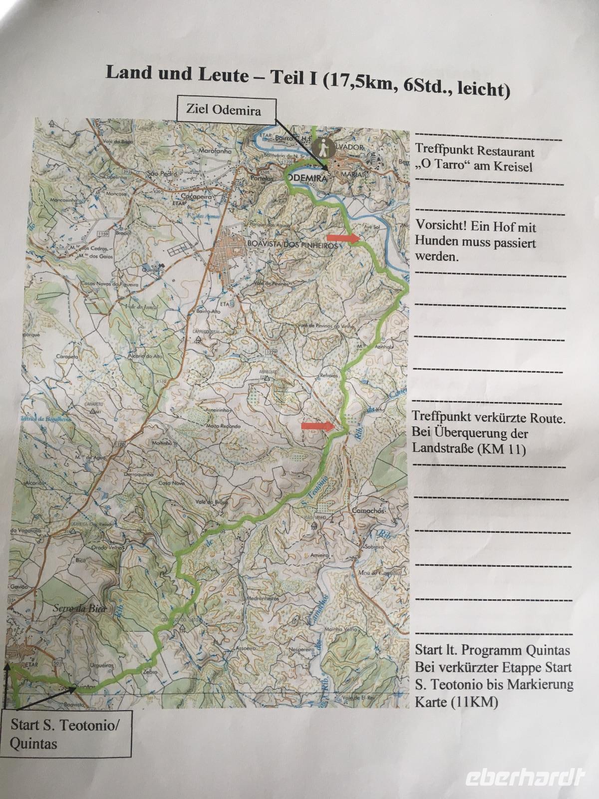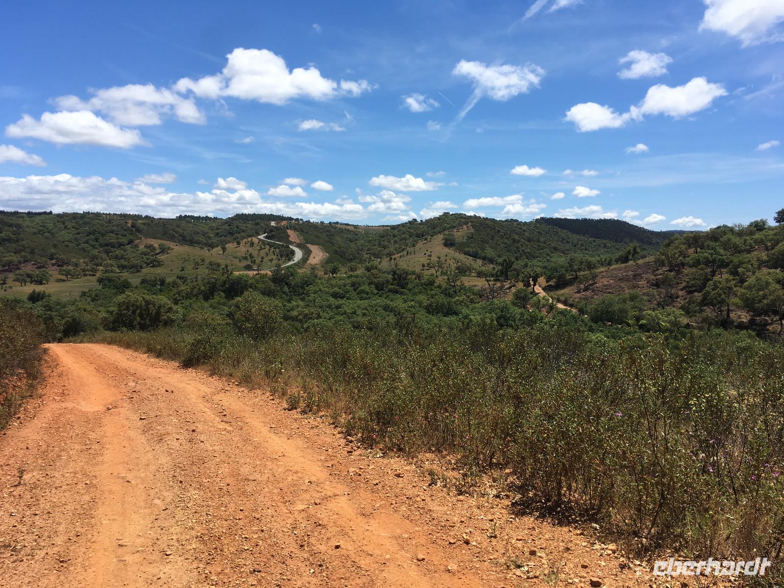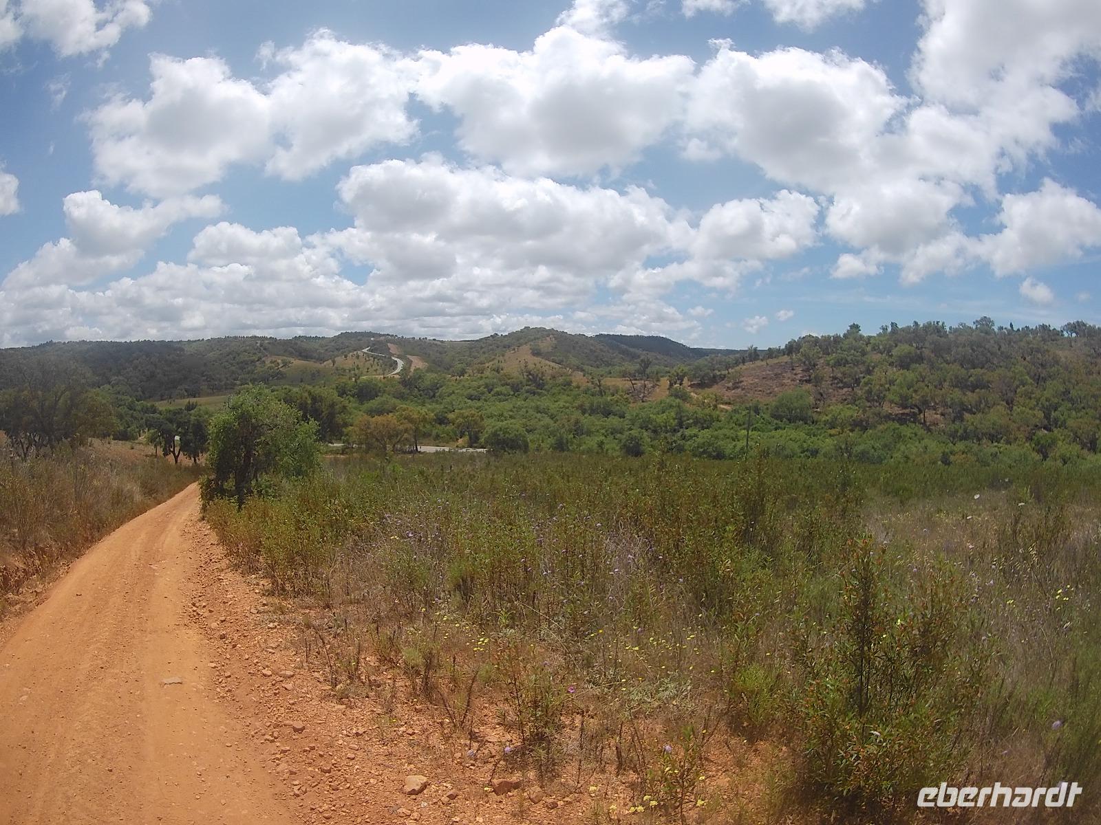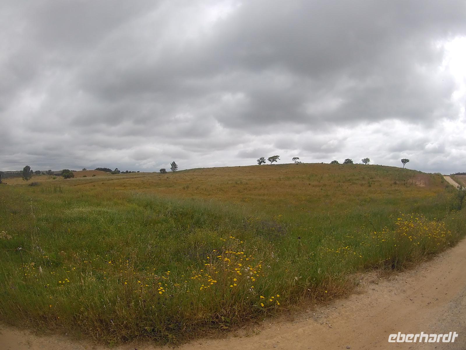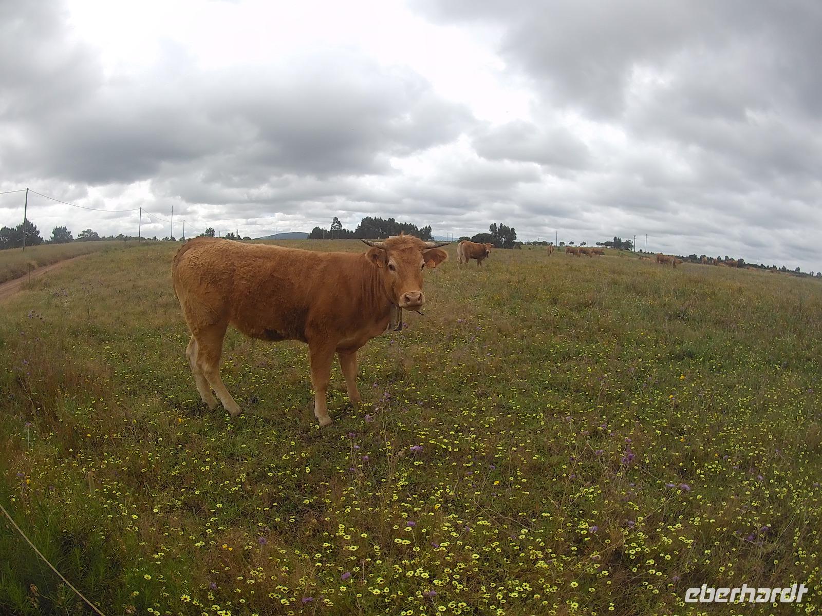 Die 15 Kilometer von gestern wurden von allen gut verkraftet und so konnten wir frisch und munter in diesen Tag starten. Holger hat uns ein tolles Picknick versprochen, welches uns antrieb. Nach einem kurzen Transfer erreichen wir Sao Teotonio, einen kleinen Ort im Inland von Alentejo. Von hier aus wanderten wir gemeinsam mit Larissa entlang von Eukalyptus-Plantagen und vielen Korkeichen. Beides wichtige Nutzpflanzen hier in Portugal. Der Eukalyptus wird zur Papierherstellung genutzt. Er wächst sehr schnell und kann daher aller acht bis zwölf Jahre abgeholzt werden. Jedoch brauch er auch viel Wasser, die Wurzeln reichen tief ins Erdreich und verdrängt daher einheimische Baumarten.