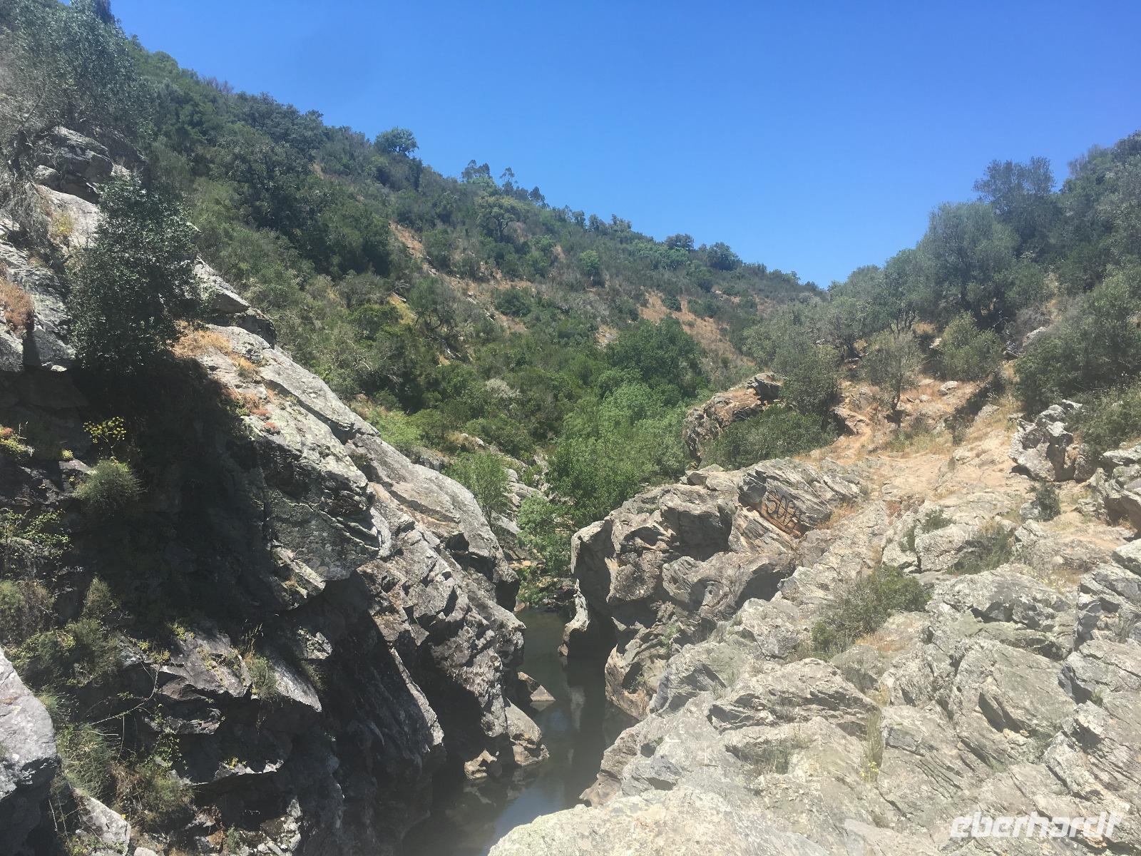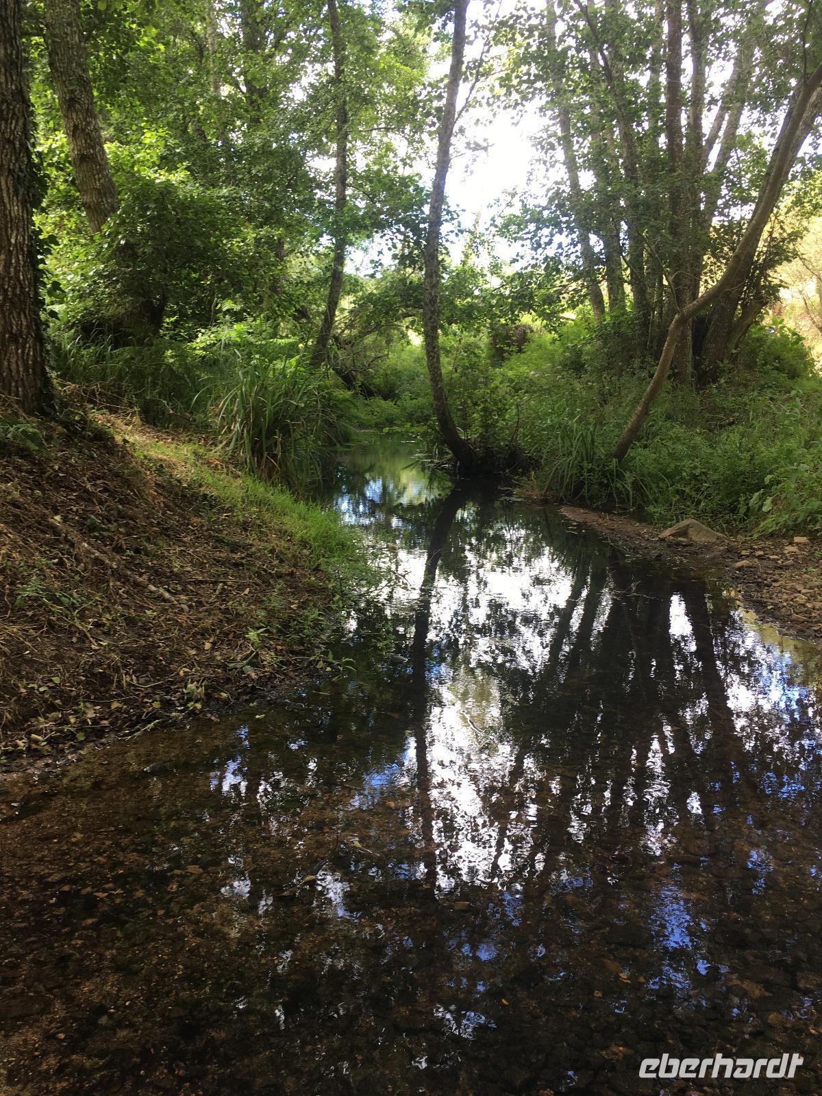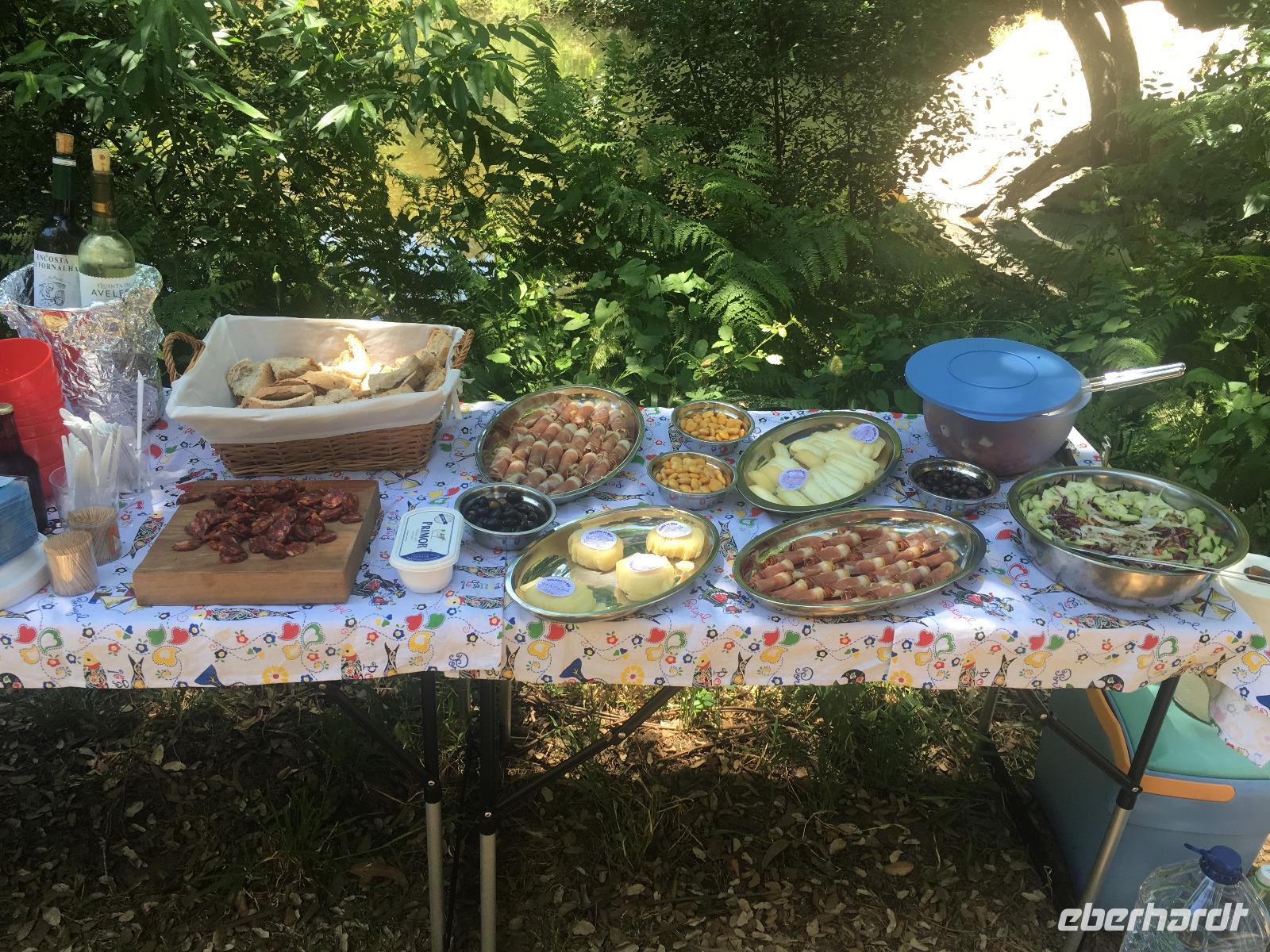 Und so starten wir wieder, nach einem liebevoll angerichteten Frühstück, ins Inland von Alentejo. Rund 12 Kilometer liegen heute vor uns. Unser Weg führt uns an einem kleinen Bach entlang, welcher im Fluss Mira mündet bis zu einem kleinen See. Hier wurde das Drama "Das Geisterhaus" mit Antonio Banderas gedreht. Holger hat hier wieder ein tolles Picknick vorbereitet mit allem was das Herz begehrt. Von hier aus müssen wir noch ein kleines Stück bis zum Auto laufen, aber wir sind jagut gestärkt.