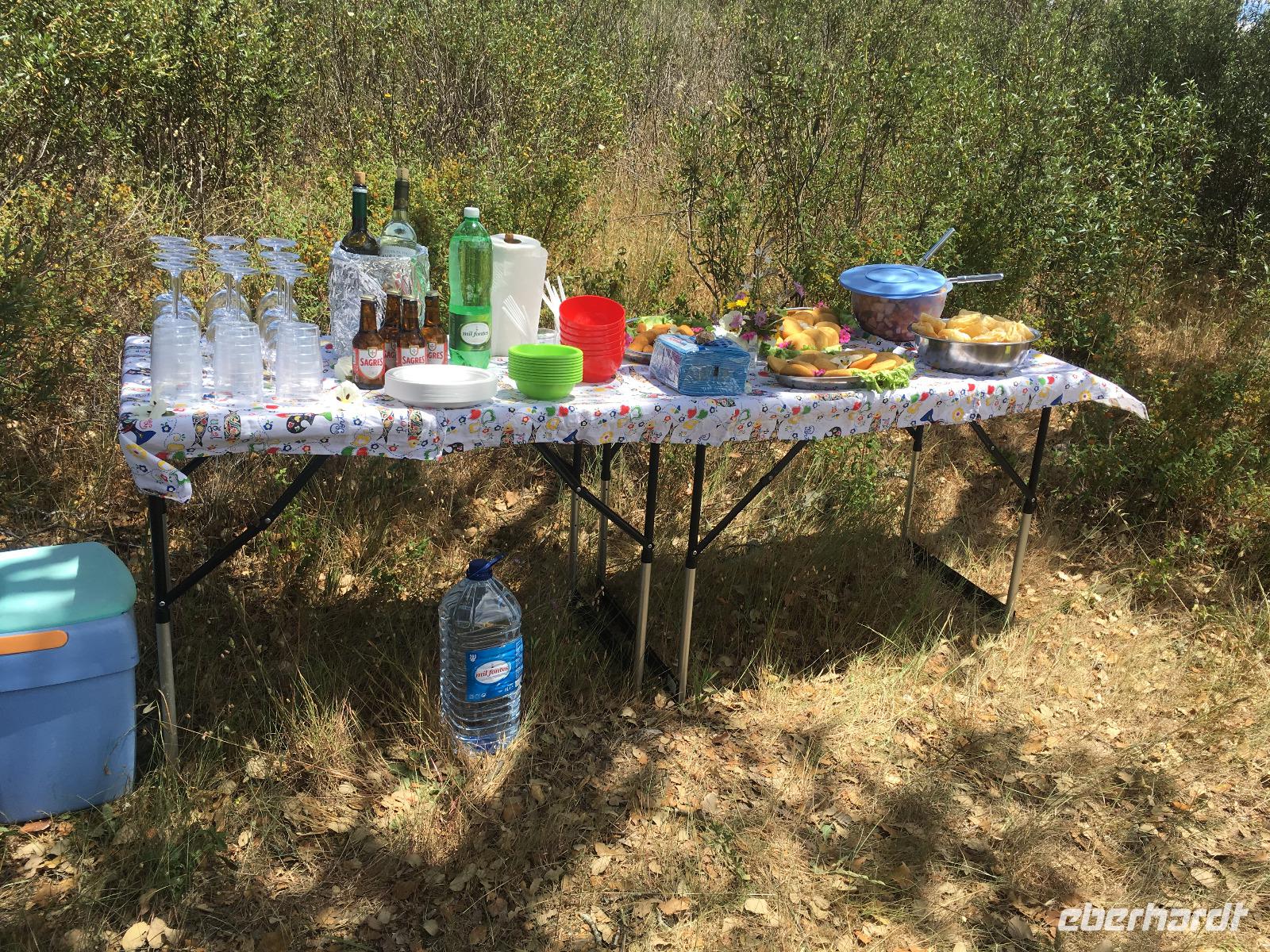 Nach unserer Wanderstrecke von elf Kilometern wartete bereits Holger mit kühlen Getränken und kleinen Leckereien auf uns. Natürlich unter einer großen schattenspendenden Korkeiche. So lässt es sich leben!