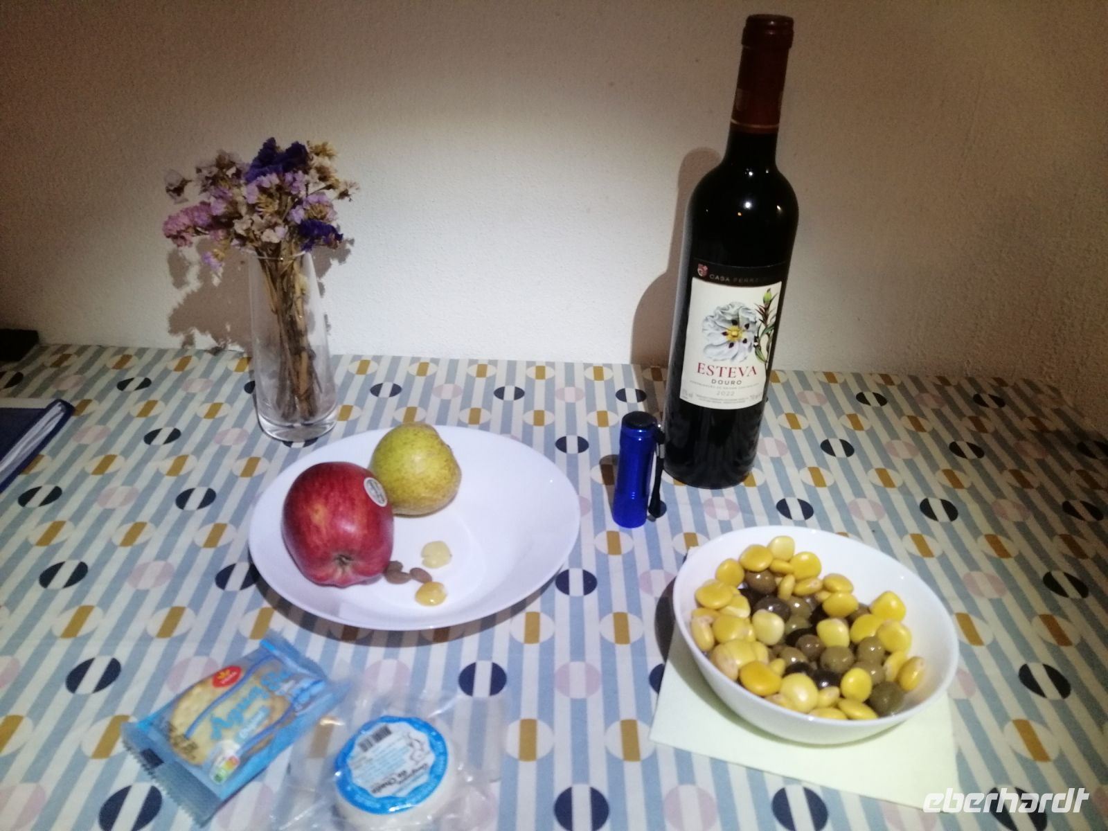 Nach dem Bezug unserer Apartments im charmanten Landhaus Monte Dom Manuel kamen wir zu einem gemeinsamen Abendessen zusammen. Unsere Gastgeberin Saudade verwöhnte uns mit selbst zubereiteten lokalen Köstlichkeiten, darunter Stockfisch in Sahnesauce und ein köstlicher Schokoladenkuchen mit Früchten. Willkommen! Bem-Vindos!