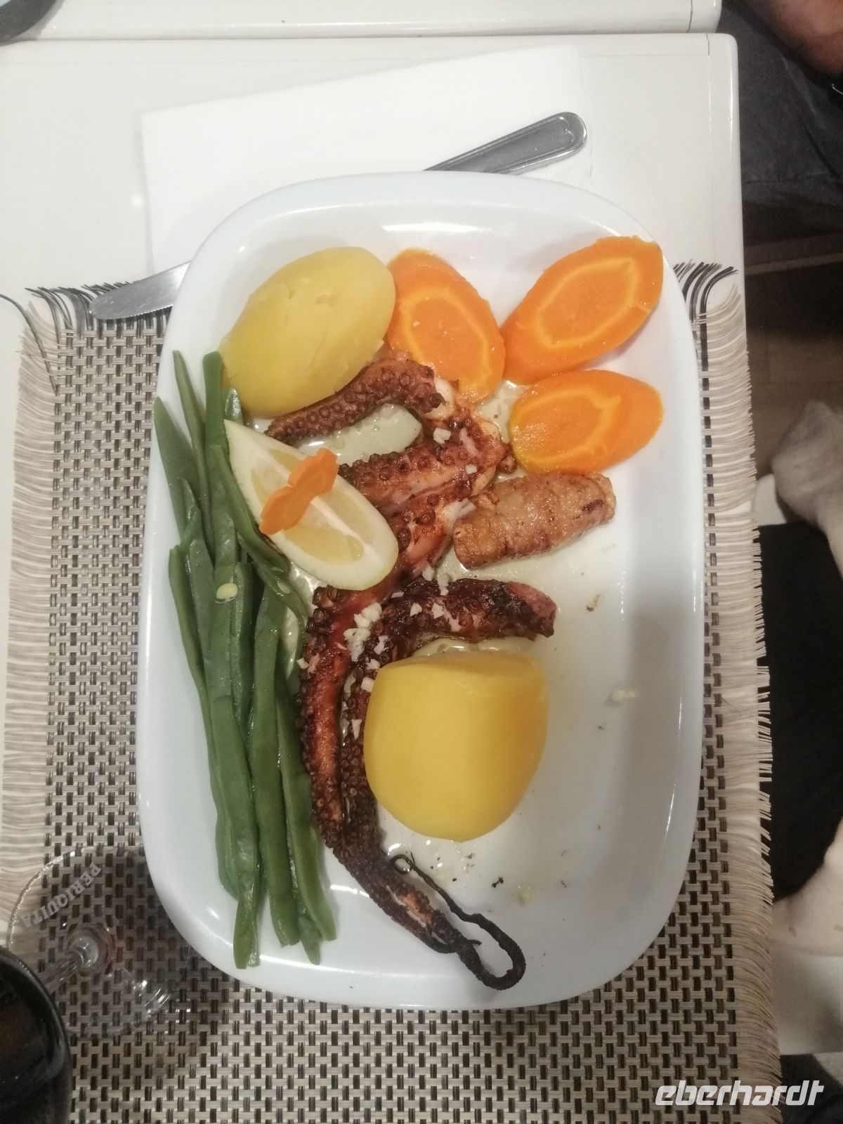 Unser Abendbrot verbrachten wir im Restaurant Azul e Mar in Zambujeira do Mar. Im Restaurant wurden alle, die sich für das Hauptgericht Bacalhau à Brás entschieden hatten – eine köstliche Kombination aus zartem Stockfisch, knusprigen Kartoffelsticks und cremigem Rührei –, mit einem echten Gaumenschmaus verwöhnt.