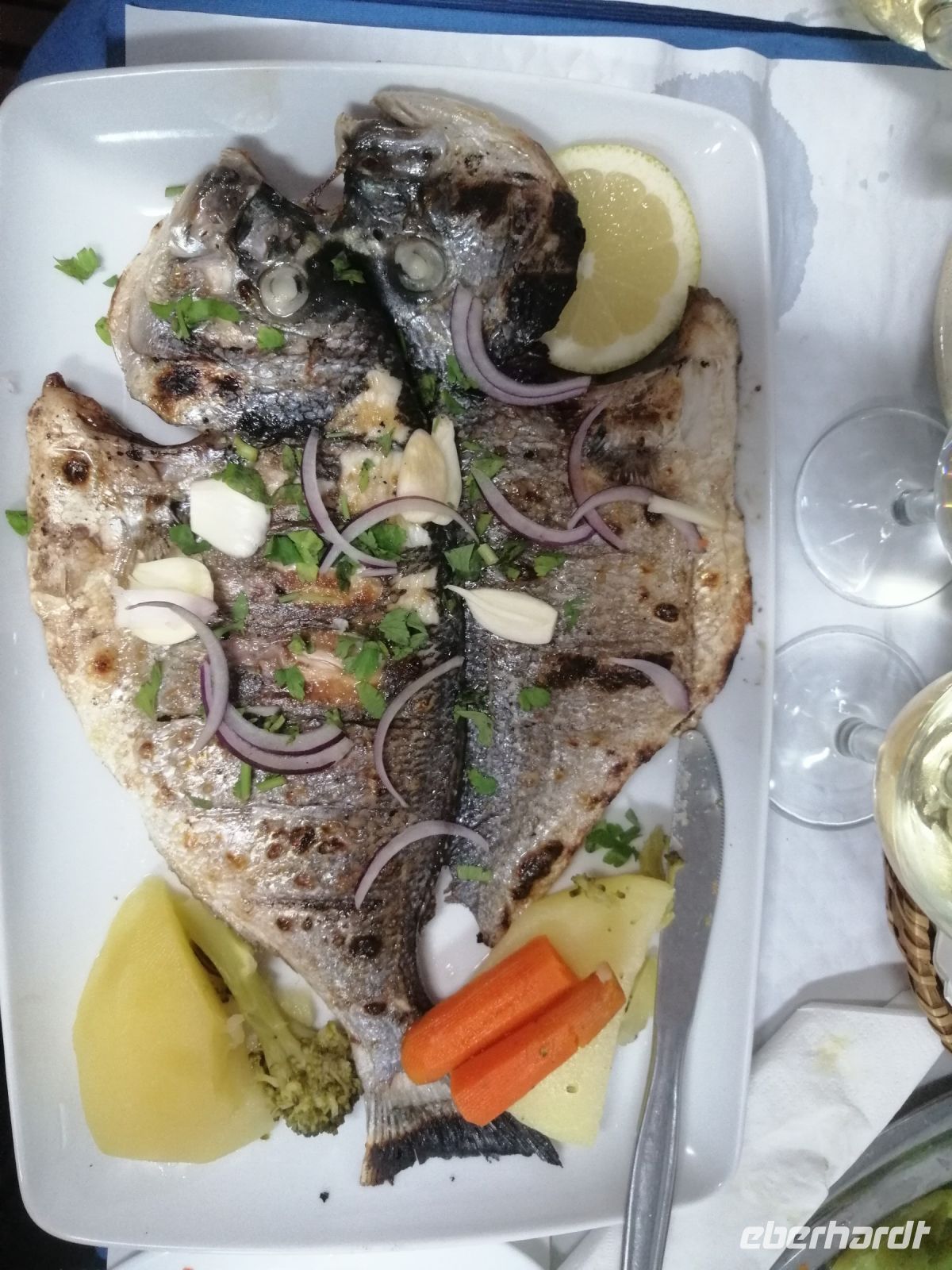Den gelungenen Tag ließen wir im Restaurant Marisqueira in Zambujeira do Mar ausklingen. Für viel Heiterkeit sorgte der Wirt, der verblüffend dem DDR-Schauspieler Gunter Schubert ähnelte. Natürlich sprachen wir ihn darauf an – und erlebten eine Menge Spaß bei dieser unerwarteten Begegnung!