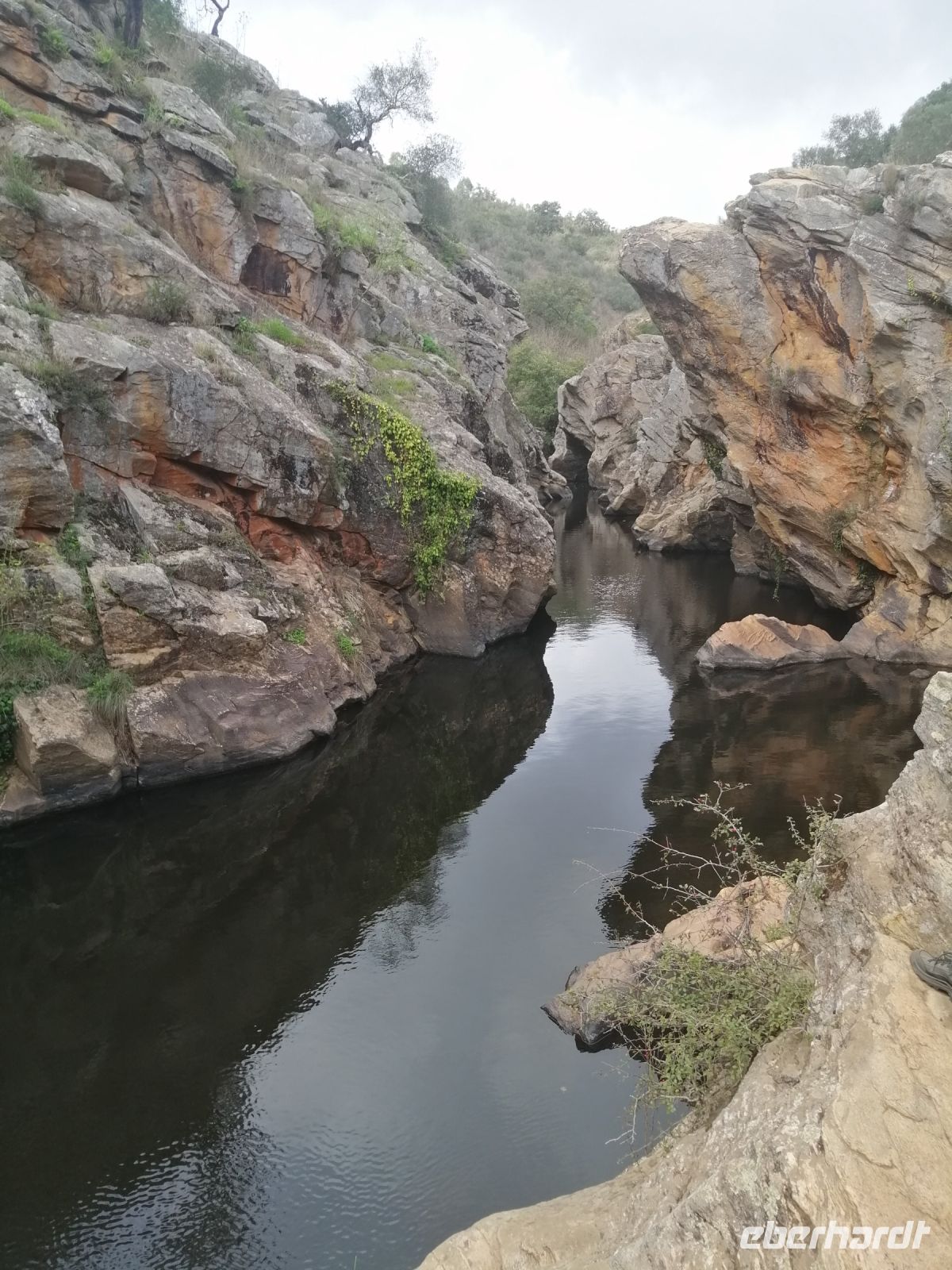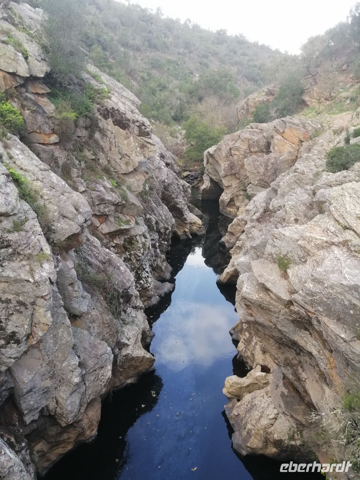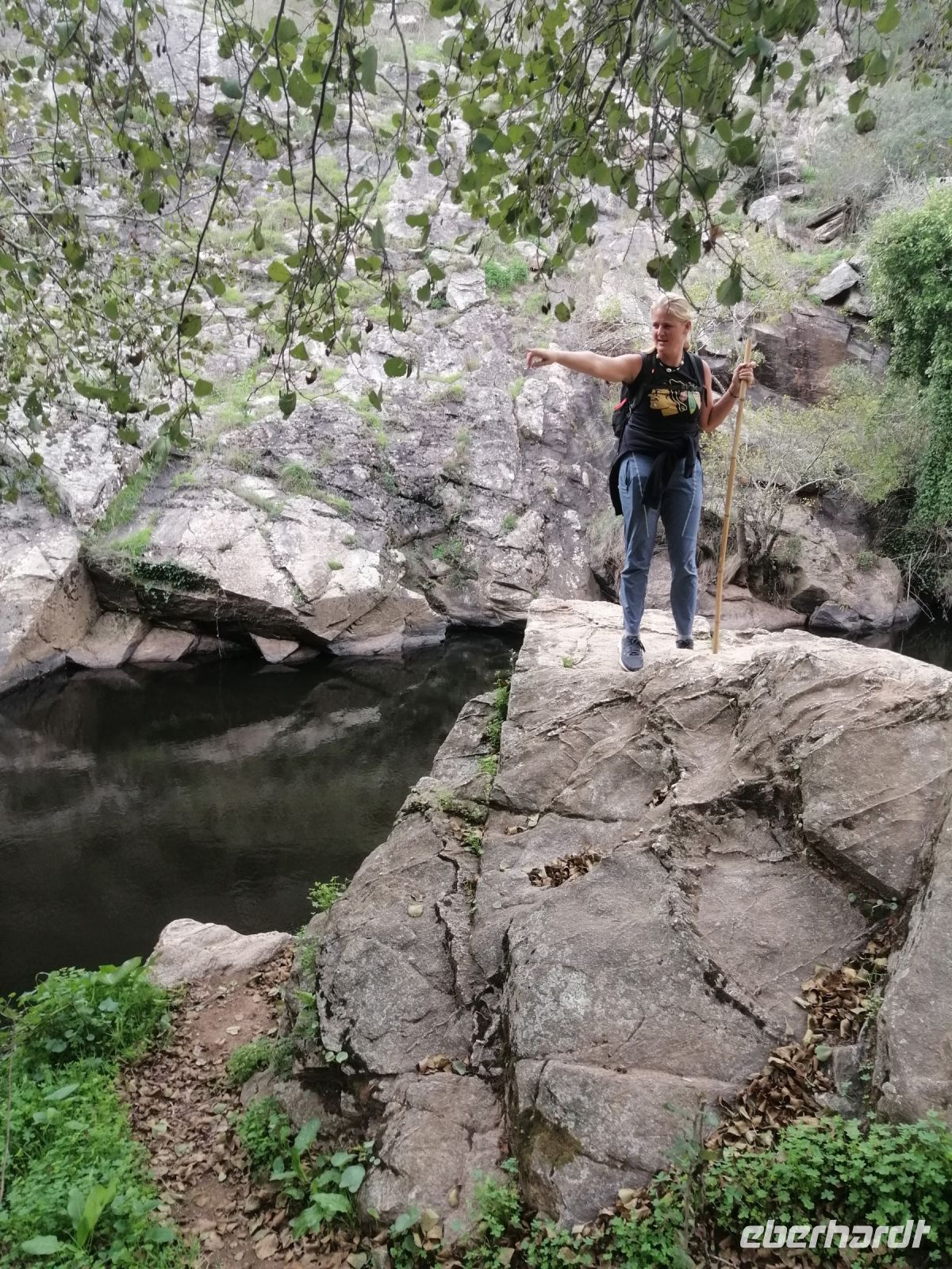 Nach einem stärkenden Frühstück brachte uns Holger nach Castelao, wo wir auf Larissa trafen. Von dort aus führte uns die Wanderung entlang eines plätschernden Baches bis zum malerischen Schildkrötensee, der versteckt in einer idyllischen Schlucht liegt. Der See, bekannt aus dem Film Das Geisterhaus mit Antonio Banderas und Winona Ryder, faszinierte nicht nur mit seiner Geschichte, sondern auch mit seinem glasklaren Wasser – perfekt für eine erfrischende Badepause. Trotz der kühlen Temperaturen wagten sich einige mutig hinein und genossen diesen besonderen Moment inmitten der Natur.