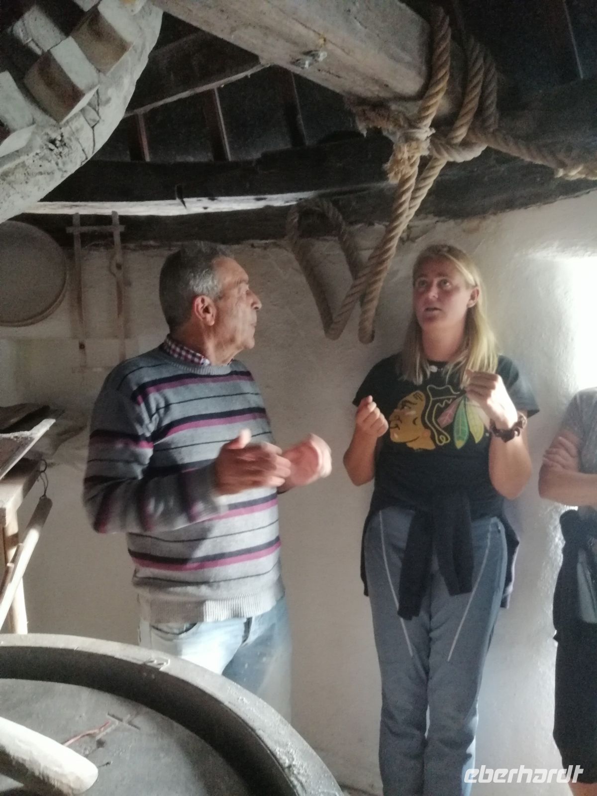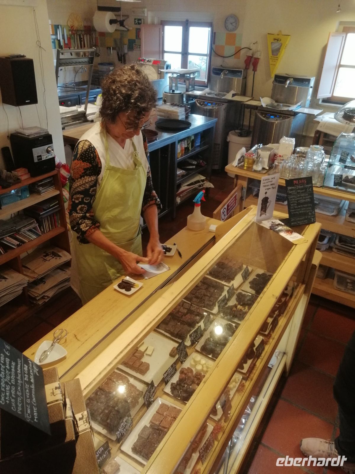 Frisch belebt ging es weiter zur Bundesstraße, wo Holger uns abholte und zu einer charmanten Windmühle brachte. Dort bot uns eine spannende Führung faszinierende Einblicke in das traditionelle Handwerk. Anschließend fuhren wir nach Odemira, einem reizvollen Städtchen am Fluss Mira, und legten spontan einen Stopp im Schokoladencafé von Beatriz ein. Dort verwöhnten uns köstliche Pralinen und aromatischer Kaffee – ein wahres Highlight für die Sinne!