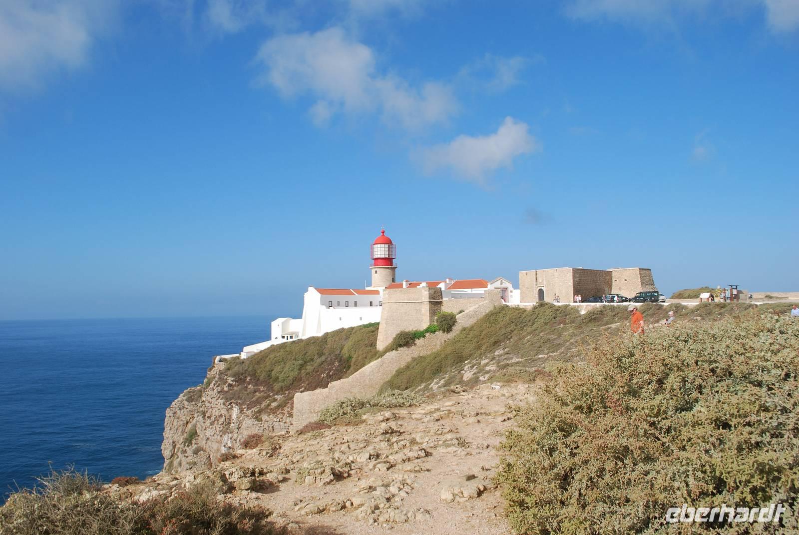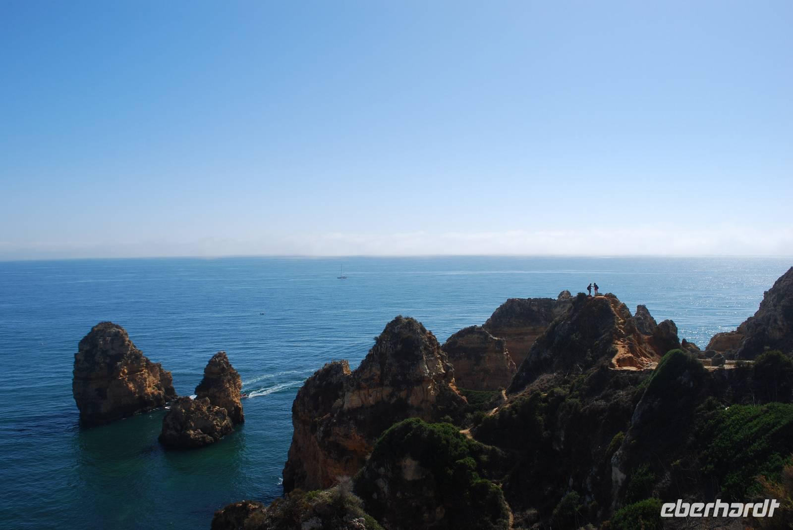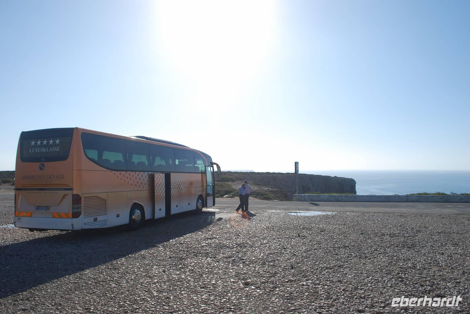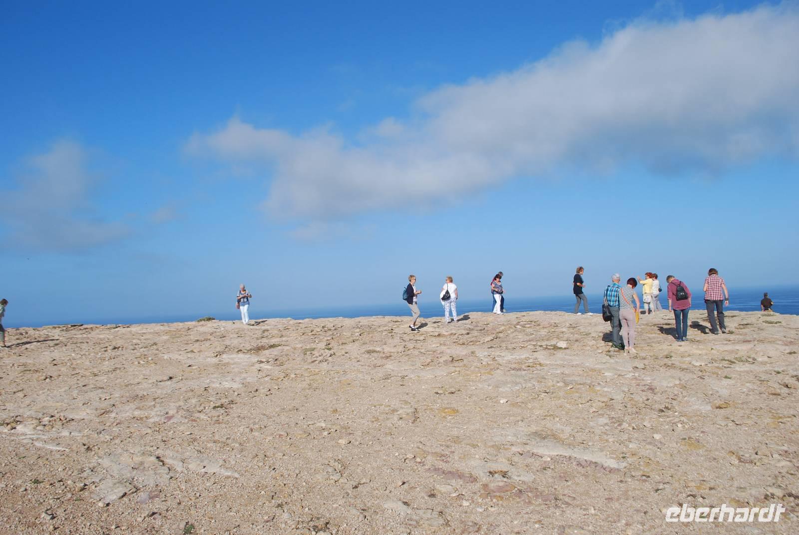 Das Ende der Welt - das Promotorium Sacrum, wie die Römer es nannten - ist der südwestlichste Punkt Europas. Das nächste Stück Erde kommt erst in ca. 5.000 Kilometer: Amerika. Sehr lange trau-ten sich die Europäer nicht westlicher. Und eins muss man sagen: das flache, karge Plateau, das schroff ins Meer stürzt vermittelt tatsächlich den Eindruck, dass die Welt hier aufhört. Heute wissen wir natürlich, dass es ganz anders ist - Christopher Columbus hat Amerika schon seit mehreren Jahrhunderten entdeckt. Die Landschaft und der Blick auf die Felsen und das Meer sind atemberaubend. Der große Leuchtturm, der ganz am Ende vom Kap zu sehen ist, dient immer noch als Orientierungspunkt für die Schifffahrt. Kleiner Tipp - schon lange nicht mehr ein Geheimnis aber trotzdem immer noch lustig - hier können Sie die letzte Bratwurst vor Amerika genießen, serviert von jungen, blonden Frauen, damit man wirklich den Eindruck hat, in Deutschland zu sein. Und natürlich gehört auch zu der Bratwurst ein Zertifikat. Man muss es ja beweisen können, dass es tatsächlich eine richtige Bratwurst war! In Sagres, einem hübschen Örtchen, besuchten wir die Festung vom Infant Henrique. Hier ließ er, vor sehr langer Zeit, eine Seefahrtsschule gründen. Auf dem Rückweg nach Lagos machten wir noch ein Abstecher zu den Felsen der Frömmigkeit - der bekanntesten Felsformation der Algarve, eine durchs Meer zerklüftete Küste mit zahlreichen Grotten und Felsen - bevor wir wieder in unserem schönen Städtchen ankamen. Nach einer wohl verdienten Mittagspause war es nun Zeit auch Lagos kennen zu lernen. Durch interessante Erklärungen von Vitor, der nun für den Rest der Reise unser örtlicher Reiseleiter war, wurde uns die Geschichte der 20.000 Seelen großen Stadt näher gebracht. Da es am Tag zuvor wegen dem Nebel leider nicht viel zu sehen gab, versuchten wir heute erneut unser Glück und fuhren am Nachmittag, allerdings nur mit einem Teil der Gruppe, zur Serra de Monchique, mit 900 Metern das höchste Gebirge der Algarve. Und das Wunder geschah - also teilweise würde ich sagen - denn es gab zwar keinen blauen Himmel und es war an der Küste ein wenig dösig aber man hatte trotzdem einen hervorragenden Blick auf die Region!