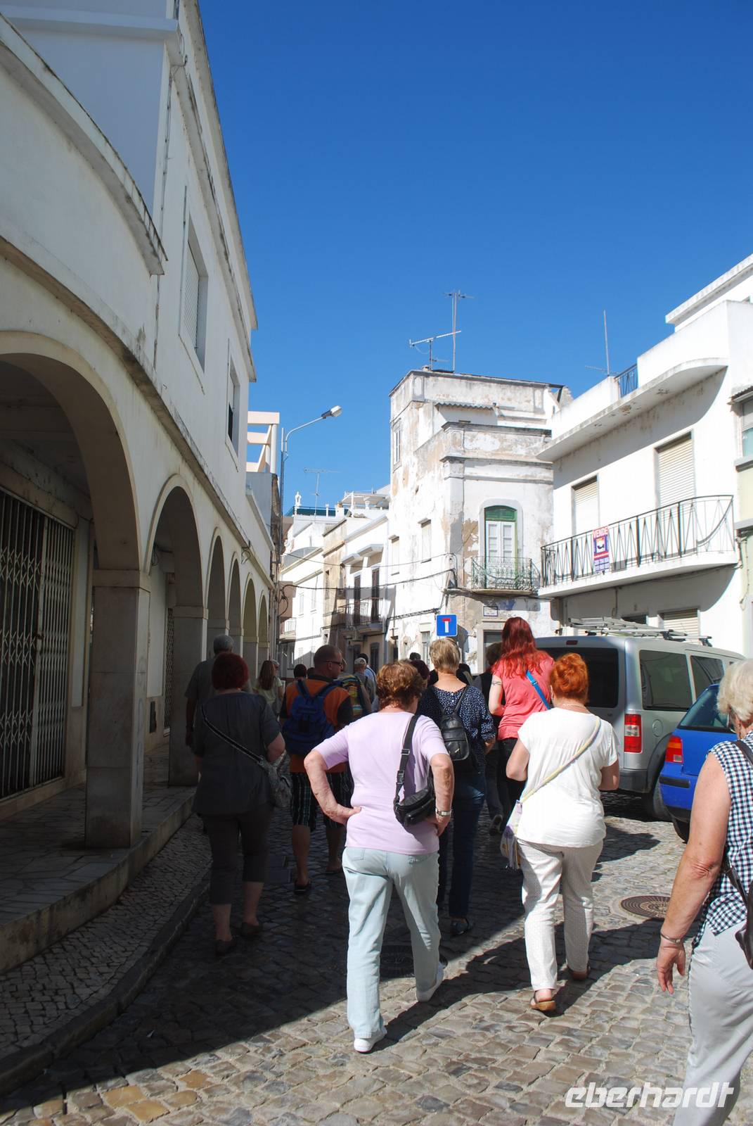 Faro, die Hauptstadt der Algarve, wartet heute darauf, von uns erkundet zu werden. Nach ca. einer Stunde Fahrt erreichen wir die Stadt und unternehmen, mit interessanten Erklärungen von Vitor, einen kleinen Stadtrundgang. Vom ursprünglichen Fischerdorf ist nicht viel zu sehen, dieses ist im Laufe der Jahre ziemlich stark gewachsen. Auf unserem Weg sehen wir die Arco da Vila, das Stadttor mit zahlreichen Storchnesten - die Algarve ist einer der Orte, an dem die Störche den Winter verbringen - die Kathedrale und das Bischofspalast. Sehr alte Gebäude gibt es in Faro nicht: es gab im 17. Jahrhundert ein starkes Erdbeben und vieles wurde zerstört. Danach fahren wir nach Olhao, einem der größten Fischerhäfen der Provinz. Ebenso wie in Faro unternehmen wir auch hier einen Stadtrundgang und beenden diesen in der Markthalle. Die Fülle der Fische ist besonders beeindruckend: alle sind frisch, noch richtig als Tier zu erkennen. Olhao ist auch der perfekte Ort für den, der bei seiner Mittagspause Fisch essen will, denn die Restaurants entlang des Meeres bieten hier besonders gute Angebote. Am Nachmittag fahren wir in´s Landesinnere durch Korkeichenwälder nach Sombrage. Sombrage ist eines der Zentren der Korkindustrie, eine sehr wichtige Industrie für Portugal, da das Land der größte Hersteller weltweit ist. Bei einer Führung von Sophia, die uns leidenschaftlich über die Verarbeitung von Kork erzählt, wird uns dieses besondere Produkt und seine Verwendung näher gebracht. Es ist erstaunlich, was man alles damit machen kann! Nicht nur Weinkorken, sondern auch Handtaschen, Schmuck, Regenschirme und Vieles mehr...