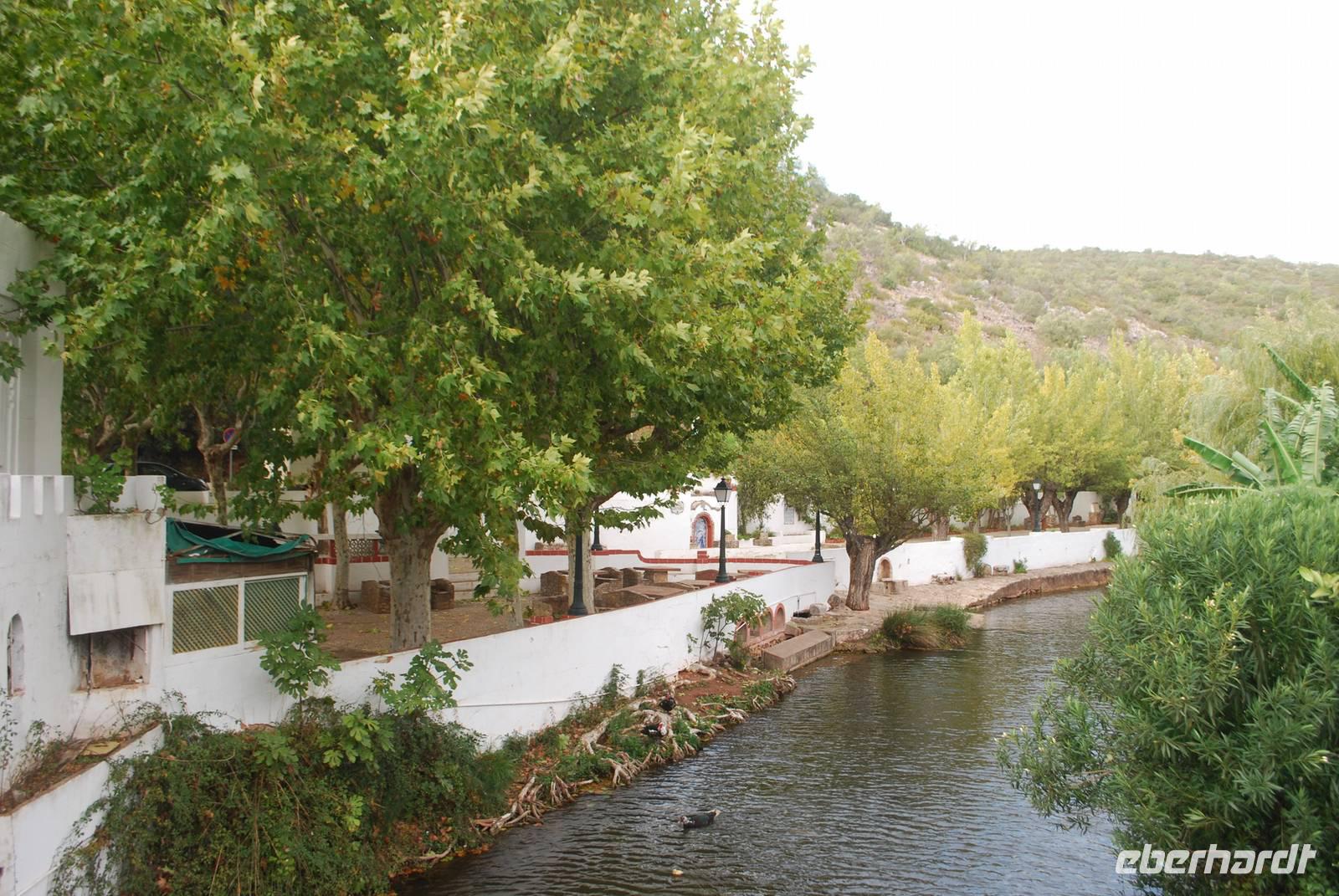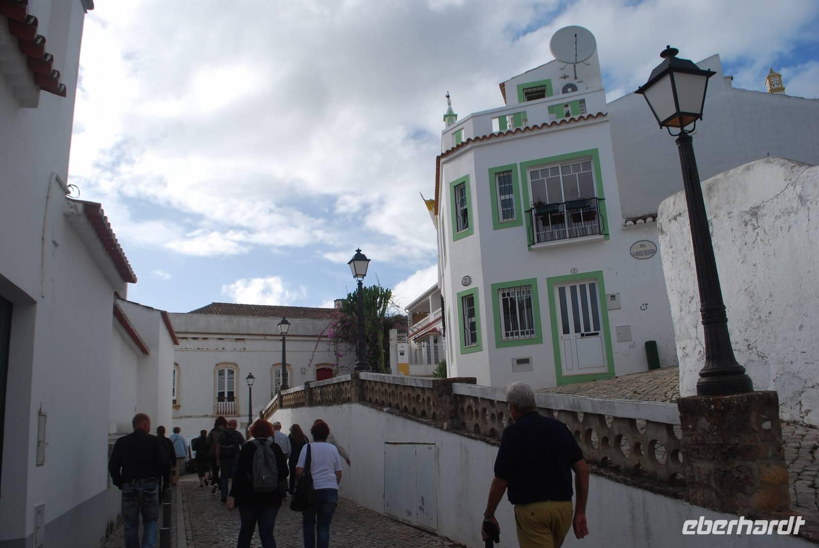Unser Tag begann um 9 Uhr mit der Abholung durch Manuela vom Hotel. An diesem Abend kommt auch Vitor kommt im Hotel an. Zuerst fuhren wir mit ihm in das hübsche Örtchen Silves, zur Markt-halle. Die Märkte sind in Portugal noch besonders wichtig, denn hier geht die Hausfrau am liebsten einkaufen: Lokale Produkte und frische Fische werden hier in Fülle angeboten, und zu günstigeren Preisen als im Supermarkt. Wie alle Südländer legen die Portugiesen viel Wert auf das Essen und es wird noch sehr oft zur Hause selbst gekocht. Von der Markthalle aus führen kleine Gassen hoch zum ehemaligen Pranger und dann weiter zur Burg, einem mächtigen Bau aus rotem Stein. Von der Burgmauer aus ist auch die Sicht auf die Umgebung richtig herrlich! In den Gassen und in den Cafés gibt es noch eine ganz tolle Besonderheit: die gemalten Kacheln. Diese sind auch typisch für die Algarve und wurden von den Maurern dort eingeführt. Wenn man bedenkt, dass man für eine einzige Kachel über neun Monate braucht, von der Herstellung, über das Trocknen, Bemalen, Brennen usw... .Kurz vor Mittag verließen wir Silves und fuhren zu der Serra die Monchique, mit ca. 900 Meter ein sehr hoher Punkt der Algarve. Leider konnten wir aufgrund des Nebels die Sicht nicht genießen. In der Nähe hatten wir auch eine Medronho-Verkostung, auch Erdbeerlikör genannt, obwohl es mit Erdbeeren eigentlich nichts zu tun hat. Bei 47% Alkoholgehalt muss man da schon einen starken Magen haben! Für Erkältungen ist es aber ein Wunderheilmittel- zum Beispiel mit ein bisschen Honig und Zitrone. Zum Abschluss haben wir noch einen kleinen Spaziergang in Caldas de Monchique unternommen - beliebter Luft- und Wasserkurort.