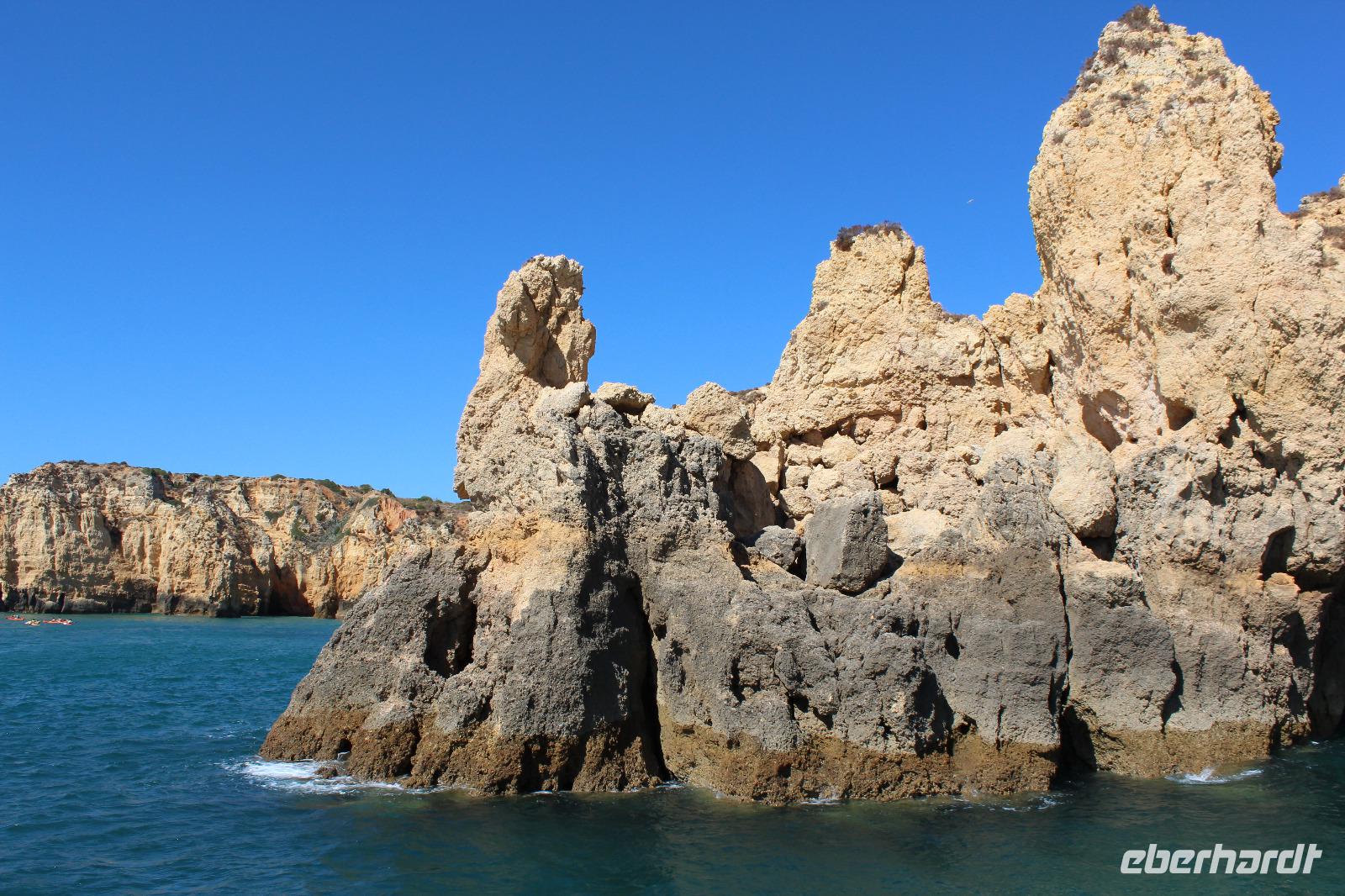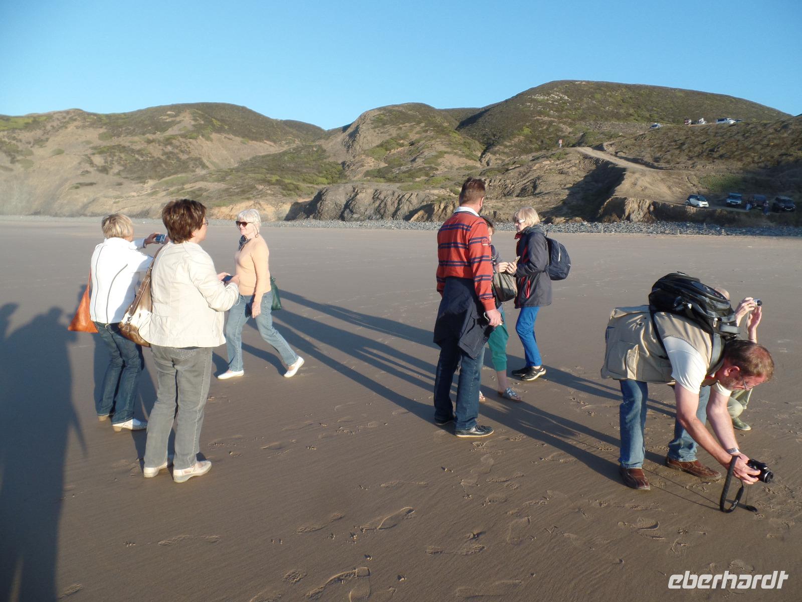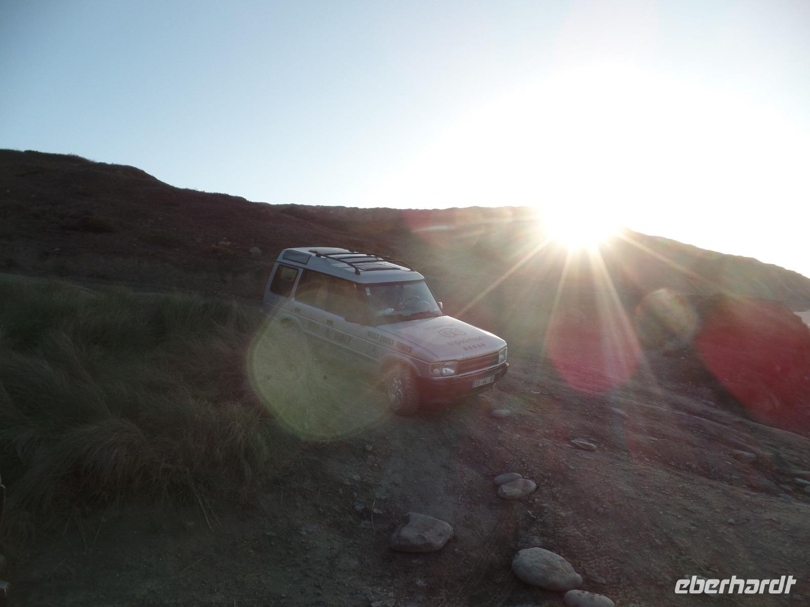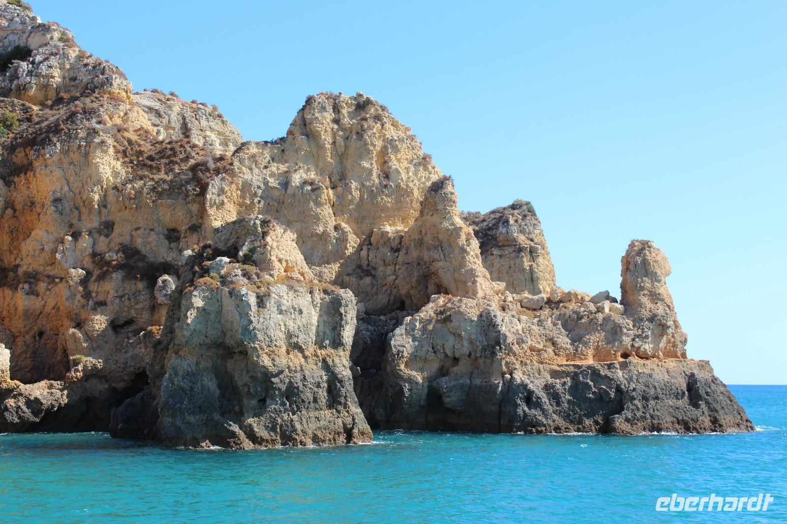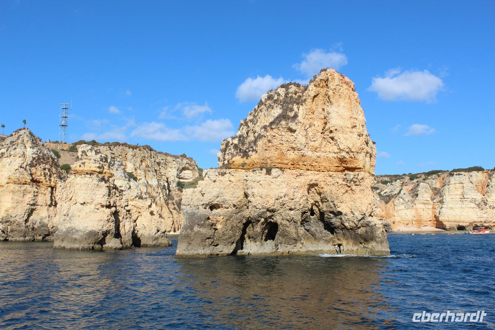 Nachdem wir in den sonnigen Tag mit einem guten Frühstück gestartet sind, spazierten wir zum Hafen von Lagos. Die Bootsleute empfingen uns mit einem lockeren Spruch und schon befanden wir uns auf dem Weg Richtung Meer. Während der Kanalausfahrt zog an uns das Ufer des historischen Lagos mit der Festungsanlage vorbei und wir beschlossen, auf jeden Fall die Markthalle am nächsten Tag besuchen zu wollen. Das Wetter war perfekt für diesen Ausflug. Die sanften Wellen des Meeres, Sonne satt und gute Musik luden uns ein die Seele baumeln zu lassen, während wir an der wunderschönen zerklüfteten Küste der Algarve vorbeifuhren. Die vielen Grotten und bizarren Buchten versetzten uns immer wieder in Staunen. Zur Mittagszeit legten wir den Anker, auch um den kühlen Atlantik zu testen ... wer wollte. Eine über Bord gegangene Mütze wurde auch noch gerettet und dann machte unser Katamaran kehrt und fuhr wieder langsam zurück zum Ausgangspunkt Lagos. Da wo es uns auf Grund der Bootsgröße gestattet war, fuhren wir an die Klippen heran, damit wir sie von Nahem bestaunen konnten. Wieder erholt in Lagos angekommen nutzten einige die Zeit bis zu unserem nächsten Programmpunkt des Tages, um am Hafen Kaffee zu trinken oder bummeln zu gehen. Zwei Stunden später warteten vier Jeeps vor dem Hotel auf uns. Die sahen recht abenteuerlich aus, das Einsteigen war noch abenteuerlicher. ? Die rasante Jeeptour führte uns wieder zum Cabo de Sao Vicente, welches im Licht der untergehenden Sonne ganz anders als am Vortag aussah. Ein weiterer Stopp war an einem einsamen Strand - die tosenden Wellen des Atlantiks mischten sich mit der Gischt, die Sonne tauchte die ganze Gegend in wunderschöne warme Orange- und Gelbtöne - einfach traumhaft. Der Höhepunkt der Tour war die Beobachtung des Sonnenunterganges an einer hohen Klippe, wo man eine atemberaubende Sicht auf die umliegenden Küstenabschnitte hatte. Wir genossen das Naturschauspiel bei Wein und Snack und ein Honigmedronho durfte auch verkostet werden. Der Tag konnte nicht besser ausklingen. Oder doch? Wir vergnügten uns am Abend an der Hotelbar und einige tanzten. Denn Elvis was in the house!