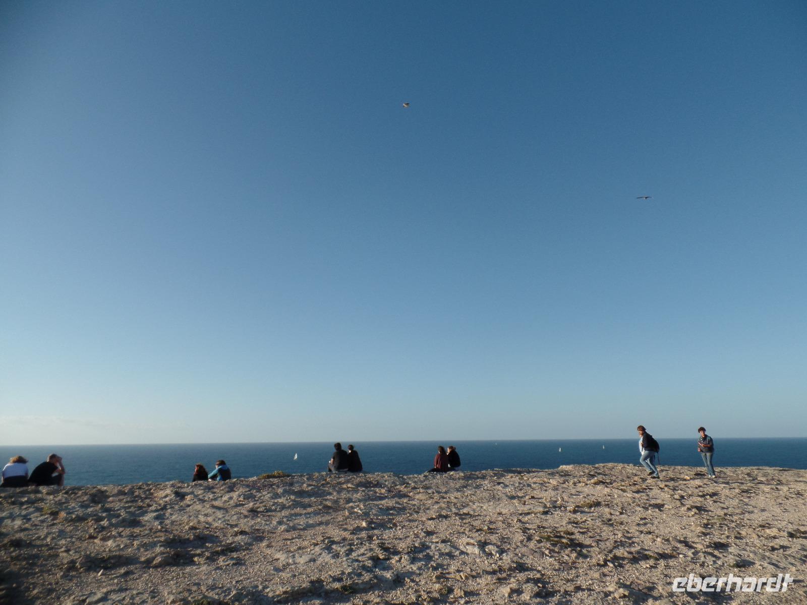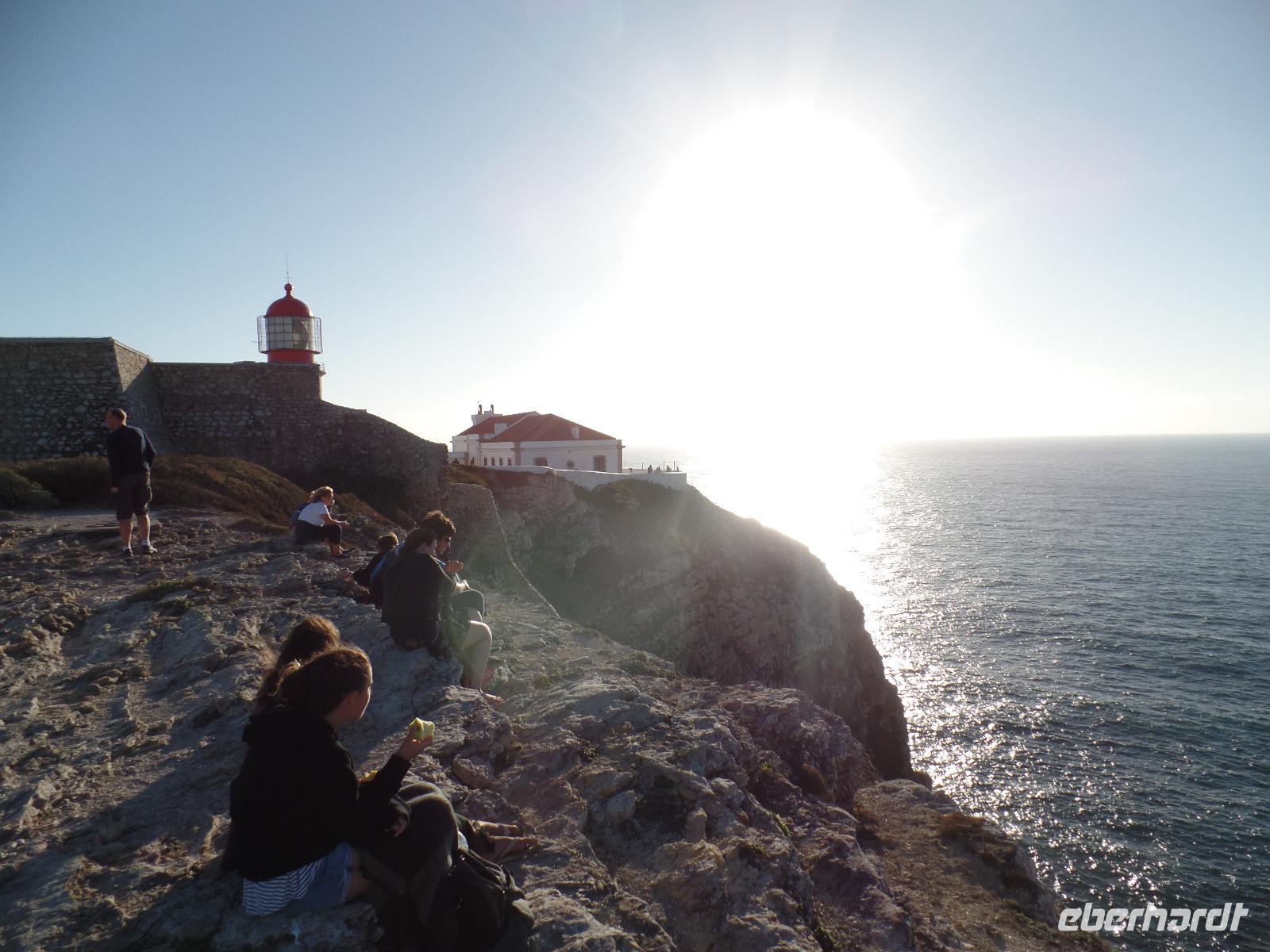 Nach einem leckeren Frühstück trafen wir uns alle mit Louis, der uns heute an die Westküste begleiten sollte. Unser erster Halt war am berühmten Leuchtturm des südwestlichsten Punktes von Europa - dem Cabo de Sao Vicente. Er gilt bei den Portugiesern als magischer Ort am Ende der Welt, an dem die Götter wohnen und die Sonne im Meer versinkt. Wir entdeckten den Leuchtturm und das umliegende Gelände des Kaps auf eigene Faust, schossen viele Fotos, genossen die sagenhafte Aussicht auf das endlose Meer und entdeckten sogar einen Fischer, der an den Klippen zu hängen schien. Und was auf keinen Fall fehlen durfte war eine Kostprobe der berühmten „Letzten Bratwurst vor Amerika". Unser nächster Besichtigungsstopp war die Festungsanlage Fortaleza de Sagres. Louis erklärte uns die (wahrscheinliche) Bedeutung des riesigen Steinkreises innerhalb des Forts und sehr viel Wissenswertes über die einstige Seefahrerschule von Heinrich dem Seefahrer und zur Seefahrergeschichte. Wir spazierten auf den Mauern der Festungsanlage und bewunderten die ebenfalls grandiose Aussicht. Von hier aus konnte man auch das Kap des Sao Vicente Vicente sehen. Auf dem Weg zurück nach Lagos hielten wir für einen Stopp in Sagres um die Aussicht auf den kleinen Fischereihafen zu bewundern. In Lagos angekommen spazierten wir zum Markt der Altstadt und konnten den Rest des Tages individuell erkunden. Zum Abendessen trafen wir uns wieder alle zusammen und schmiedeten anschließend Pläne für die nächsten beiden Tage.
