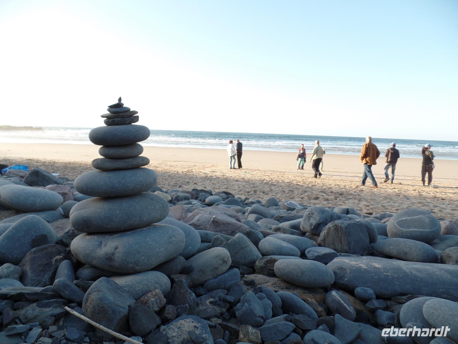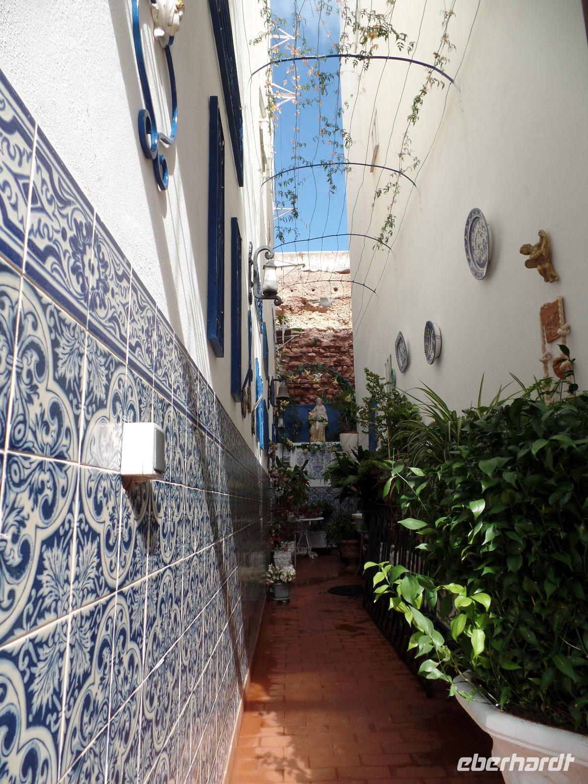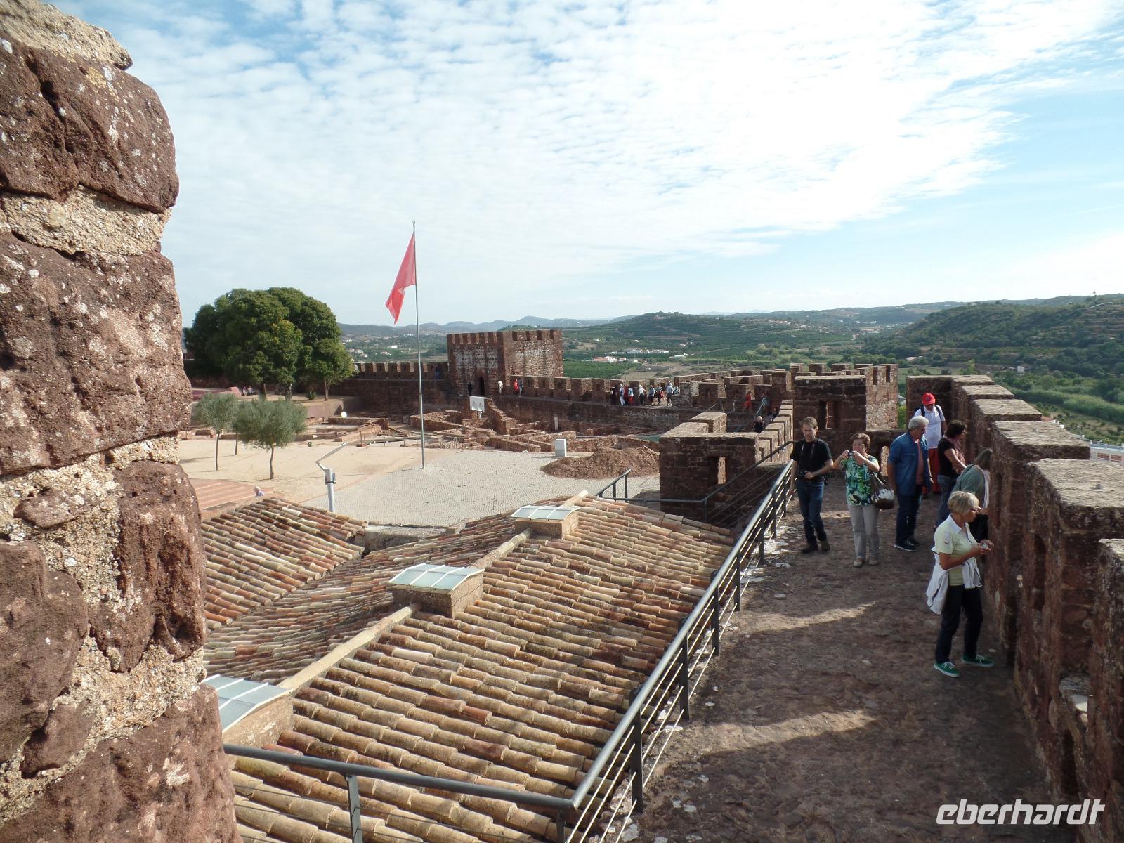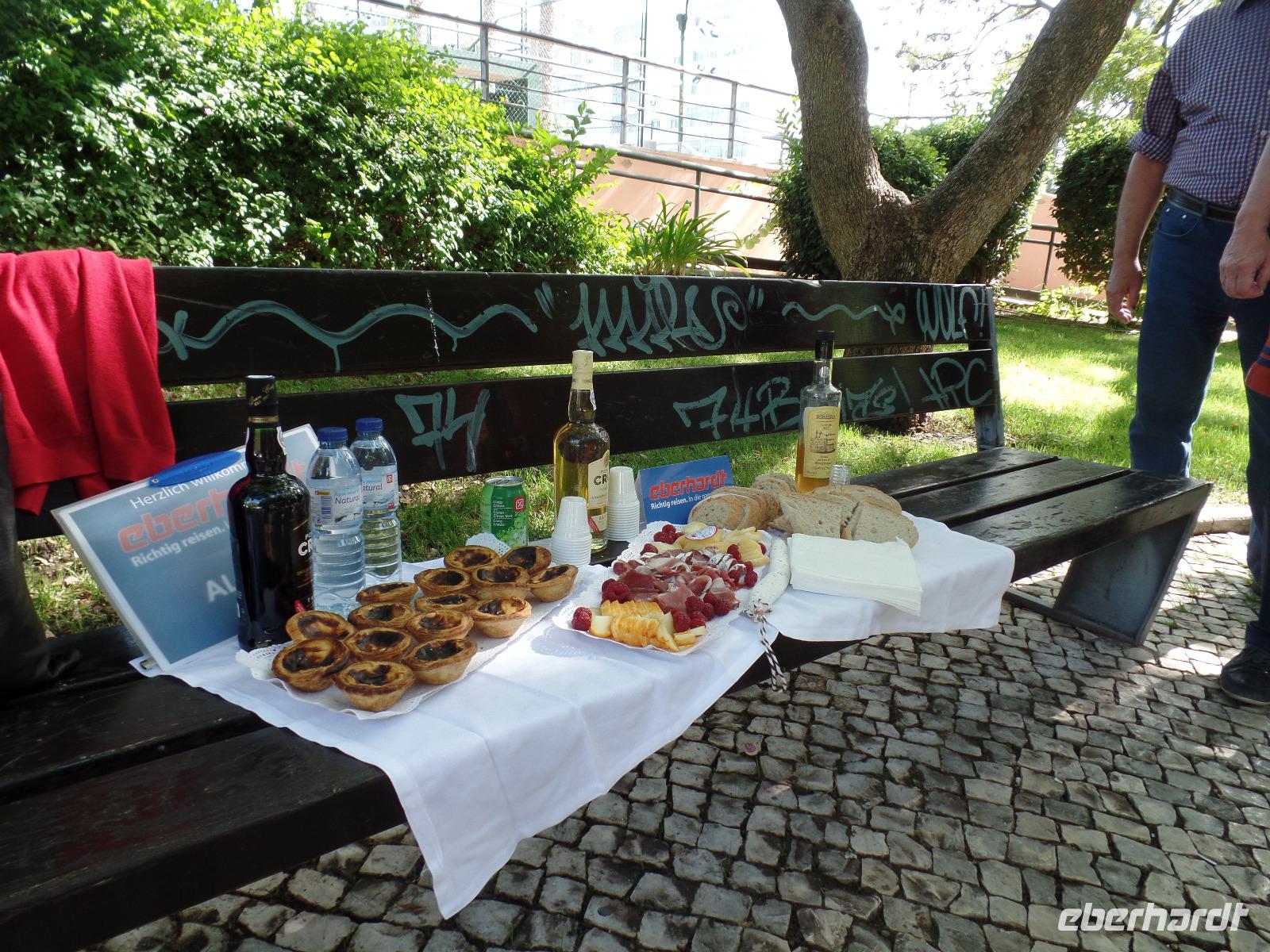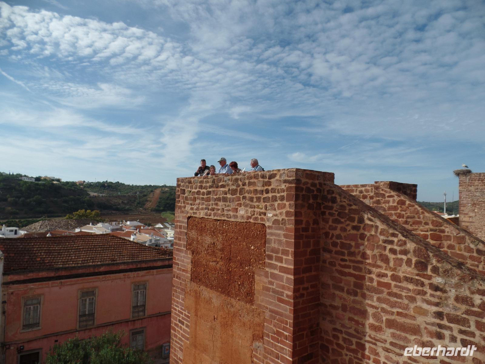 Am Morgen trafen wir wieder unseren örtlichen Reiseleiter Louis. Wir fuhren Richtung Monchique-Gebirge, wo unser erster Stopp in Silves war. Den Mittelpunkt der kleinen Stadt bildete die maurische Burg, die wir nach einem Abstecher im archäologischen Museum auch besichtigten. Von den hohen Sandsteintürmen hatte man eine herrliche Sicht auf die umliegenden Landschaften und konnte auch so manchen Portugieser beim Wäsche aufhängen beobachten. Wir verließen dieses kleine beschauliche Städtchen und fuhren in die Serra de Monchique. Dort angekommen schlenderten wir mit Louis durch die Straßen bis zu einem kleinen Markt, umsäumt von großen alten Bäumen. Ab hier konnte jeder entscheiden, ob er sich mit auf eine kleine Wanderung zu Klosterruinen machen wollte oder einfach die Stille und Gemütlickeit des Ortes genießen wollte. Der Aufstieg zu den Ruinen war sehr beschwehrlich, aber die Rundsicht und die alten blauen Fliesen in dem alten Kloster entschädigten die Anstrengungen. Das ehemalige Kloster war bewohnt und der Innenhof wurde als Hühnerstall genutzt. Interessante Wohnweise, dachten wir uns. Auf dem Rückweg in den Ort liefen wir durch uralte kleine Gassen mit Kopfsteinpflaster, besuchten die örtliche Kirche und anschließend genossen wir unsere Pause bei Leckereien und einem typischen Pincado (Espresso mit Milch) als Abschluss. Von dem kleinen Ort ging es nun hinauf auf den höchsten Berg der Algarve, auf den Berg Foia. Leider war es etwas dunstig, aber eine Medronho- und Portweinverkostung entschädigte die wenige Weitsicht. Die Ruhe und Abgeschiedenheit der Heilquellen von Monchique waren eine wirklich schöne Oase in der wir es genossen durch zu spazieren. Den Abend verbrachten wir wieder in geselliger Runde.