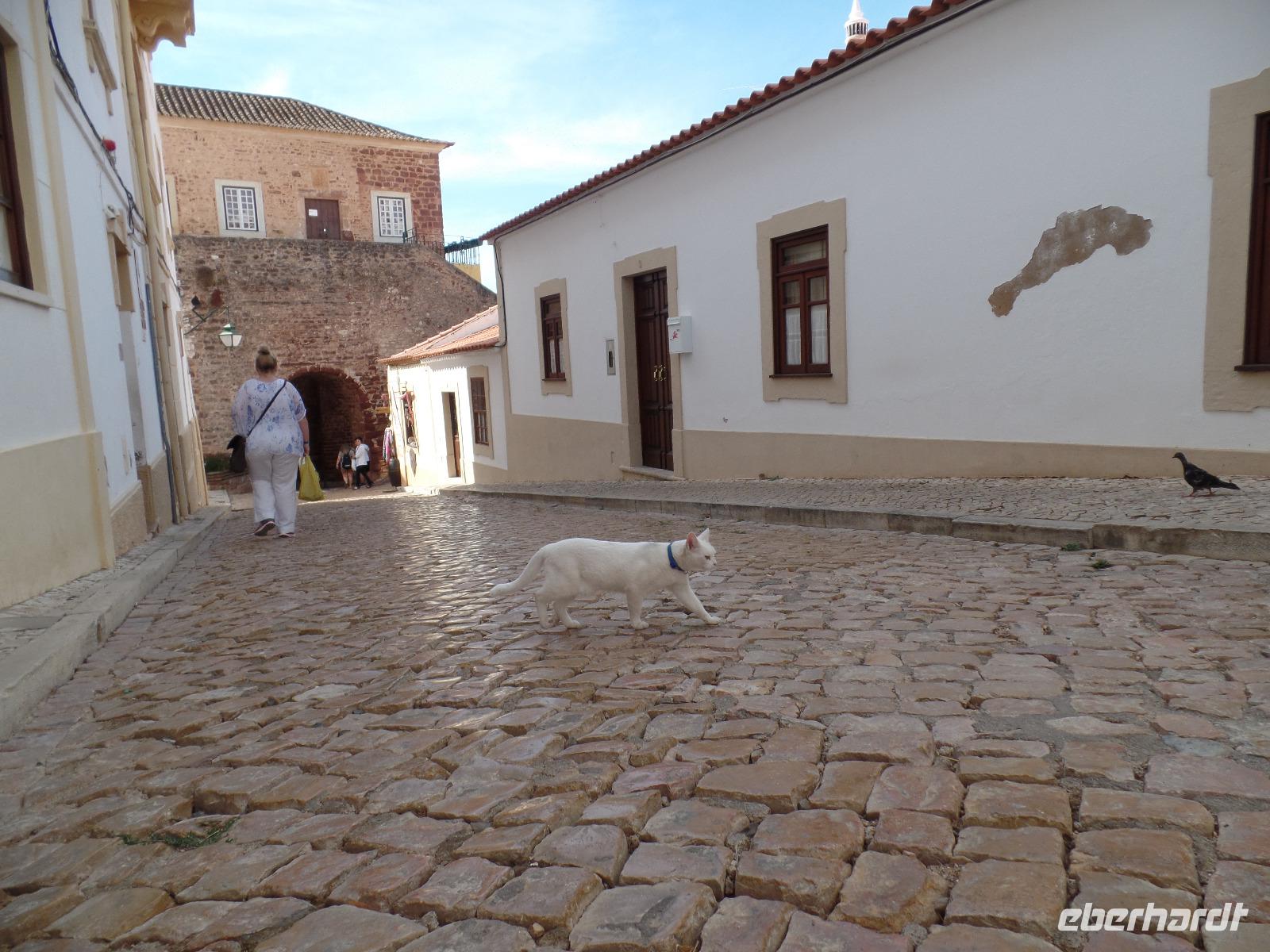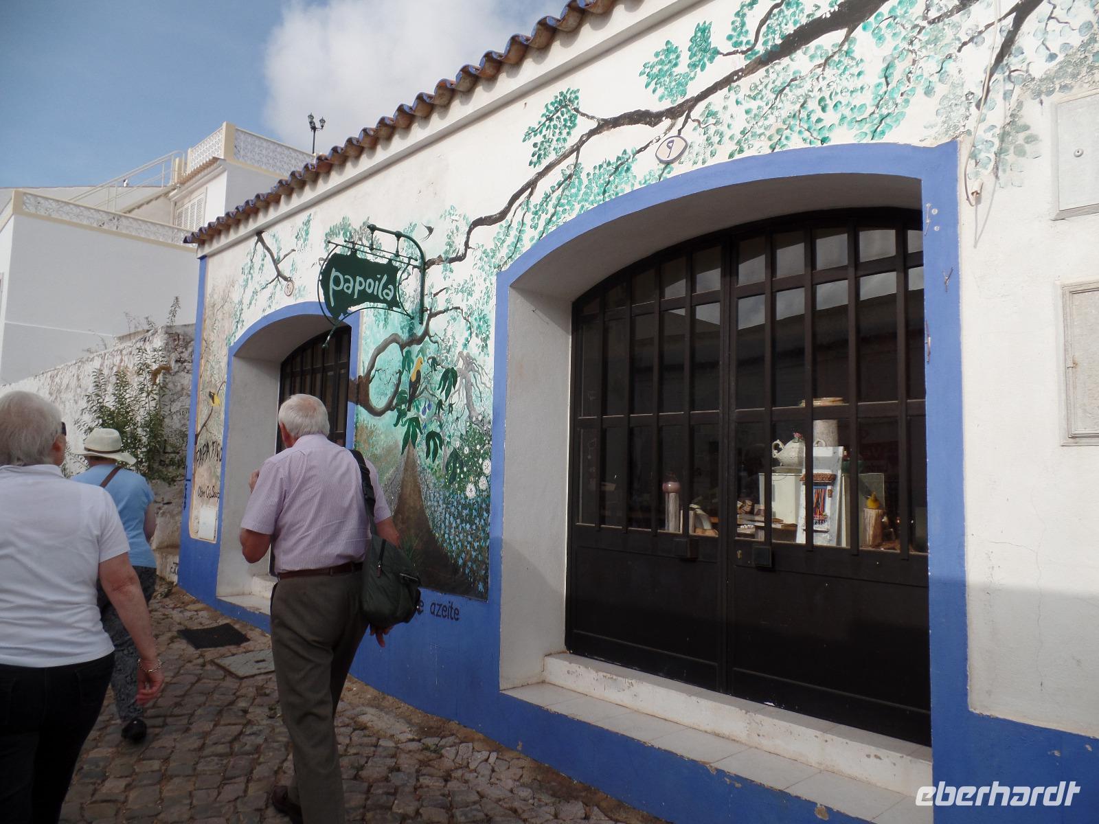 Die heutige Tagestour sollte uns das Hinterland der Algarve näher bringen. Wir fuhren Richtung Faro und bogen dann Richtung Alte ab. Dort angekommen spazierten wir entlang eines alten Kanals, immer in Begleitung einer alten Hundedame. Alte liegt in einem fruchtbaren Gebiet der Algarve und gilt als das typischste Dorf der Algarve. Louis führte uns ins Zentrum, erklärte viel über Geschichte, die alte Quelle und die typischen blauen Kacheln. Vorbei an der Kirche Igreja Matriz de Alte, die auch von Einigen aus der Reisegruppe besucht wurde, schlenderten wir durch das Dorf zum Treffpunkt. Der nächste idyllische Ort war Salir. Weiße kleine Häuschen, bunt blühende Bougainvilleas, welche die Wege säumten und ein kleines archäologisches Museum mit maurischen Ruinen standen auf dem Besichtigungsprogramm. Wir pausierten in dem verträumten Ort und genossen die Ruhe. In Loulé angekommen weckte als erstes die Markthalle unser Interesse. Leider waren die Stände im Begriff zu schließen, dennoch konnte man von der Vielfalt der angebotenen Produkte einen Eindruck erhaschen. Am Nachmittag fuhren wir weiter in das Landesinnere durch Korkeichenwälder nach Sombrage. Sombrage ist eines der Zentren der Korkindustrie, eine sehr wichtige Industrie für Portugal, da das Land der größte Hersteller weltweit ist. Bei einer Führung in einer örtlichen Korkfabrik wird uns dieses besondere Produkt und seine Verwendung näher gebracht. Es ist erstaunlich, was man alles daraus herstellen kann! Nicht nur die bekannten Weinkorken, sondern auch Handtaschen, Schmuck und sogar Regenschirme.