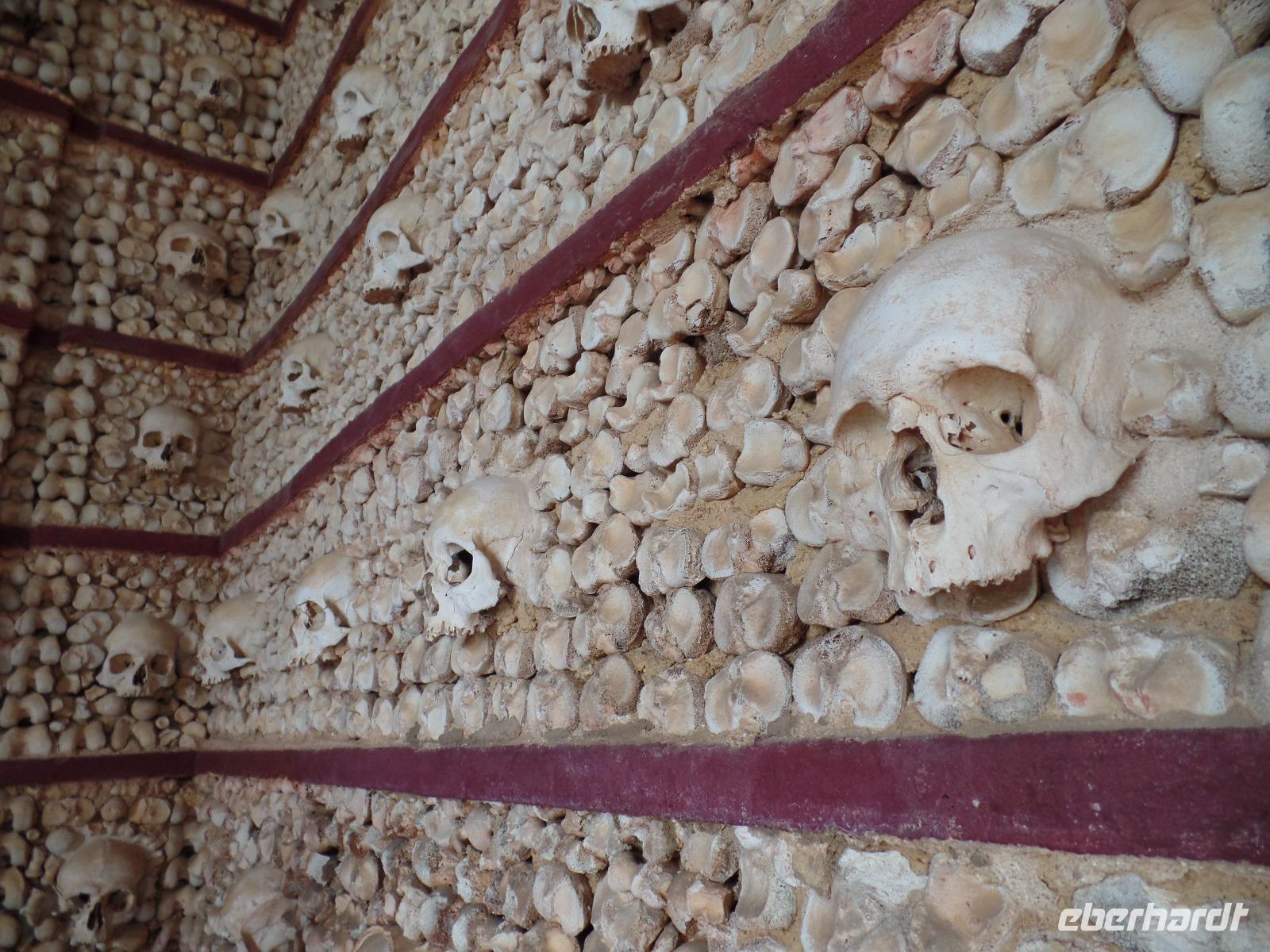 Faro, die Hauptstadt der Algarve, wartete heute darauf von uns erkundet zu werden. Nach einer einstündigen Fahrt erreichten wir die Altstadt am wasserleeren Hafen und bummelten mit vielen Erklärungen von Louis durch die engen Straßen. Vom ursprünglichen Fischerdorf ist nicht mehr viel zu erkennen, da es im Laufe der Jahre sehr stark gewachsen ist. Auf unserem Weg sehen wir das Stadttor, die besondere Kathedrale und den Bischofspalast. Louis führte uns in die Kirche Igreja de Sao Francisco, welche im Innenraum mit den typischen blauen Kacheln, den Azulejos, verkleidet war. Andächtig und bewundernd saßen wir in den Reihen der Kirchbänke. Während unserer freien Zeit in Faro konnte jeder nach seinem Belieben die Stadt auf eigene Faust erkunden. Einige nutzten die Zeit um Souvenirs zu erstehen, andere genossen das laue Wetter und bunte Treiben in einem Café. Unter anderem wurde auch die berühmte Knochenkapelle der Kirche Igreja do Carmo besichtigt. In der Kapelle wurden Menschenknochen und Schädel verarbeitet, was nicht ganz so beängstigend wirkte, wie man vielleicht annehmen kann. Danach fuhren wir nach Olhao, einem der größten Fischerhäfen der Provinz. Ebenso wie in Faro unternahmen wir auch hier einen kleinen Stadtrundgang und beendeten diesen an der Markthalle. Olhao ist ein perfekter Ort für Fischliebhaber, denn die Restaurants entlang des Meeres bieten hier besonders gute Angebote. Am späten Nachmittag kamen wir wieder im Hotel an und nun hieß es Koffer packen. Nach dem letzten gemeinsamen Abendessen ließen wir es uns nicht nehmen, noch einmal zusammen am Kanal und in der Altstadt zu spazieren zu gehen. Eine interessante Reise neigte sich nun dem Ende entgegen.