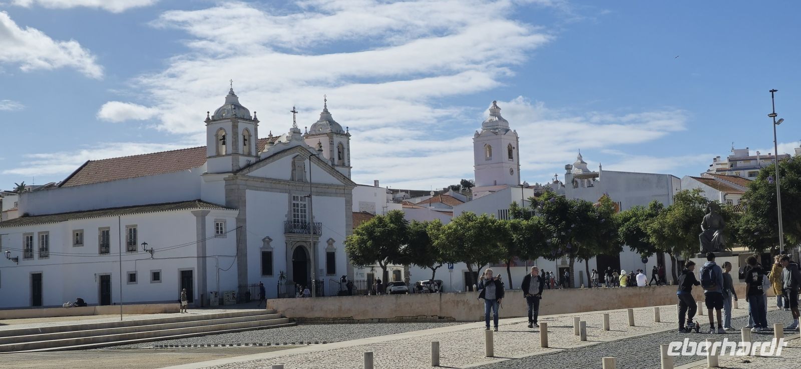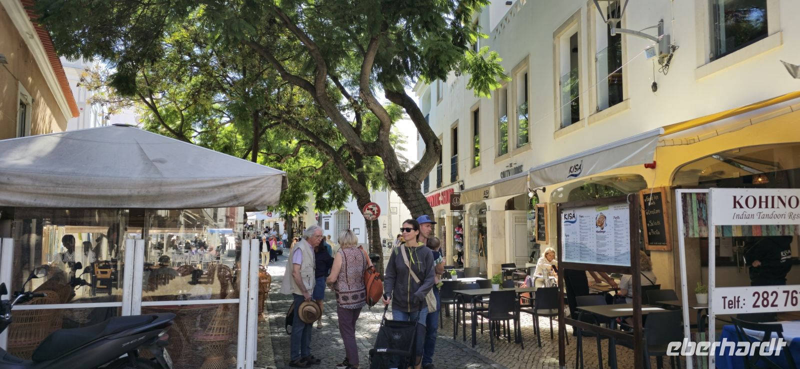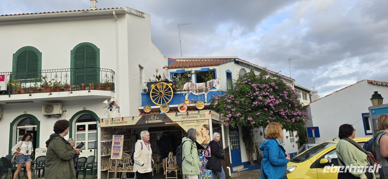Mit einem reichhaltigen Frühstück, bei dem für jede/n etwas dabei war, starten wir in den Tag. Kurz vor 9 steht unser Bus vor dem Hotel und auch Fatima ist da und begrüßt uns. Nelson, unser Busfahrer von gestern, hat heute frei, also wird Paolo uns heute fahren. Die erste Station erreichen wir nach einer reichlichen Stunde Fahrtzeit: Sagres. Hier befindet sich die Festung von Heinrich, dem Seefahrer. Fatima erzählt uns, dass früher hier niemand an der Küste leben wollte, es hieß Götter würden hier wohnen... Als man aber sah, dass Heinrich hier seine Seefahrer-Schule aufgebaut hatte und ihm nichts passierte, wagten sich auch andere an die Klippen. (Dass Heinrich gar nicht in seiner Festung betete und übernachtete sondern im Nachbarort- darüber breiten wir mal den Mantel des Schweigens ;-) Erst vor wenigen Jahren wurde die gesamte Anlage restauriert und ist nun mit weitläufigen Wegen zum Leuchtturm, einem kleinen Museum, der Kirche und den Wallanlagen außerordentlich sehenswert. Wer möchte spaziert mit Fatima durchs Museum- Highlight ganz sicher ein dunkler Raum, in dem man mit Film und Donner nacherleben kann, wie die Seemänner früher Gewitter auf See erlebten. So erklären sich auch viele Sagen um Monster aus der Tiefe, dem Kraken etwa oder den Riesenfischen, die Schiffe verschlingen konnten... Die Freizeit hier nutzten dann viele, um erste Fotos von den Klippen, der sogenannten Felsalgarve, zu machen. Heute sind wir hier unterwegs, Tage später werden wir dann auch die Sandalgarve kennenlernen mit ihren endlosen Stränden. Das Wetter meint es gut mit uns- wir können bis zum Kap sehen: dem Cabo da Sao Vincente. Dem Kap des heiligen Vincent. Am späten Vormittag fahren wir weiter- zu eben jenem Kap. Leider ist der Zugang zu Leuchtturm abgesperrt, also genießen wir den Blick von den Klippen, die bis zu 70 Meter hoch sind. Hier sind wir am südwestlichsten Punkt des europäischen Festlandes- der Blick gleitet über den Atlantik- irgendwo da hinten ist Amerika. Und darauf weist auch ein Kiosk hin, der heuer leider schon die Saison beendet hat, sein Schild: "die letzte Bratwurst vor Amerika" ist legendär. Also sehen wir wenigstens ein Foto davon und fahren dann weiter. Es hat uns ordentlich "durchgepustet" an den Klippen und wir genießen es, uns im Bus wieder etwas aufzuwärmen. Lagos heißt unsere nächste Stadt und sie zieht uns von Anfang an in ihren Bann. Kurz vor dem Hafen steigen wir aus, sehen die alte Stadtmauer und die Festung, spazieren gemeinsam über den großen Platz (für dessen Wasserspiel leider gerade das Wasser fehlt), der aber den Namen von Heinrich trägt: Plaza Infante Dom Henrique. Natürlich darf ein Denkmal von ihm nicht fehlen. Es wird auch unser Orientierungs- und Treffpunkt werden. Am Platz wundersame Bäume, die z.T. noch lila Blüten tragen; hier erleben wir schon mal, Dass Fatima nicht nur über die Geschcihte und Persönlichkeiten ihres Landes Bescheid weiß sondern auch über Fauna und Flora. Es sind Jacaranda-Bäume. Und es sollten nicht die letzten ungewöhnlichen Exemplare sein, die wir kennenlernen durften. Als wir das Museum des alten Sklavenmarktes passiert hatten (eine düstere Seite der portugiesischen Geschichte, die aber nicht totgeschwiegen wird) schlendern wir durch die Gassen und sehen wieder ungewöhliche Bäume: Rosenkranz-Bäume werden sie genannt, weil die Früchte an die Perlen des Rosenkranzes erinnern... Und so bestaunen wir auch das weiße Pflaster, das mit schwarzen Ornamenten geschmückt ist, die vielen schmalen Gassen, die kleinen Cafes und Restaurants, die Shops und Läden mit ihren Souvenirs und Angebote des örtlichen Handwerks, allen voran natürlich die Waren aus Kork, aber auch Lederwaren... Bis zur Markthalle spazieren wir gemeinsam, hier verrät uns Fatima noch, dass man vom Dach der Markthlle einen umwerfenden Blick auf die Stadt und das Meer hat, rasch noch verabredet- wer möchte die Kirche besuchen- bitte Treff dort und wer das nicht möchte trifft sich am Denkmal von Heinrich... So sehe ich viele Gäste oben auf der Terrasse der Markthalle, etliche bleiben glich hier, versorgen sich mit Kleinigkeiten zu essen und Souvenirs, andere sehe ich in der Stadt wieder, im Cafe, die Sonne und den Café genießend oder bummelnd durch die Shops und Läden. Hier wären wir gern länger geblieben Mit einigen interessierten Gästen besuchen wir dann die Kirche des hl. Antonio. Der Zugang erfolgt durch das Museum, dass den Namen seines Gründers trägt: Dr. José Fomosinho. Er hat vieles zur Lokalgeschichte zusammengetragen und damit dann das Museum hier eingerichtet. Riesige Vitrinen zeigen das Fremdartige, das die Portugiesen auf ihren Seefahrten entdeckt hatten: für uns selbstverständlich, aber wie mußten die Krokodile, Affen, Löwen und Menschen mit schwarzer Haut auf die europäischen Menschen des Mittelalters gewirkt haben? Ihre Speere, Schilde, Musikinstrumente? Im nächsten Saal viele Fresken, Statuen, Bilder und auch ein eigenartiger Baum: über und über behangen mit Flechtarbeiten, Körben, Taschen und Schlaufen aus unterschiedlichsten Materialien. Traditionelles Handwerk-WOW! Und dann stehen wir plötzlich in der Kirche. Und können uns kaum sattsehen. Vergoldete Holzschnitzereien- wo wir auch insehen. Dazwischen überdimensionale Bilder, die das Leben des heiligen Antonius zeigen. Fatima weiß um unsere Unkenntnis und erläutert uns die Bilder mit ihren Bedeutungen, aber auch die Schnitzereien, die auf die Hoch-Zeit der portugiesischen Geschichte hinweisen. Die Figuren, die Putten- alle sind in einen "wohlgenährten Zustand" dargestellt, wir würden heute wohl "Rubens-Figuren" dazu sagen... reiche Früchte sind dargestellt, das Schwein, das geschlachtet wird... kleine Details, die wir ohne Fatima wohl kaum entdeckt hätten. Über dem Altar die Statue des heiligen Antonio mit dem Jesuskind auf dem Arm, auch was es damit auf sich hat, erfahren wir heute. Beeindruckt verlassen wir die Kirche und spazieren 