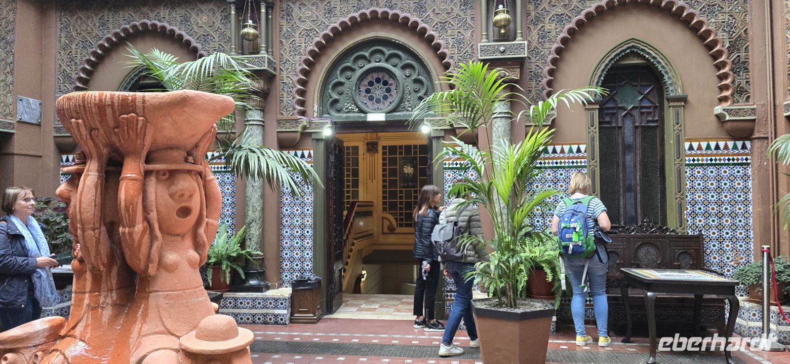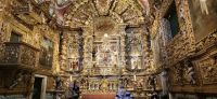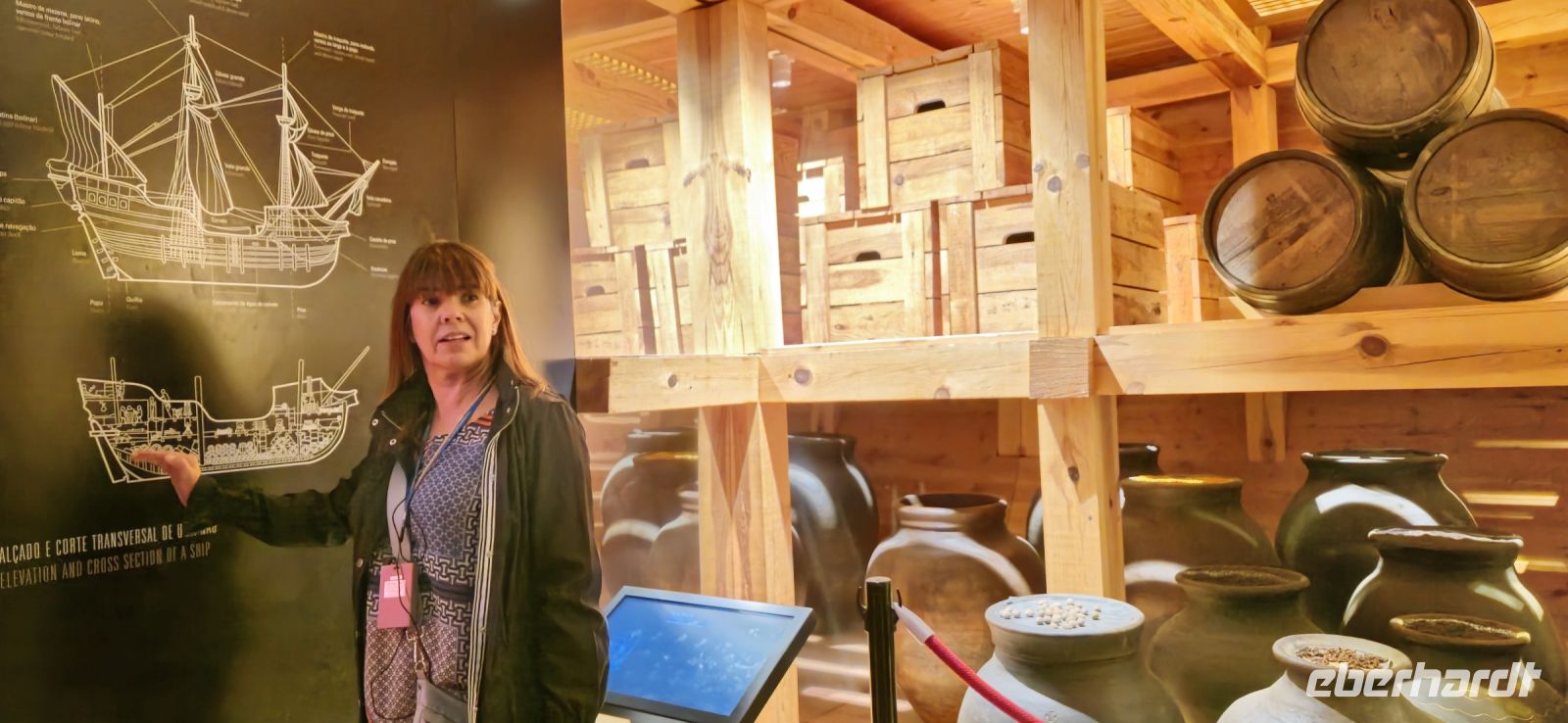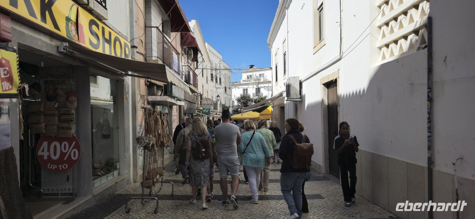 Mit einem reichhaltigen Frühstück, bei dem für jede/n etwas dabei war, starten wir in den Tag. Kurz vor 9 steht unser Bus vor dem Hotel und auch Fatima ist da und begrüßt uns. Nelson, unser Busfahrer von gestern, hat heute frei, also wird Paolo uns heute fahren. Die erste Station erreichen wir nach einer reichlichen Stunde Fahrtzeit: Sagres. Hier befindet sich die Festung von Heinrich, dem Seefahrer. Fatima erzählt uns, dass früher hier niemand an der Küste leben wollte, es hieß Götter würden hier wohnen... Als man aber sah, dass Heinrich hier seine Seefahrer-Schule aufgebaut hatte und ihm nichts passierte, wagten sich auch andere an die Klippen. (Dass Heinrich gar nicht in seiner Festung betete und übernachtete sondern im Nachbarort- darüber breiten wir mal den Mantel des Schweigens ;-) Erst vor wenigen Jahren wurde die gesamte Anlage restauriert und ist nun mit weitläufigen Wegen zum Leuchtturm, einem kleinen Museum, der Kirche und den Wallanlagen außerordentlich sehenswert. Wer möchte spaziert mit Fatima durchs Museum- Highlight ganz sicher ein dunkler Raum, in dem man mit Film und Donner nacherleben kann, wie die Seemänner früher Gewitter auf See erlebten. So erklären sich auch viele Sagen um Monster aus der Tiefe, dem Kraken etwa oder den Riesenfischen, die Schiffe verschlingen konnten... Die Freizeit hier nutzten dann viele, um erste Fotos von den Klippen, der sogenannten Felsalgarve, zu machen. Heute sind wir hier unterwegs, Tage später werden wir dann auch die Sandalgarve kennenlernen mit ihren endlosen Stränden. Das Wetter meint es gut mit uns- wir können bis zum Kap sehen: dem Cabo da Sao Vincente. Dem Kap des heiligen Vincent. Am späten Vormittag fahren wir weiter- zu eben jenem Kap. Leider ist der Zugang zu Leuchtturm abgesperrt, also genießen wir den Blick von den Klippen, die bis zu 70 Meter hoch sind. Hier sind wir am südwestlichsten Punkt des europäischen Festlandes- der Blick gleitet über den Atlantik- irgendwo da hinten ist Amerika. Und darauf weist auch ein Kiosk hin, der heuer leider schon die Saison beendet hat, sein Schild: "die letzte Bratwurst vor Amerika" ist legendär. Also sehen wir wenigstens ein Foto davon und fahren dann weiter. Es hat uns ordentlich "durchgepustet" an den Klippen und wir genießen es, uns im Bus wieder etwas aufzuwärmen. Lagos heißt unsere nächste Stadt und sie zieht uns von Anfang an in ihren Bann. Kurz vor dem Hafen steigen wir aus, sehen die alte Stadtmauer und die Festung, spazieren gemeinsam über den großen Platz (für dessen Wasserspiel leider gerade das Wasser fehlt), der aber den Namen von Heinrich trägt: Plaza Infante Dom Henrique. Natürlich darf ein Denkmal von ihm nicht fehlen. Es wird auch unser Orientierungs- und Treffpunkt werden. Am Platz wundersame Bäume, die z.T. noch lila Blüten tragen; hier erleben wir schon mal, Dass Fatima nicht nur über die Geschcihte und Persönlichkeiten ihres Landes Bescheid weiß sondern auch über Fauna und Flora. Es sind Jacaranda-Bäume. Und es sollten nicht die letzten ungewöhnlichen Exemplare sein, die wir kennenlernen durften. Als wir das Museum des alten Sklavenmarktes passiert hatten (eine düstere Seite der portugiesischen Geschichte, die aber nicht totgeschwiegen wird) schlendern wir durch die Gassen und sehen wieder ungewöhliche Bäume: Rosenkranz-Bäume werden sie genannt, weil die Früchte an die Perlen des Rosenkranzes erinnern... Und so bestaunen wir auch das weiße Pflaster, das mit schwarzen Ornamenten geschmückt ist, die vielen schmalen Gassen, die kleinen Cafes und Restaurants, die Shops und Läden mit ihren Souvenirs und Angebote des örtlichen Handwerks, allen voran natürlich die Waren aus Kork, aber auch Lederwaren... Bis zur Markthalle spazieren wir gemeinsam, hier verrät uns Fatima noch, dass man vom Dach der Markthlle einen umwerfenden Blick auf die Stadt und das Meer hat, rasch noch verabredet- wer möchte die Kirche besuchen- bitte Treff dort und wer das nicht möchte trifft sich am Denkmal von Heinrich... So sehe ich viele Gäste oben auf der Terrasse der Markthalle, etliche bleiben glich hier, versorgen sich mit Kleinigkeiten zu essen und Souvenirs, andere sehe ich in der Stadt wieder, im Cafe, die Sonne und den Café genießend oder bummelnd durch die Shops und Läden. Hier wären wir gern länger geblieben Mit einigen interessierten Gästen besuchen wir dann die Kirche des hl. Antonio. Der Zugang erfolgt durch das Museum, dass den Namen seines Gründers trägt: Dr. José Fomosinho. Er hat vieles zur Lokalgeschichte zusammengetragen und damit dann das Museum hier eingerichtet. Riesige Vitrinen zeigen das Fremdartige, das die Portugiesen auf ihren Seefahrten entdeckt hatten: für uns selbstverständlich, aber wie mußten die Krokodile, Affen, Löwen und Menschen mit schwarzer Haut auf die europäischen Menschen des Mittelalters gewirkt haben? Ihre Speere, Schilde, Musikinstrumente? Im nächsten Saal viele Fresken, Statuen, Bilder und auch ein eigenartiger Baum: über und über behangen mit Flechtarbeiten, Körben, Taschen und Schlaufen aus unterschiedlichsten Materialien. Traditionelles Handwerk-WOW! Und dann stehen wir plötzlich in der Kirche. Und können uns kaum sattsehen. Vergoldete Holzschnitzereien- wo wir auch insehen. Dazwischen überdimensionale Bilder, die das Leben des heiligen Antonius zeigen. Fatima weiß um unsere Unkenntnis und erläutert uns die Bilder mit ihren Bedeutungen, aber auch die Schnitzereien, die auf die Hoch-Zeit der portugiesischen Geschichte hinweisen. Die Figuren, die Putten- alle sind in einen "wohlgenährten Zustand" dargestellt, wir würden heute wohl "Rubens-Figuren" dazu sagen... reiche Früchte sind dargestellt, das Schwein, das geschlachtet wird... kleine Details, die wir ohne Fatima wohl kaum entdeckt hätten. Über dem Altar die Statue des heiligen Antonio mit dem Jesuskind auf dem Arm, auch was es damit auf sich hat, erfahren wir heute. Beeindruckt verlassen wir die Kirche und spazieren 