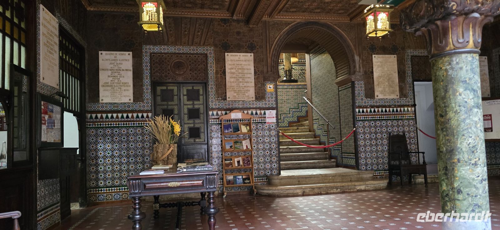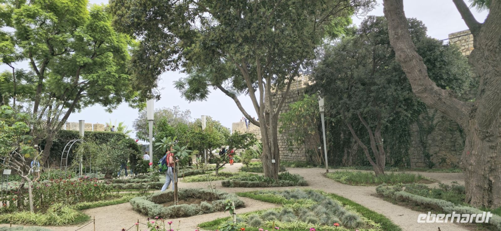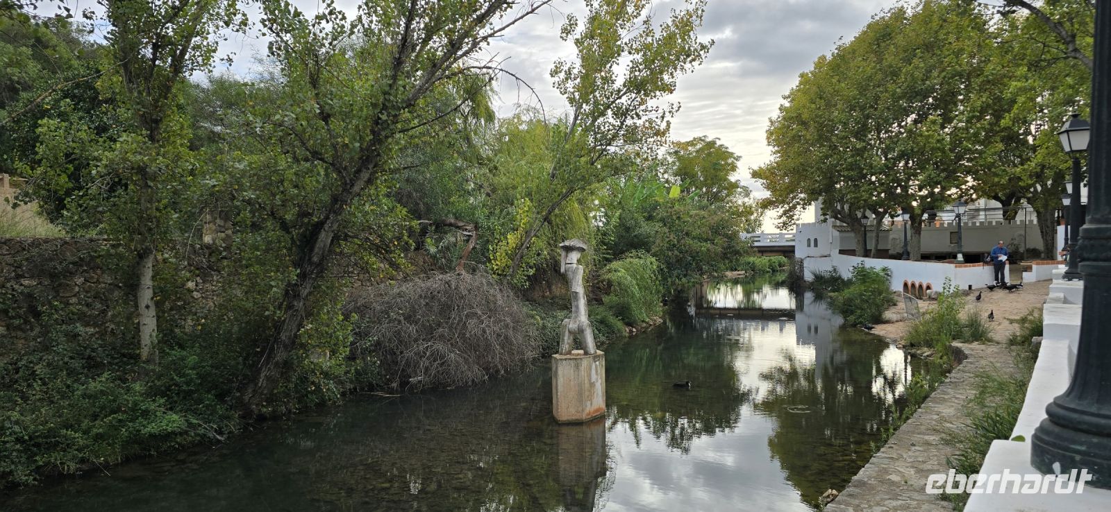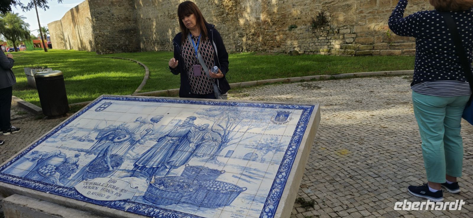 Auch heute ist von Regen nix zu sehen- wie schön für uns. Und so starten wir am Morgen mit dem Besuch einer Korkfabrik. Die Arbeit mit der Rinde der Korkeiche hat lange Tradition und wir erfahren schon mal, wie die Rinde gewonnen wird. Dass es Jahre dauert, bis die Eiche zum ersten Mal geschält wird- das ist aber noch nicht verwendbar. Erst die darauf folgenden "Ernten" bringen den Kork in der gewünschten Dichte und Festigkeit. Dabei liegen mindestens 8-9 Jahre zwischen den Schälungen. Die Nummer am Stamm der Eiche verrät das Jahr. Dann könen wir uns umsehen und den Arbeitern beim Prüfen der Rinde zusehen. Mit geschickten Händen und scharfen Messern schneiden sie ein Stück der Rinde ab, prüfen Beschaffenheit und Qualität und entscheiden, ob diese Stück weiter verarbeitet wird oder nicht zu gebrauchen ist. Wer möchte kann vor dem kleinen Kino einen Anis-Schnaps probieren bevor ein Fim zur Korkeiche unseren Besuch abrundet- und selbstverständlich der Besuch des kleinen Shops. Unser nächster Stopp ist in Estoi. Hier bummeln wir gemeinsam zu einem Rokoko-Palast, der in den letzten Jahren auswändig restauriert wurde. Heute ist er eine Pousada, ein Hotel, und leider nicht mehr zugänglich, aber die Gärten können wir ansehen. Und die Terrassen des Palastes des Grafen von Estoi. Wunderschön geschmückt mit Azulejos, Wandgemälden und Statuen. Immer wieder entdeckte man neues: Nischen mit Figuren, Malereien, Treppen, Balustraden...Durch das große schmiedeeiserne Tor ging es zurück, an der Kathedrale vorbei, zum Bus. Eine halbe Stunde spätet hatten wir unser nächstes Ziel erreicht: Loule. Hier wollen wir eine außergewöhliche Kirche besuchen: die Kirche Sao Lourenco. Sie ist im Innern über und über mit Azulejos verkleidet. Fotografieren ist nicht gestattet, so bleibt nur eine Postkarte zu kaufen, um davon ein Bild zu machen. Fatima erzählt uns, dass die Kirche auch das schwere Seebeben 1775 überlebt hat, lediglich 3 Kacheln sind von der Wand gefallen. Auch das Bildnis auf der Rückseite der Kirche besteht aus diesen Kacheln und besticht in seiner filigranen Gestaltung. Anschließend bummeln wir durch die Stadt, durch historische Gassen, an denen sich einst ein Kloster befand, bis zur Markthalle. Hier können wir uns umsehen und unsere Mittagspause verbringen. Mit einigen Gästen habe ich im Praca Central gegessen- umwerfend gut! Unsere Fahrt geht weiter- in die Berge. Schon von weitem können wir eine überdimensionale portugiesische Flagge auf dem Hang sehen- Fatima erzählt uns, dass dies noch von der Fussball-EM ist, die 2004 hier ausgetragen wurde. Unser Ziel liegt ebenfalls hier in den Bergen: das malerische Bergdorf Alte. Wir steigen am Fluss aus und werfen schon mal einen Blick in den alten "Waschsalon", der wird tatsächlich noch genutzt. Wir bummeln am Ufer entlang, die Bäume haben lustige "Schals", Strick- und Häkelarbeiten, die hier öffentlich präsentiert werden. Fatima erzählt von einem Schriftsteller, der aus dieser Gegend kam, wegzog, aber vor Sehnsucht fast verging. Viele Azulejos sehen wir wieder, ob an der Quelle oder an den Einfahrten der Häuser, Giebeln oder Mauern. Katzen bewachen die Wäsche, die vorm Fenster auf der Leine hängt, ein Erdbeerbaum steht vor einem Haus und nebenan ein Flaschenputzerbaum- markant mit seinen roten Blüten. Die Gassen führen hinauf und wieder hinunter, kleine Cafes laden zum Verweilen ein, Künstlerhäuser sind farbenfroh gestaltet und die kleine Kirche strahlt traditionell in weiß. Die Straße des 25. April führt uns wieder Richtung Bus und zu einer Aussichtsplattform, vor der ein Esel sein Domizil hat. Fatima warnte uns, der beißt, meinte sie und wir versuchen es gar nicht erst, ihn zu streicheln. Aber ein Foto geht ja immer... So verlassen wir Alte und fahren zurück zum Hotel. Hier müssen wir uns schon verabschieden, morgen ist der fakultative Ausflug nach Lissabon, etliche Gäste bleiben lieber hier und am Donnerstag fahren die ersten bereits sehr zeitig zum Flughafen. Also bedanken wir uns herzlichst bei unserer Fatima, die uns so begeisternd von ihrer Heimat erzählt hat. Verabschieden uns auch von Paolo, unserem Busfahrer, mal sehen, wer morgen fährt. Das Abendessen bringt uns wieder zusammen und wir lassen in vielen Gesprächen den Tag Revue passieren. Dann setzt man sich noch einmal zusammen und schmiedet Pläne für morgen, falls man den Ausflug nicht mitmacht. Alternativen hatte ich aufgezeigt, das Wetter soll gut werden, mal sehen, ob jemand mit dem Boot ´rausfährt.